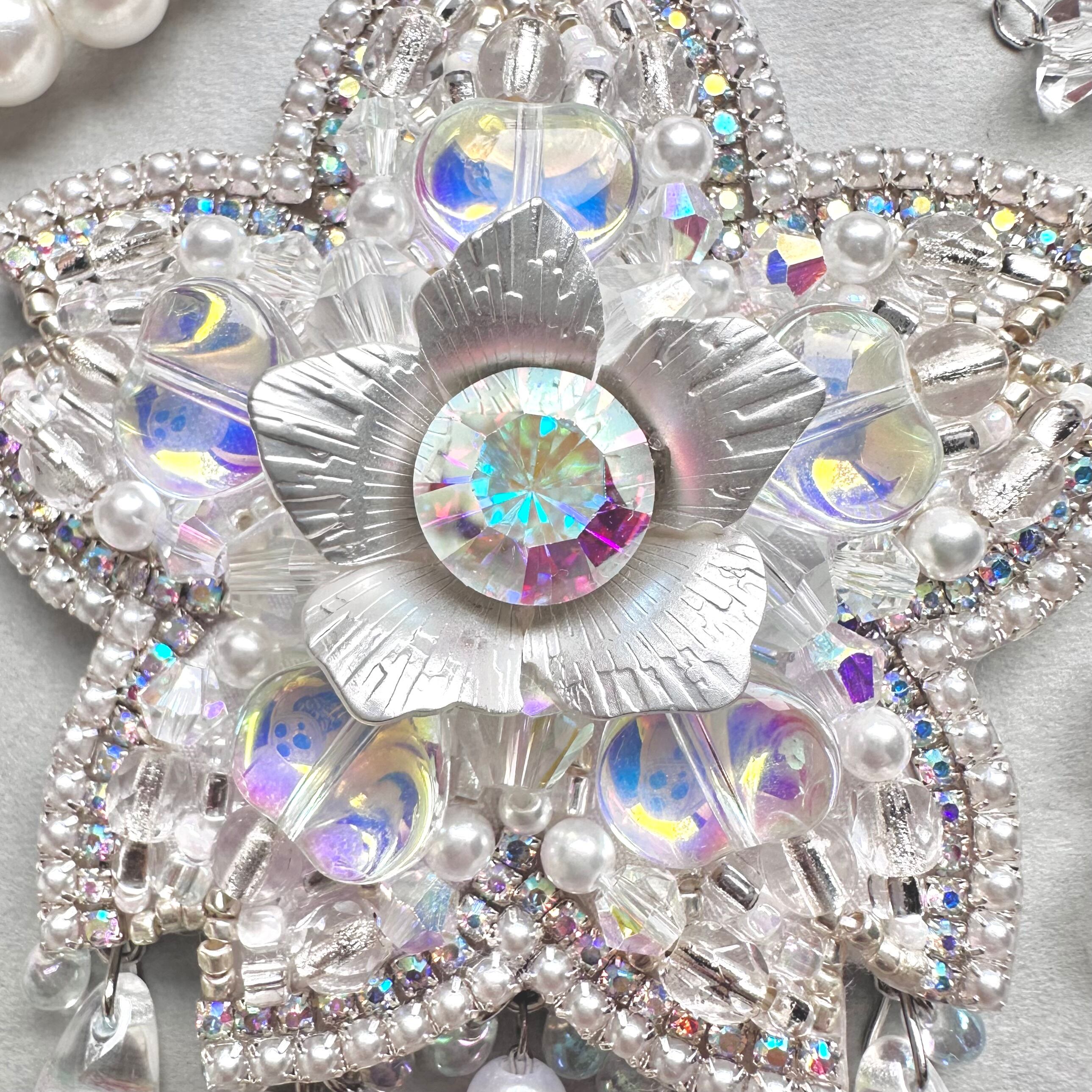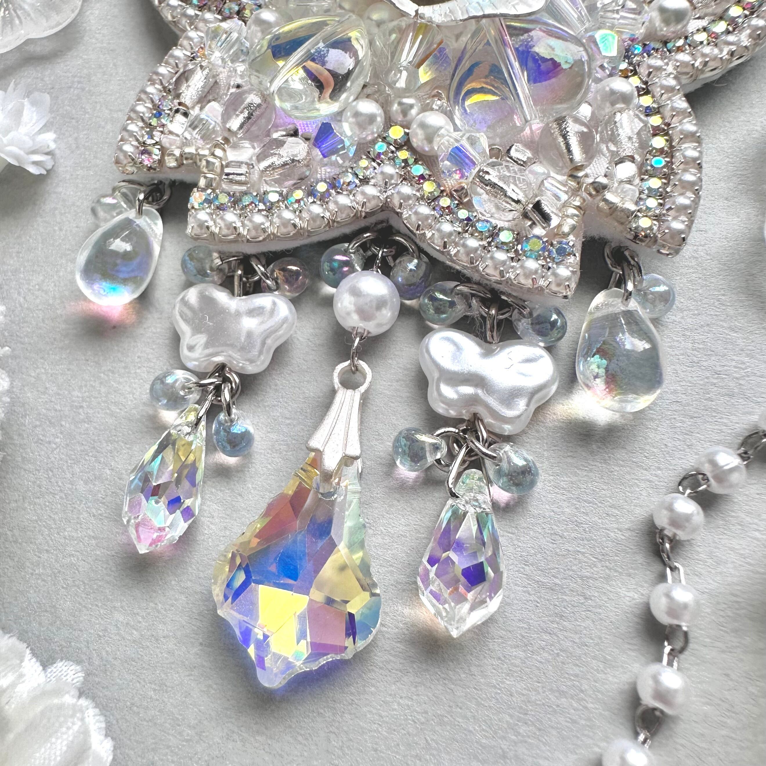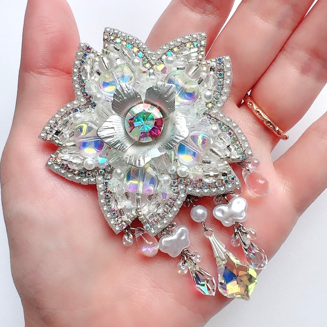ビーズ刺繍のブローチ・ネックレス・バッグチャームの3wayです。
