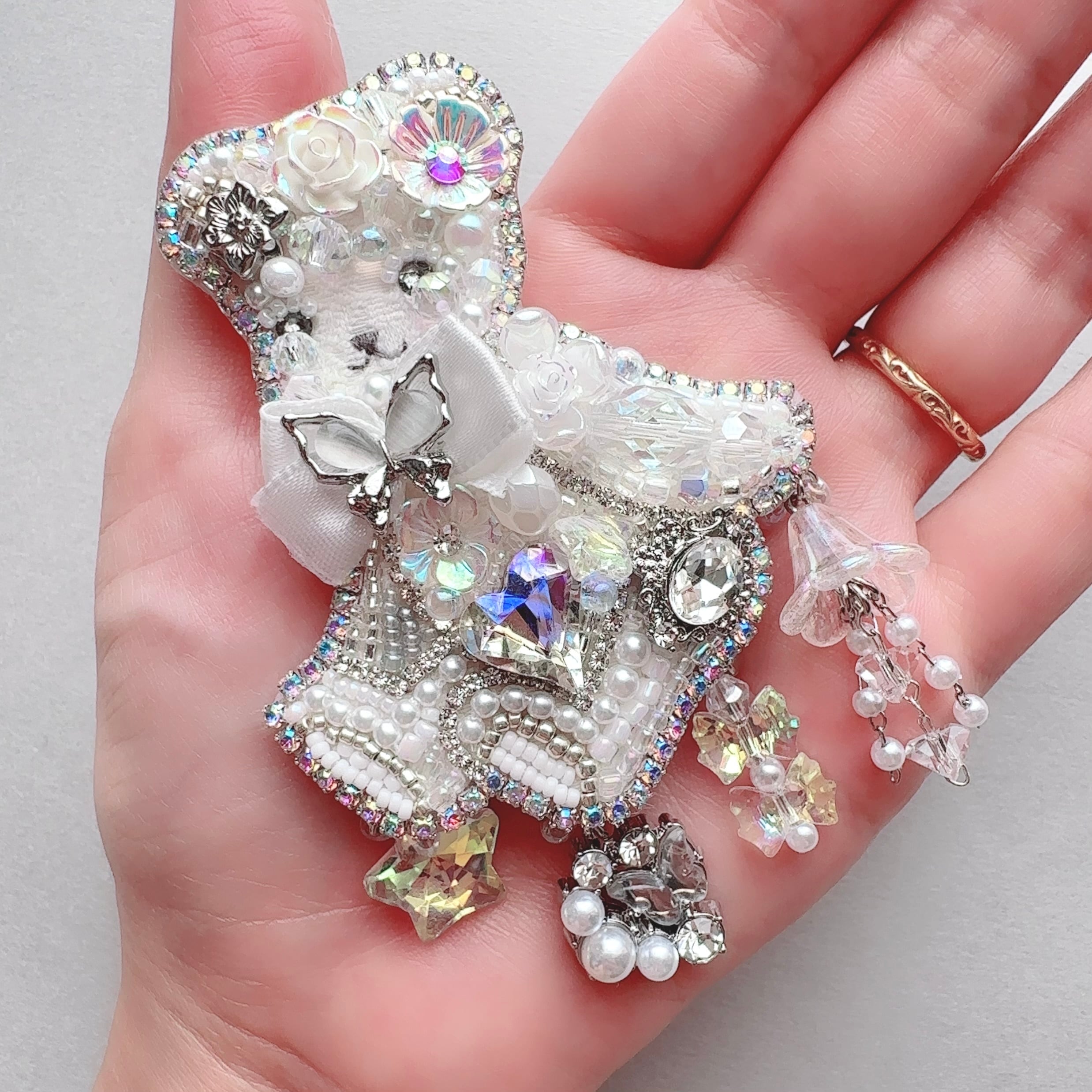 ビーズ刺繍のブローチ・ネックレス・バッグチャームの3wayです。