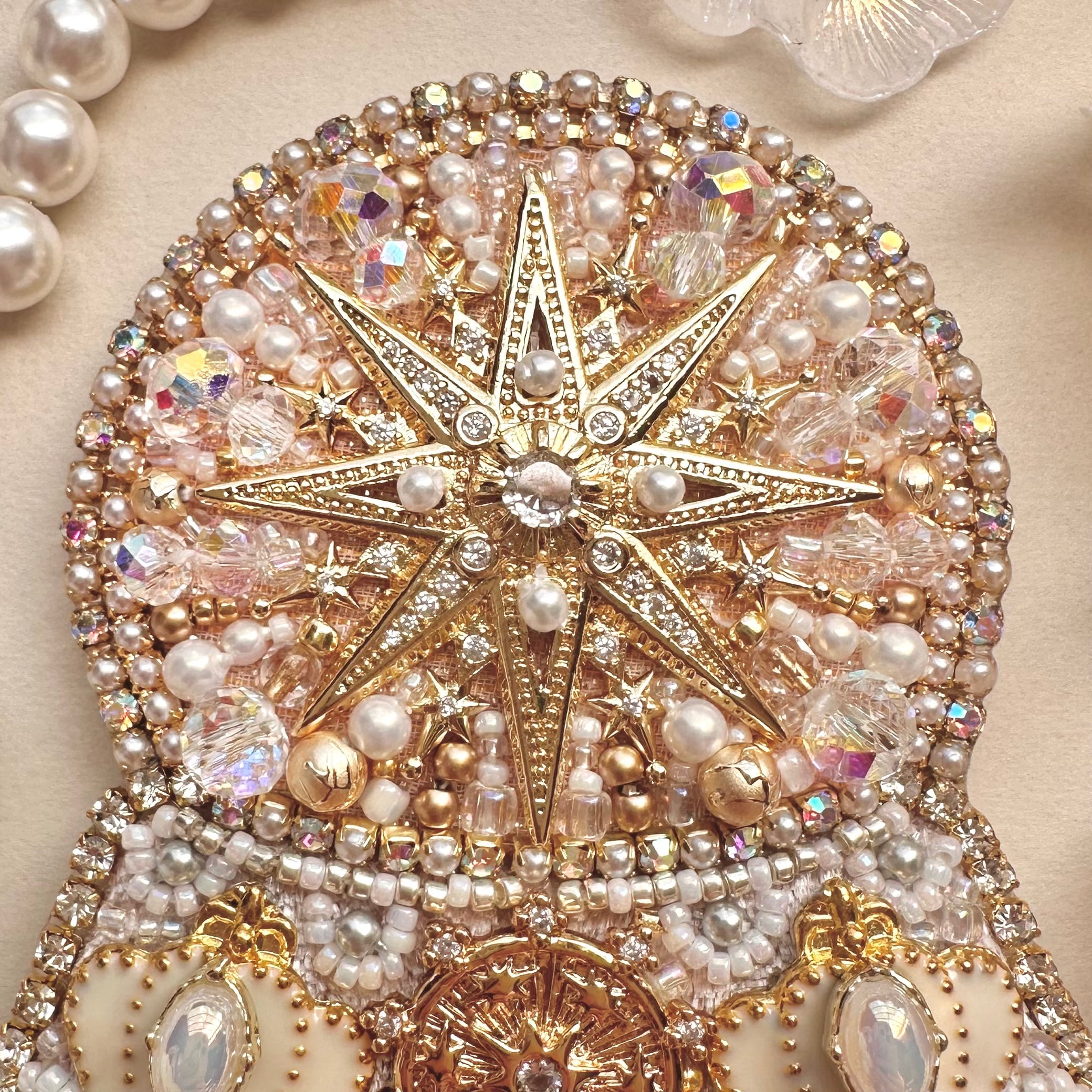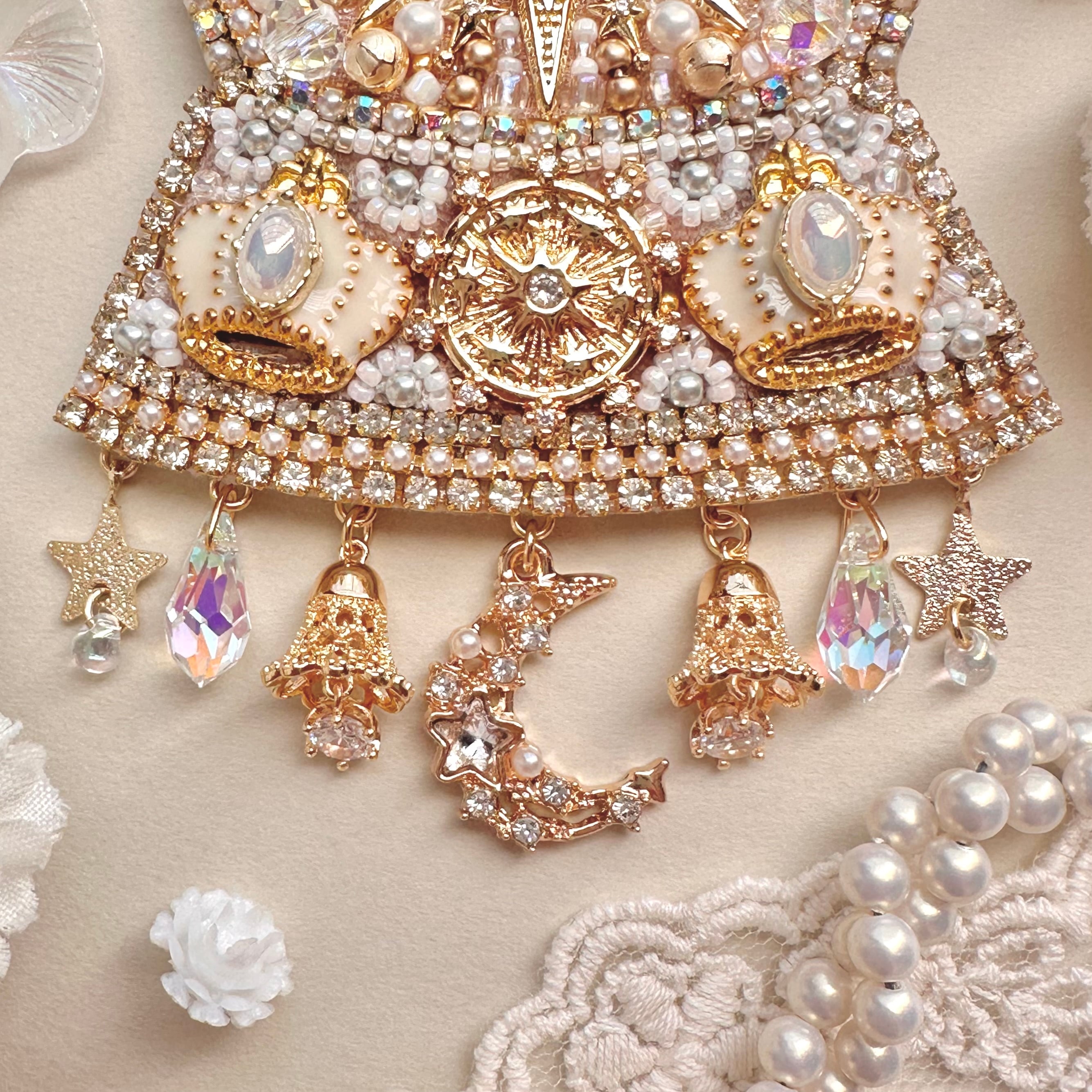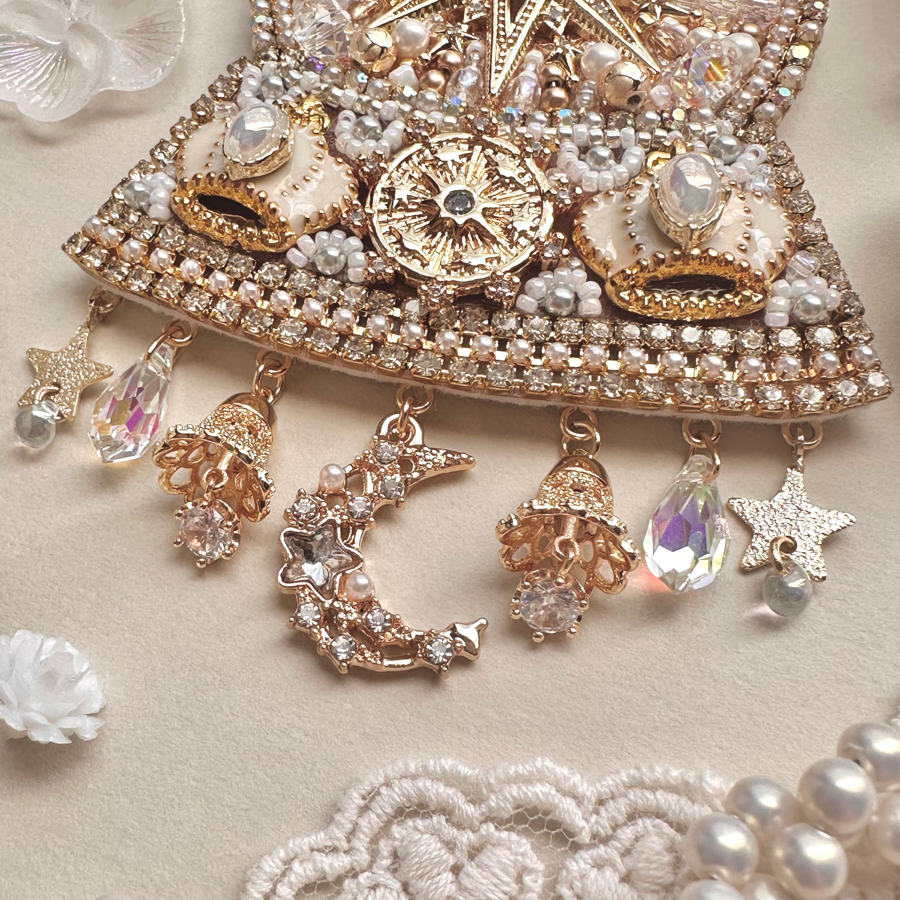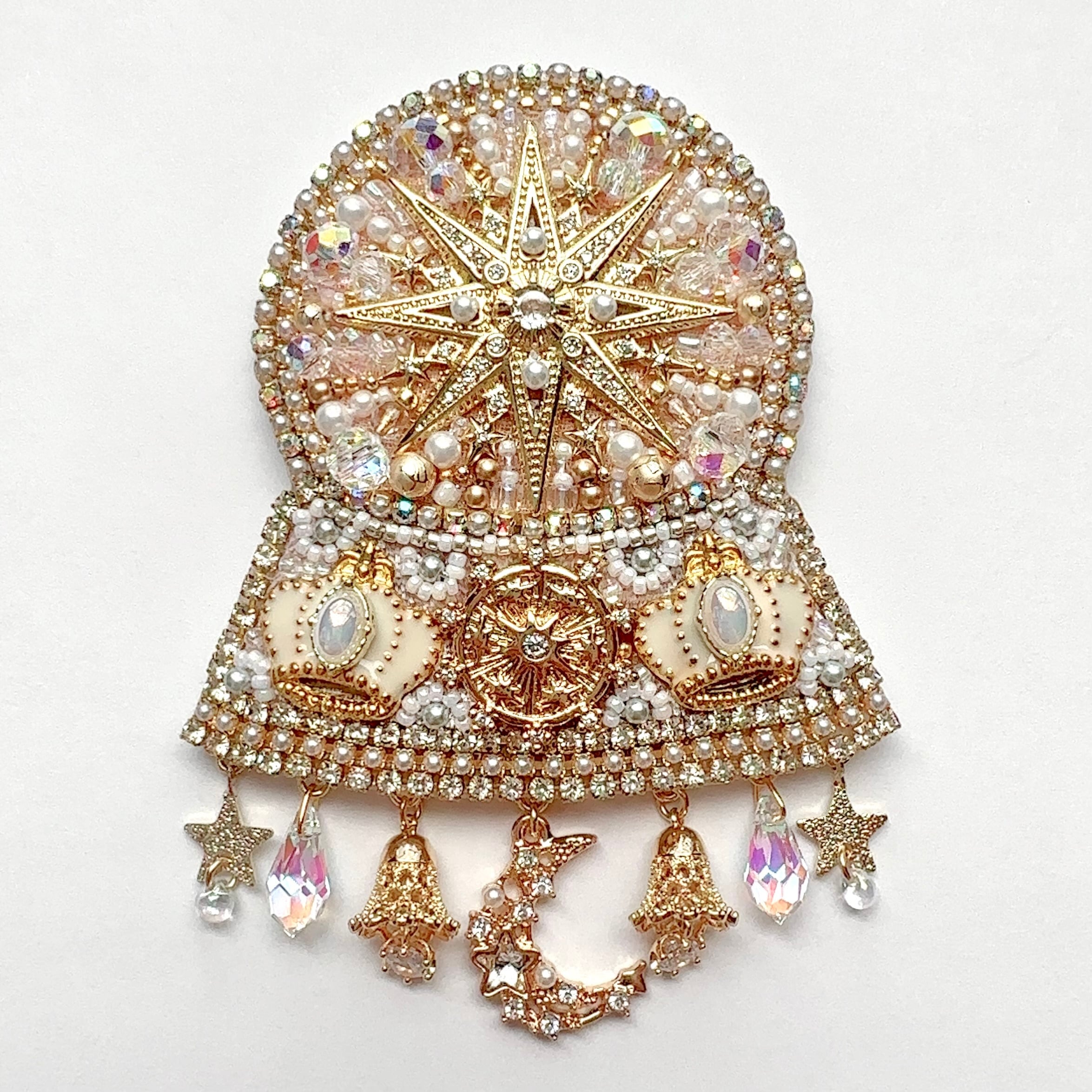 ビーズ刺繍のブローチ・ネックレス・バッグチャームの3wayです。