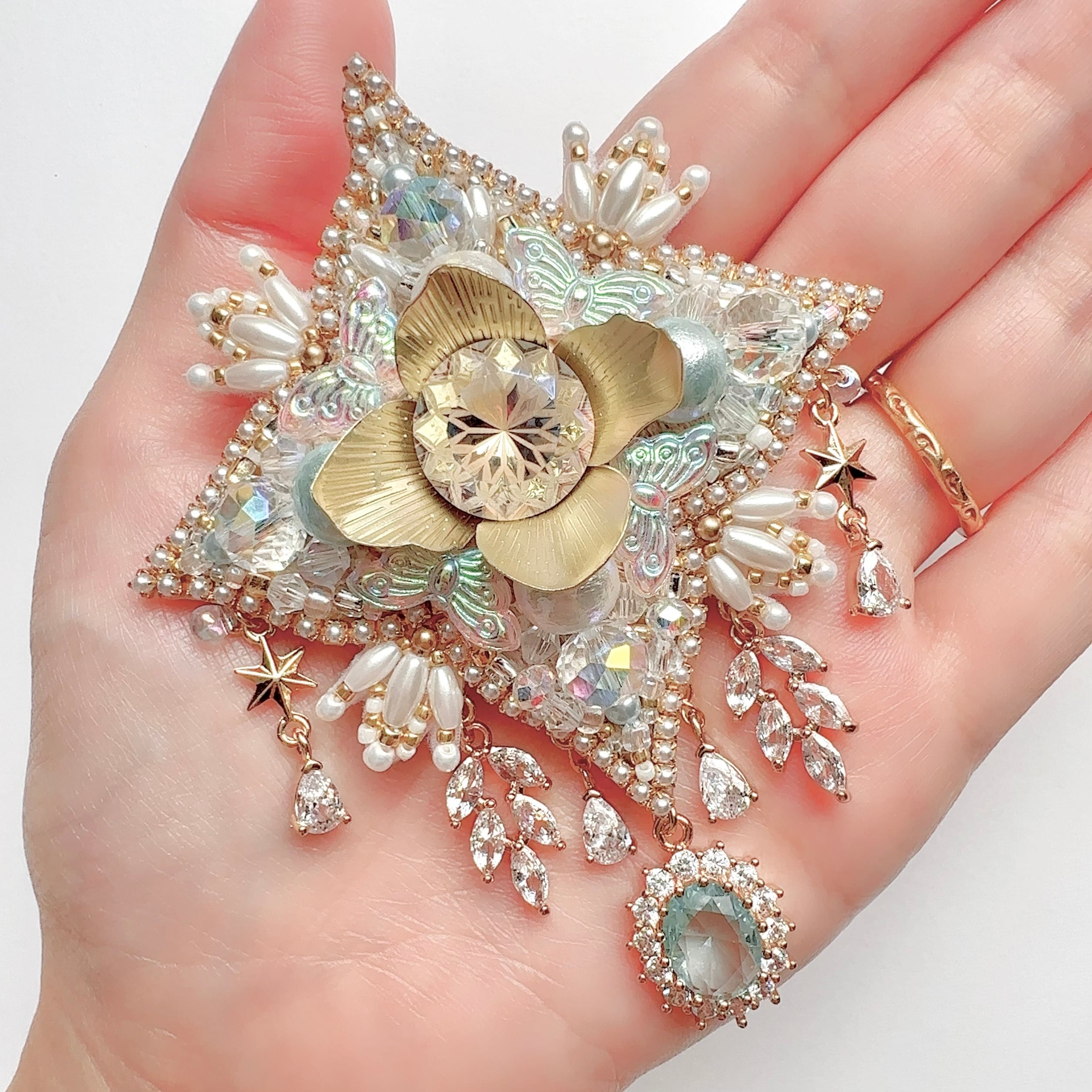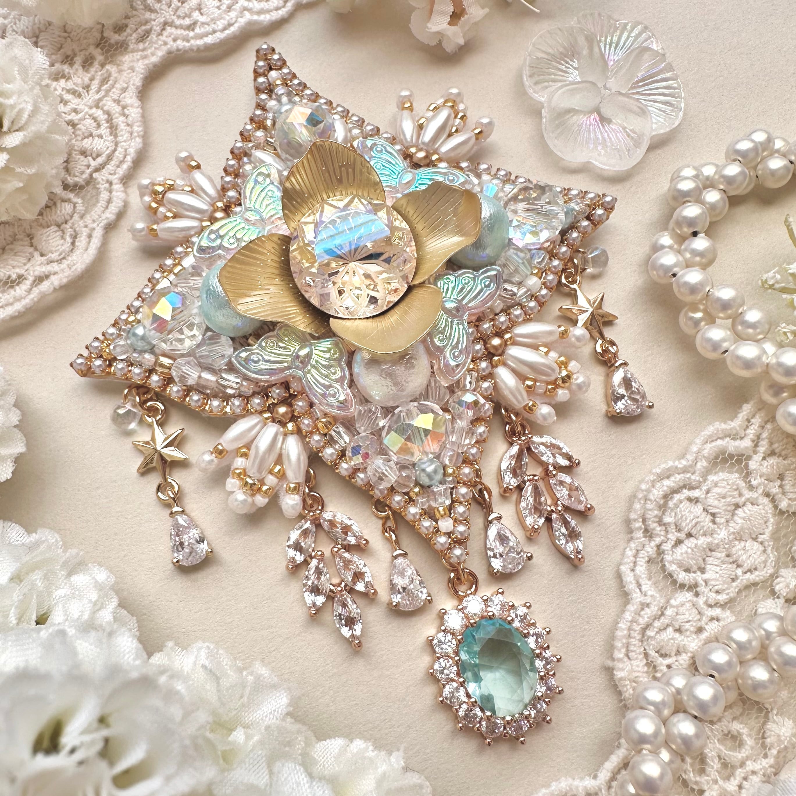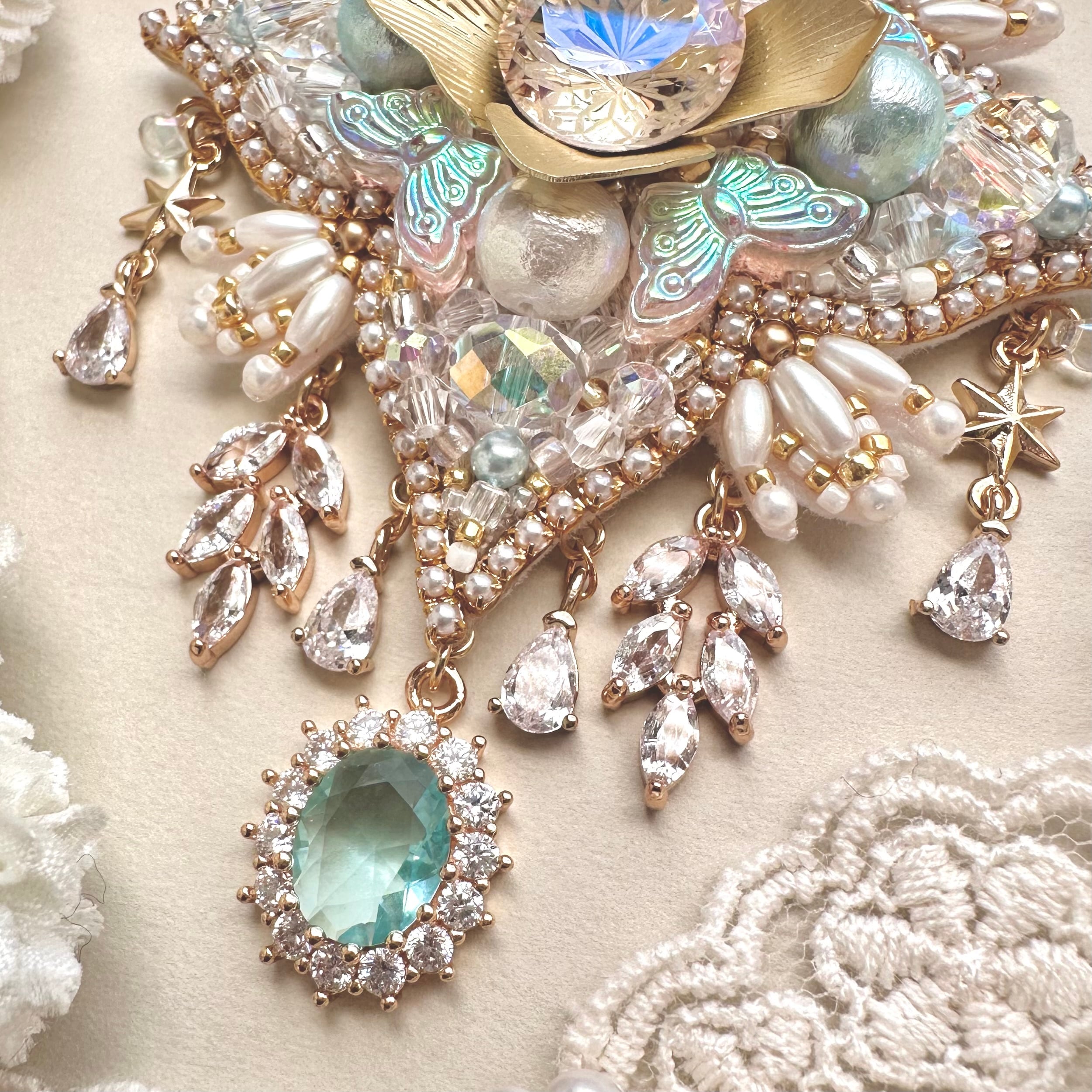 ビーズ刺繍のブローチ・ネックレス・バッグチャームの3wayです。