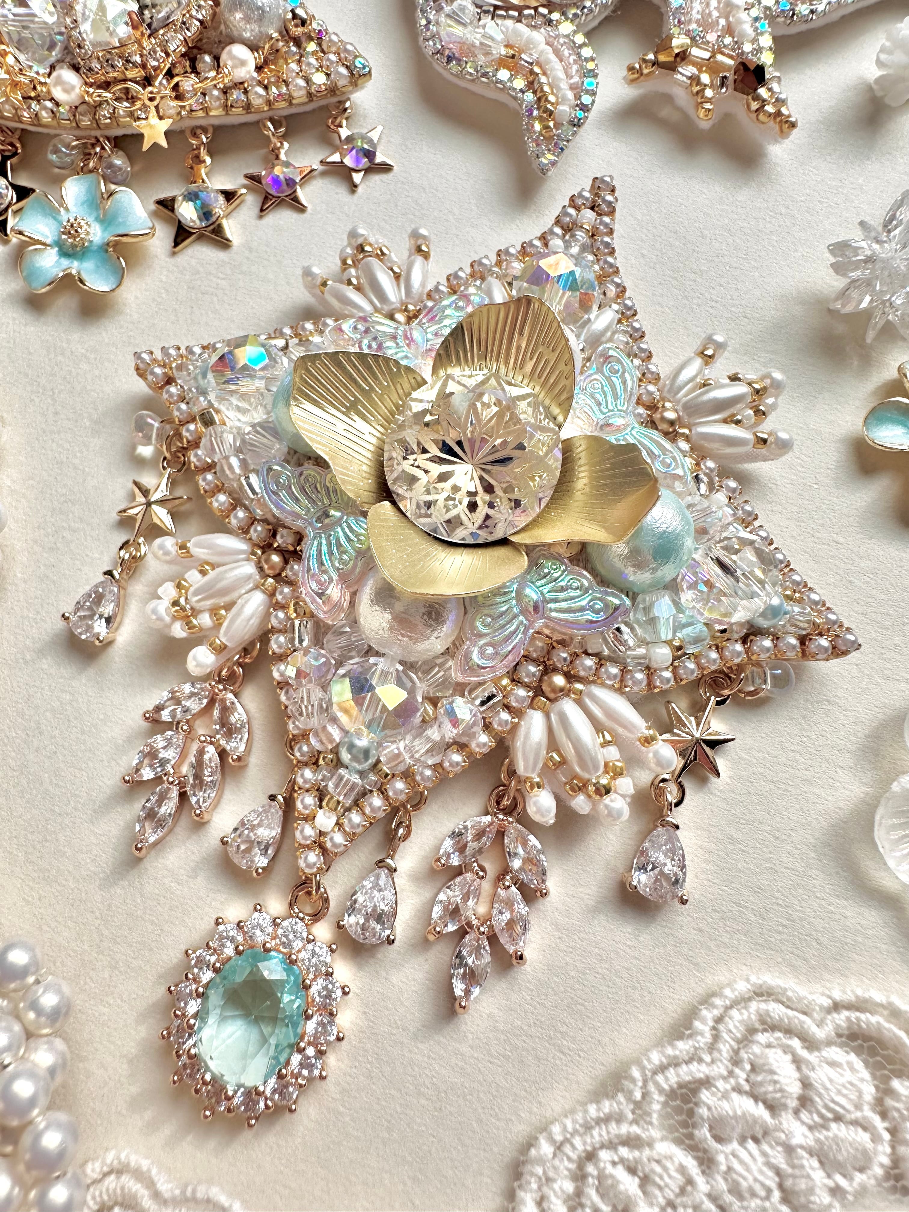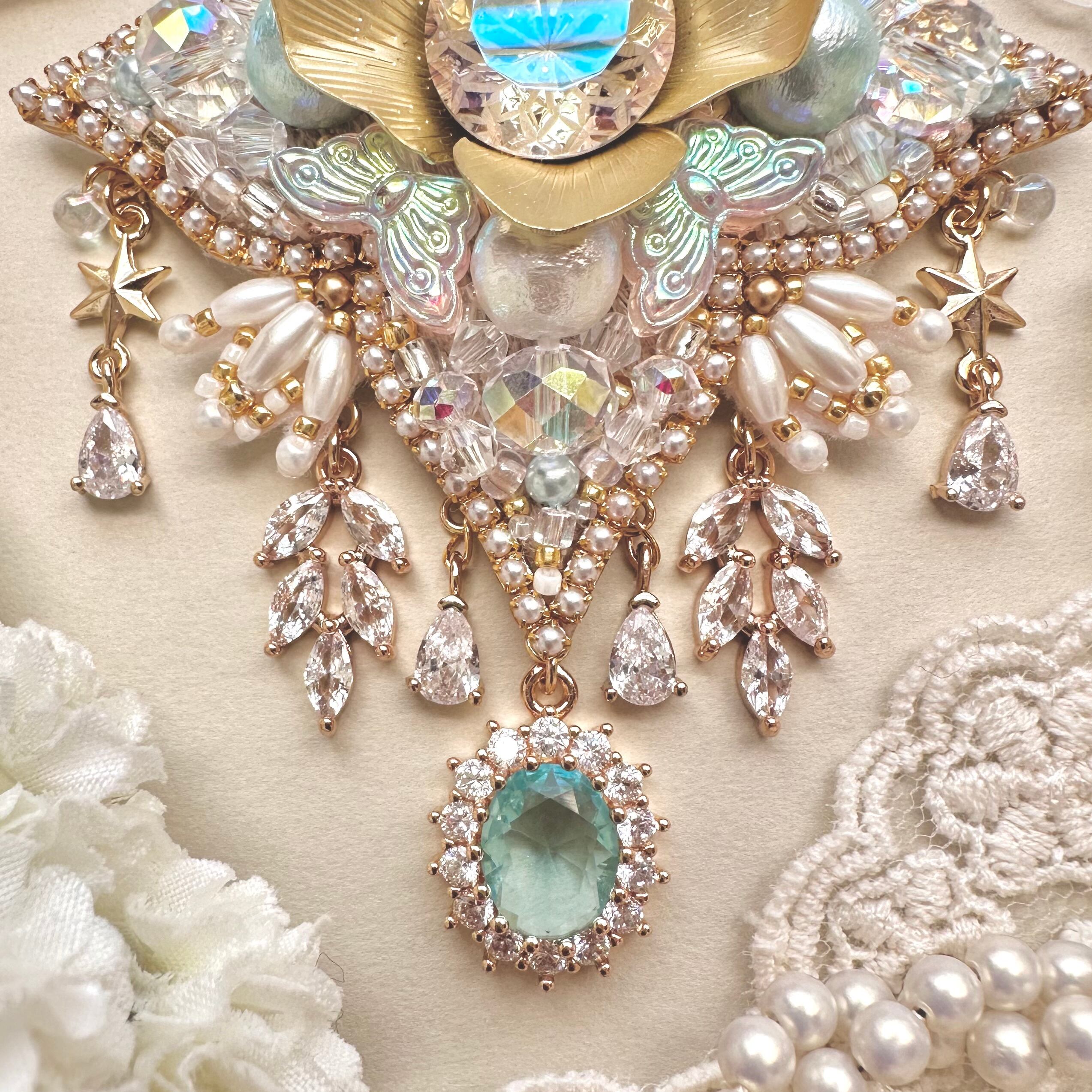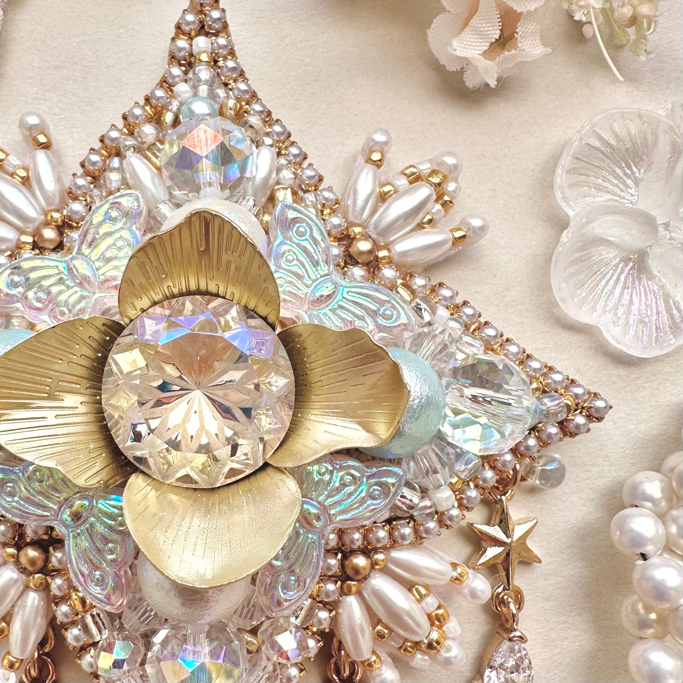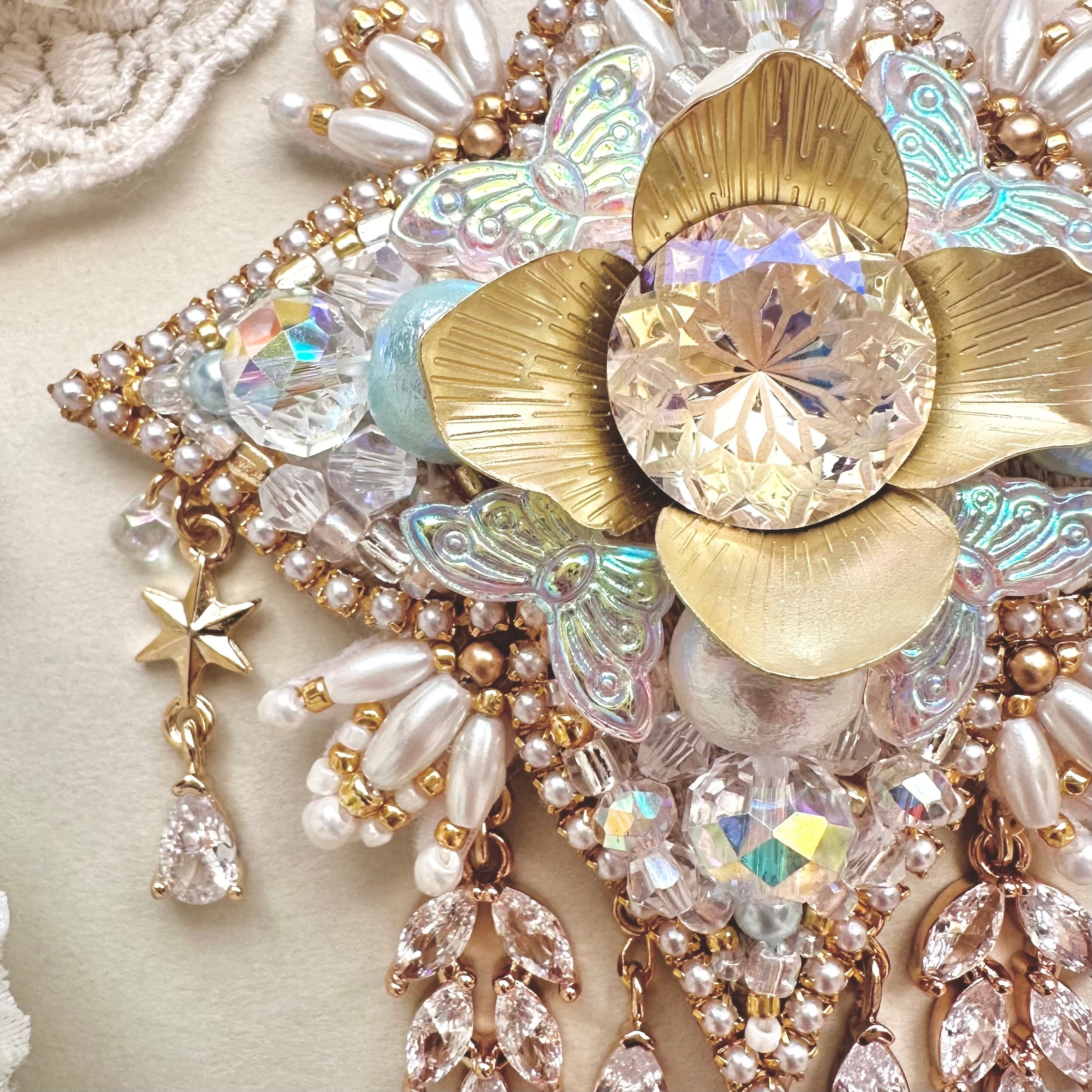 ビーズ刺繍のブローチ・ネックレス・バッグチャームの3wayです。