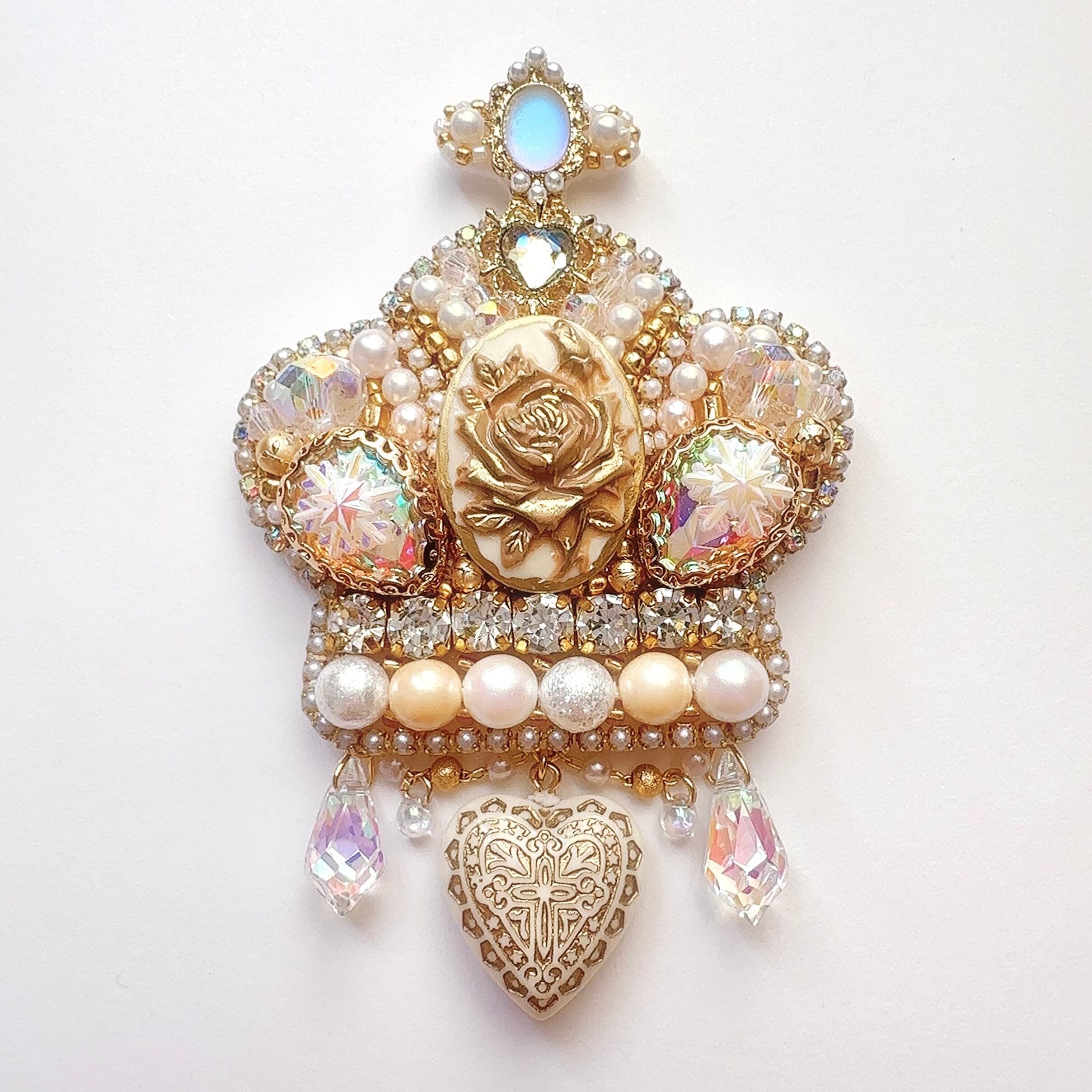 ビーズ刺繍のブローチ・ネックレス・バッグチャームの3wayです。