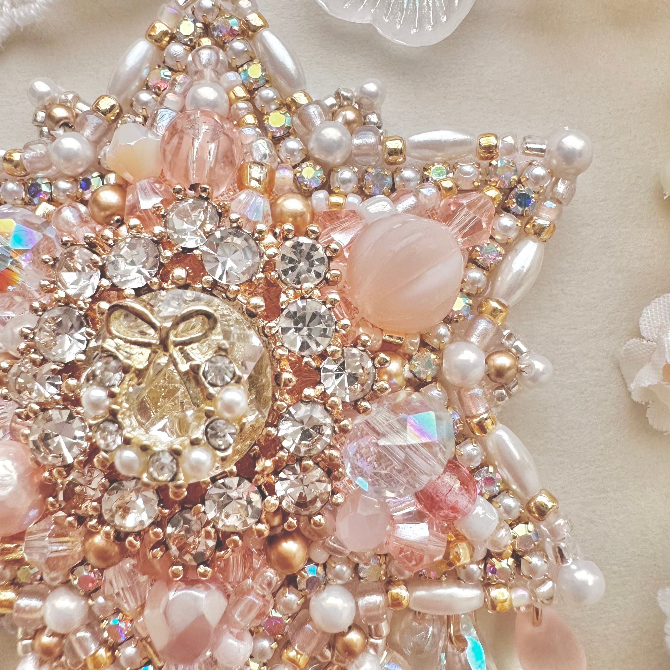 ビーズ刺繍のブローチ・ネックレス・バッグチャームの3wayです。