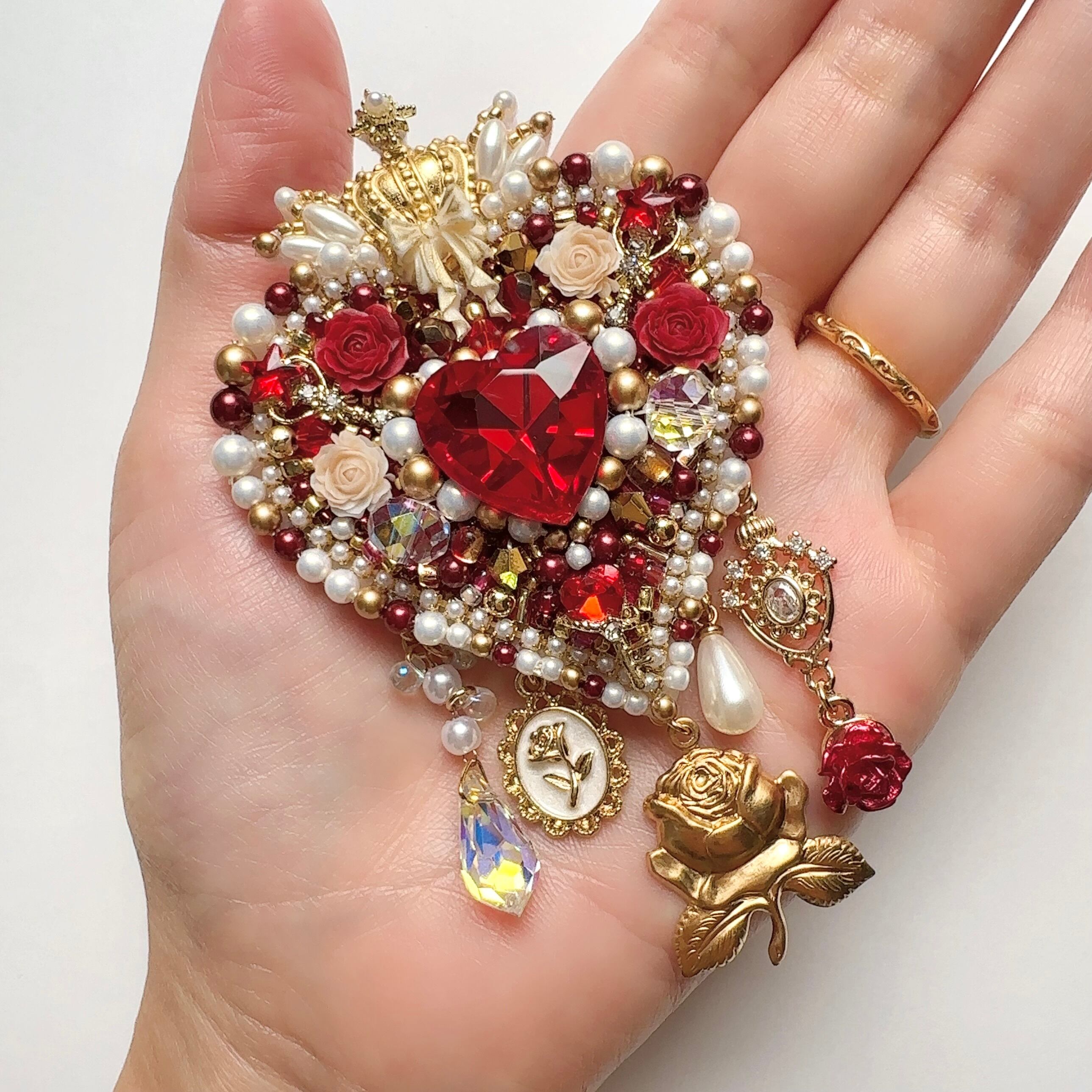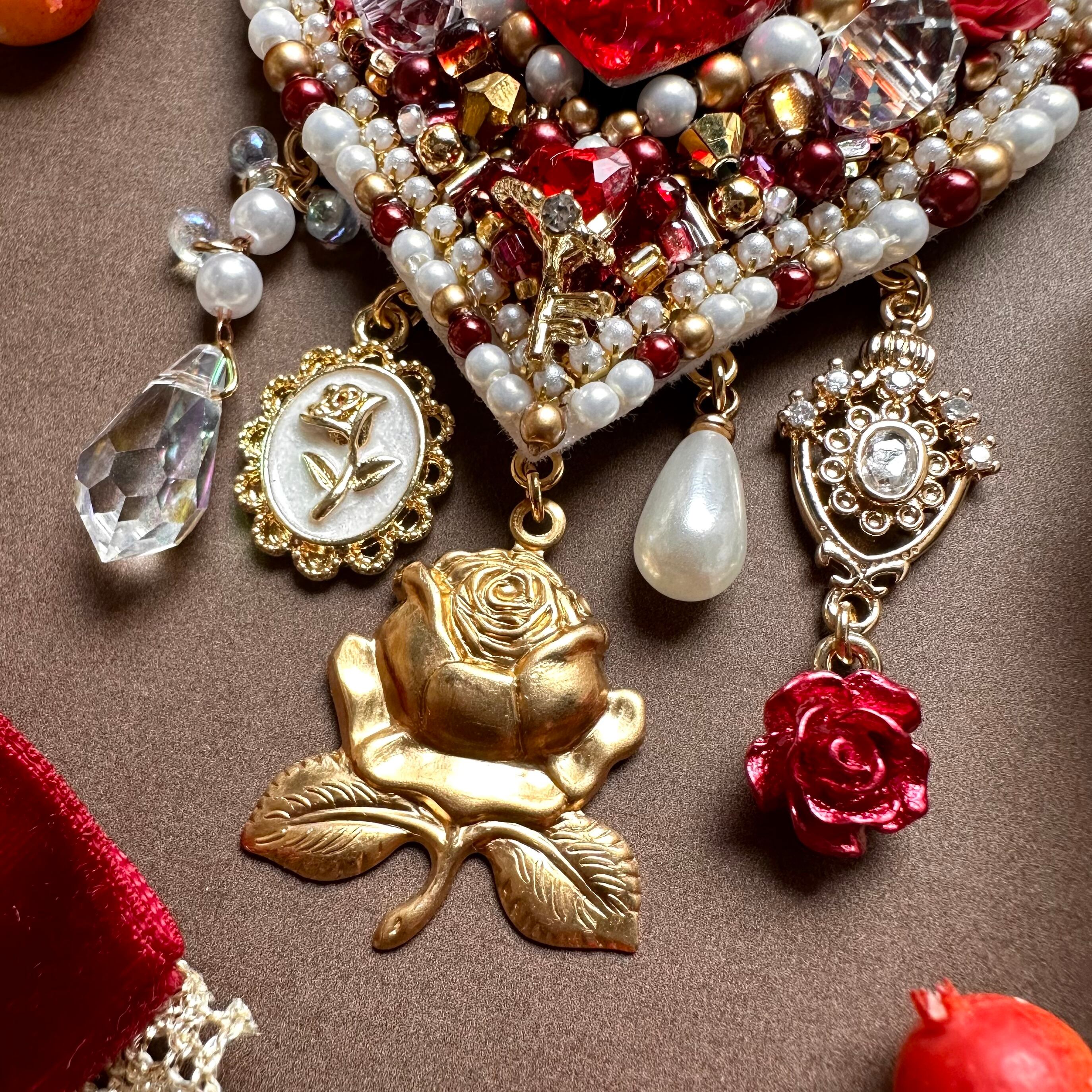 ビーズ刺繍のブローチ・ネックレス・バッグチャームの3wayです。