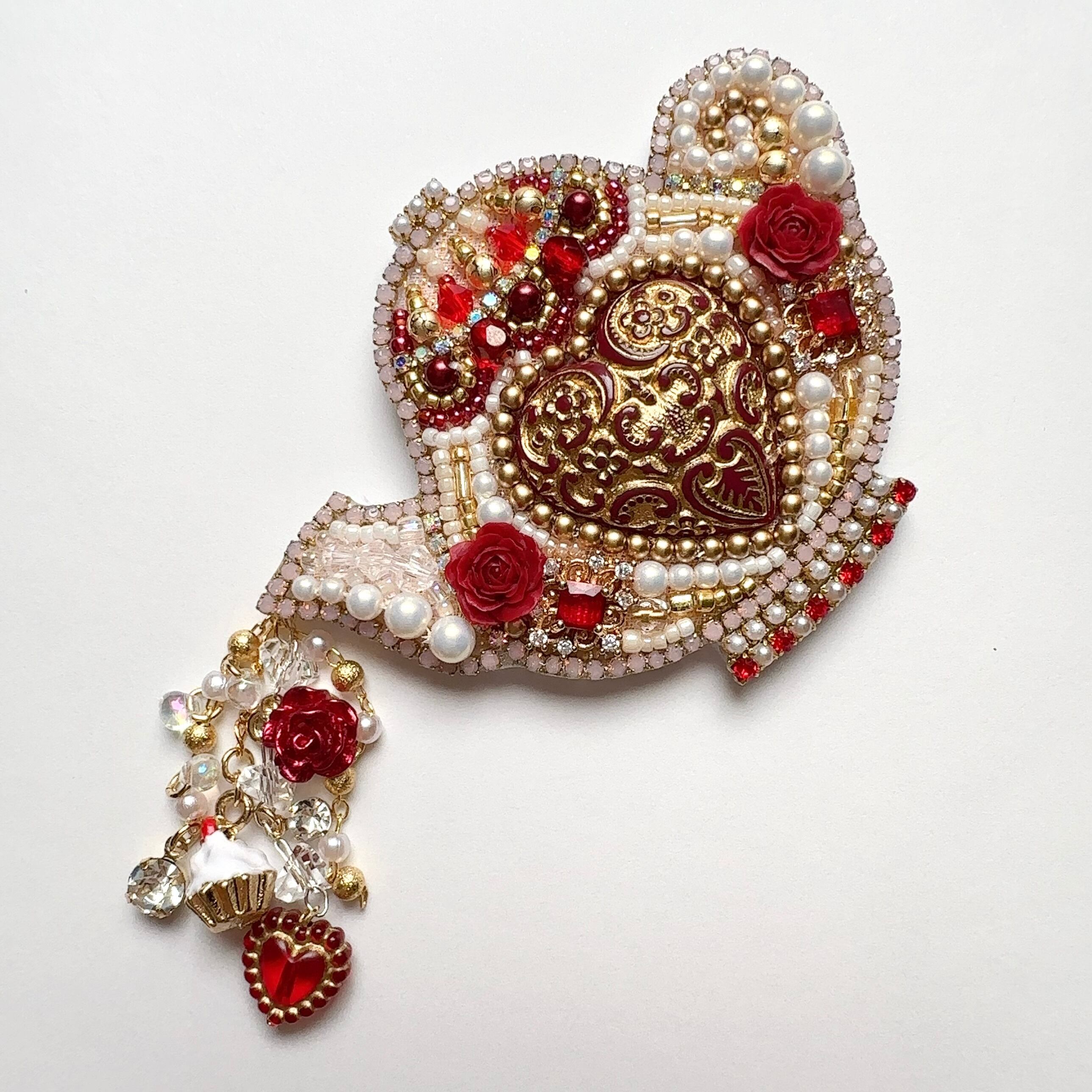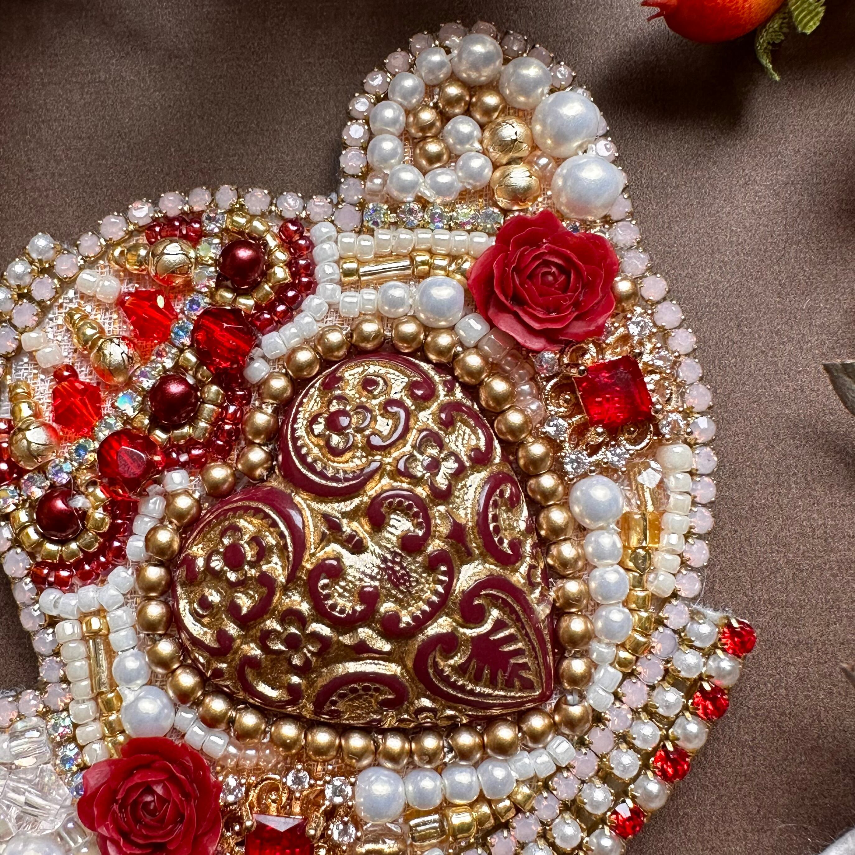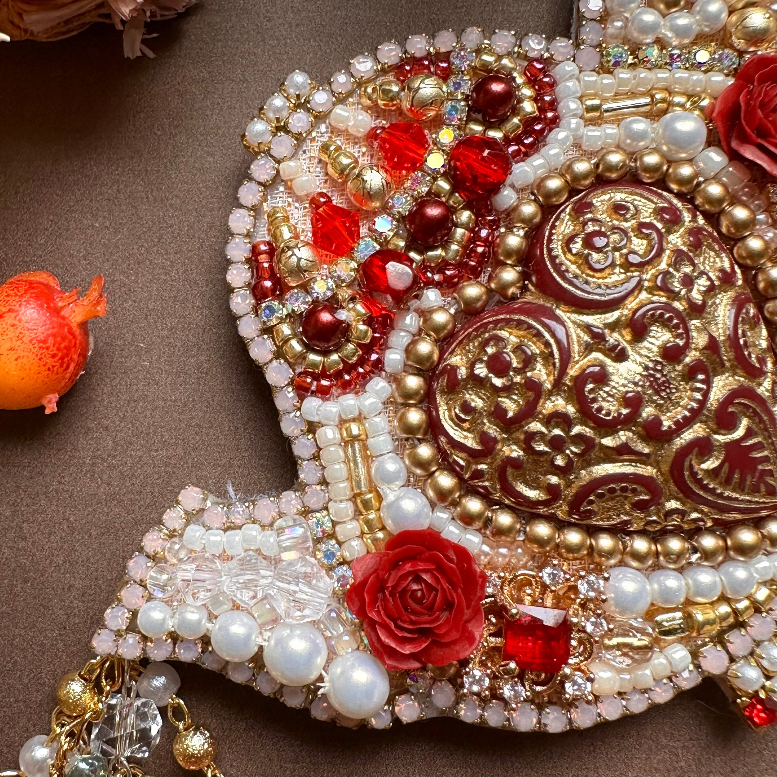 ビーズ刺繍のブローチ・ネックレス・バッグチャームの3wayです。