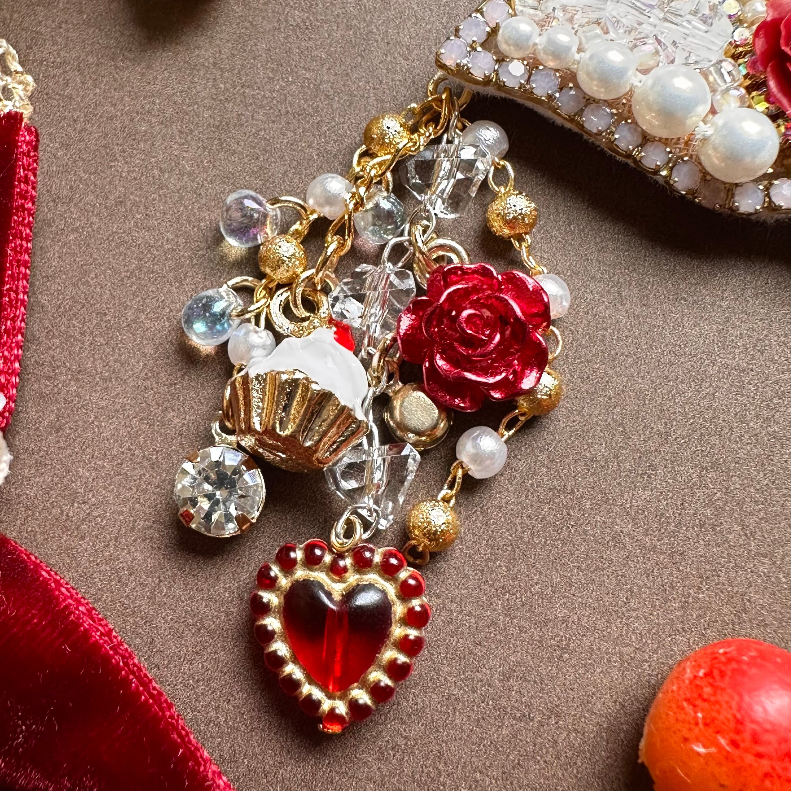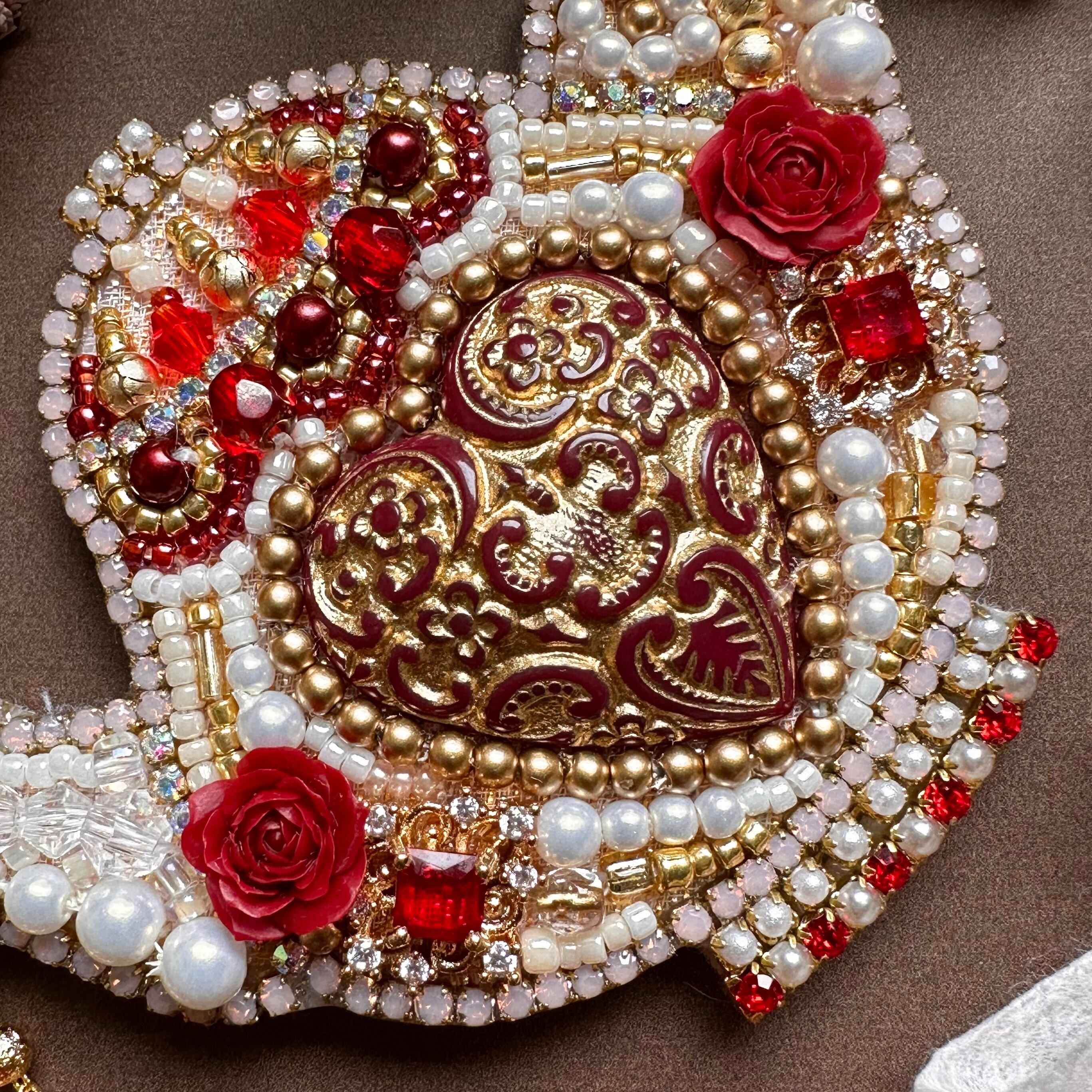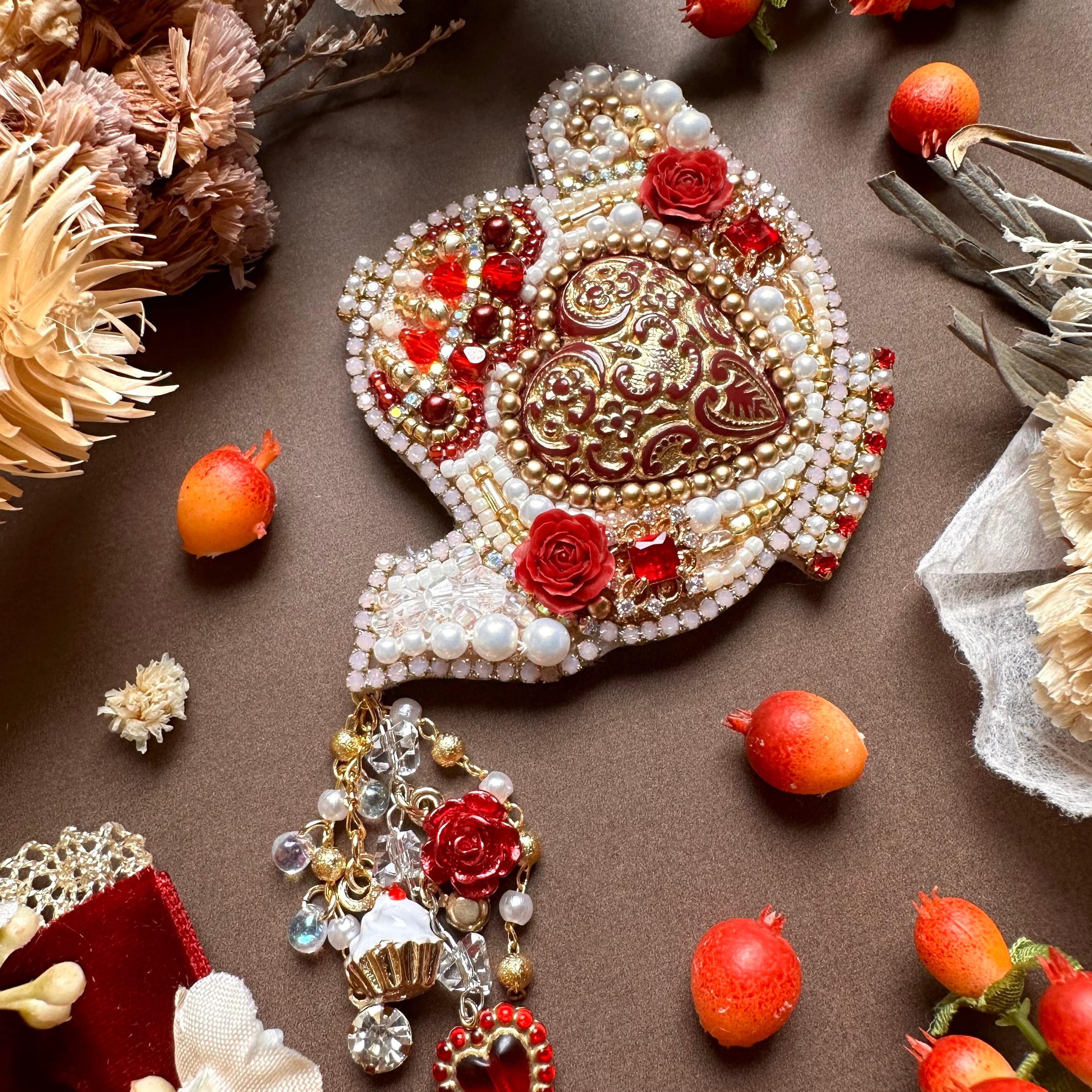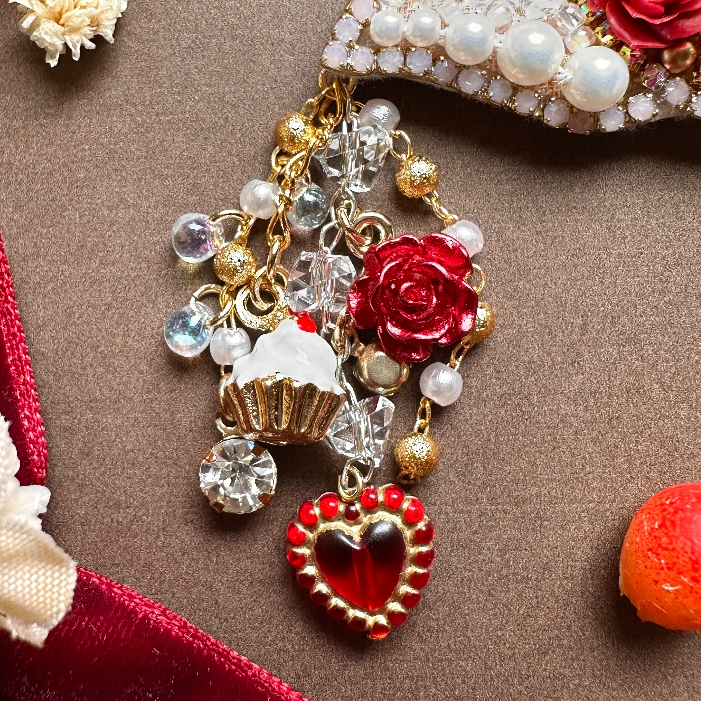 ビーズ刺繍のブローチ・ネックレス・バッグチャームの3wayです。
