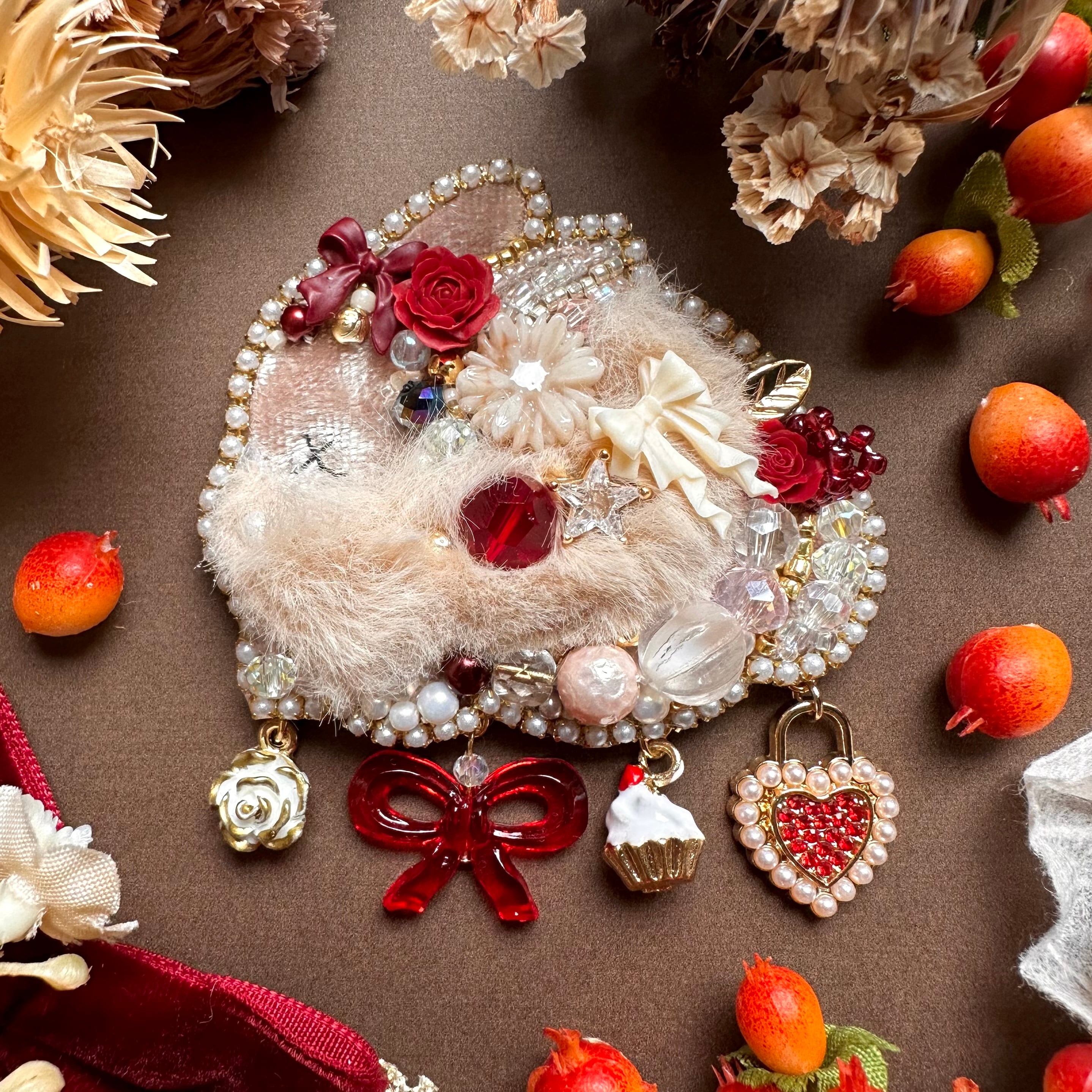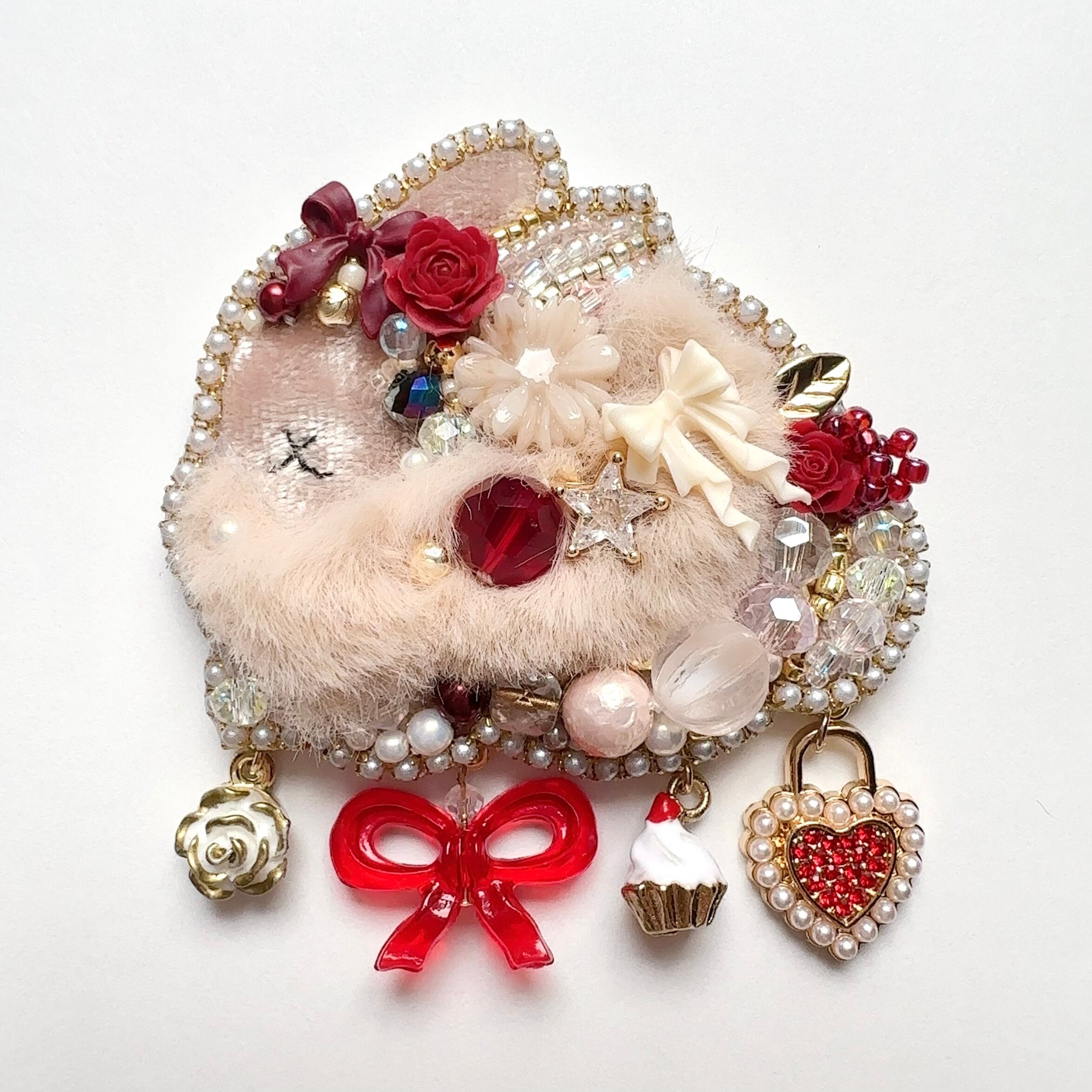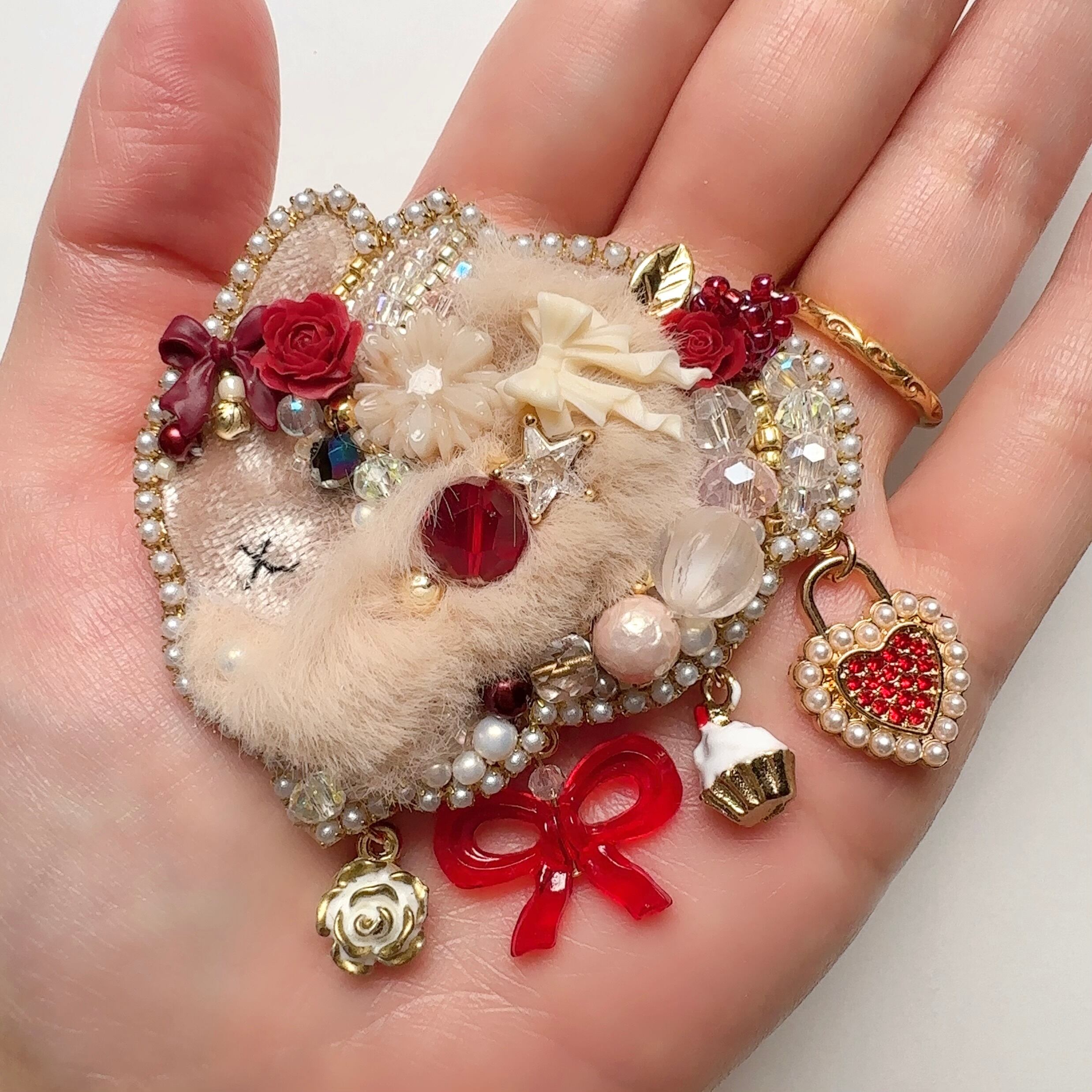 ビーズ刺繍のブローチ・ネックレス・バッグチャームの3wayです。