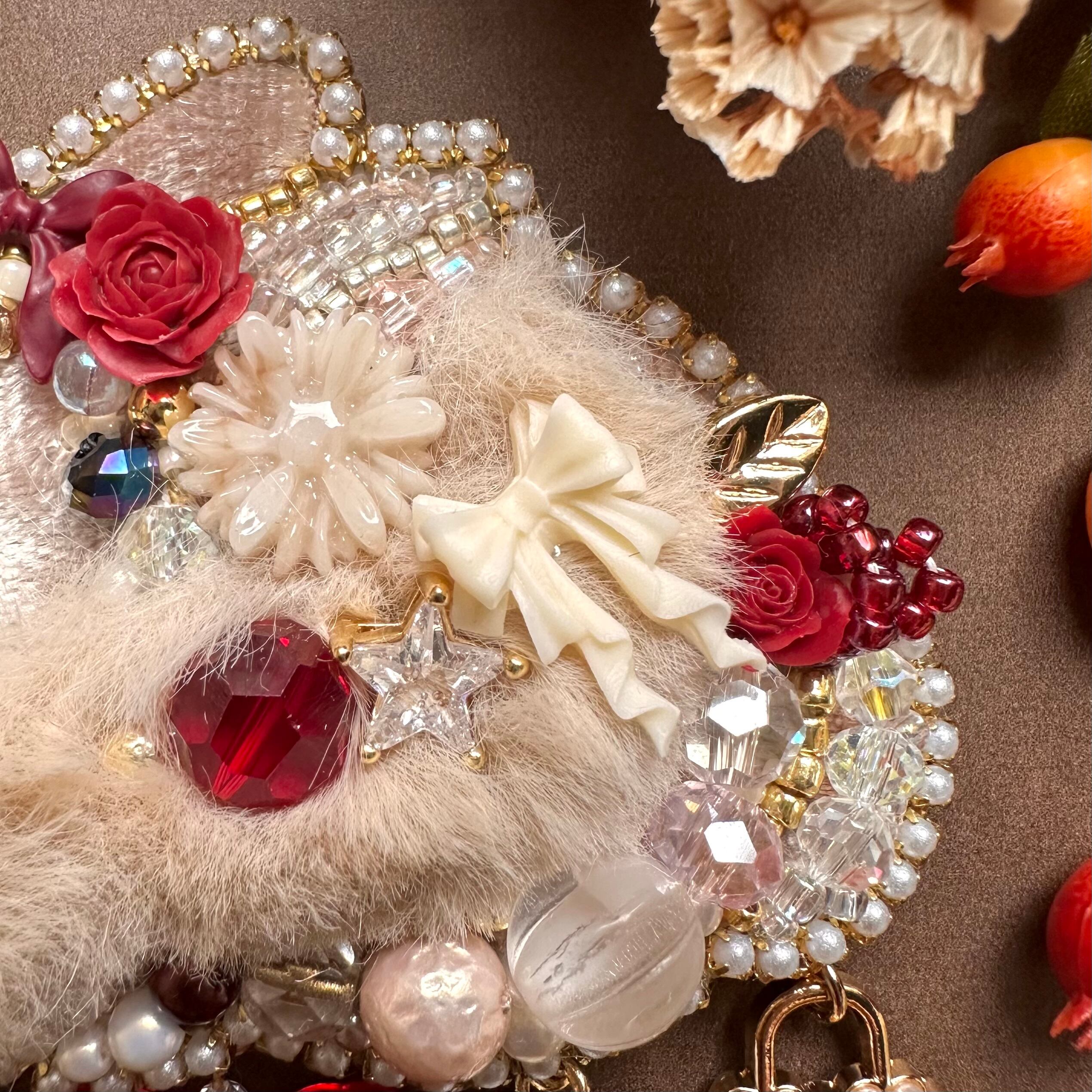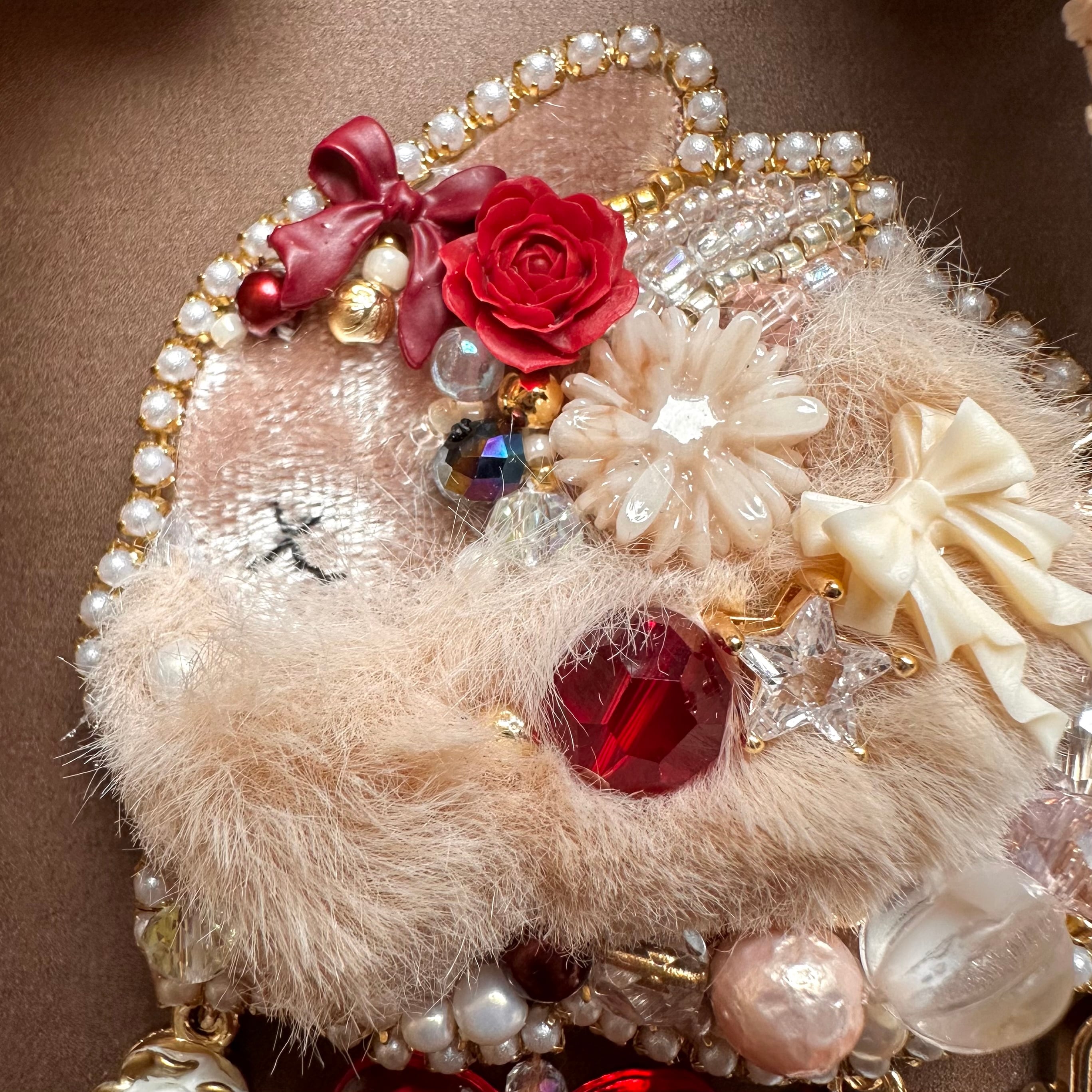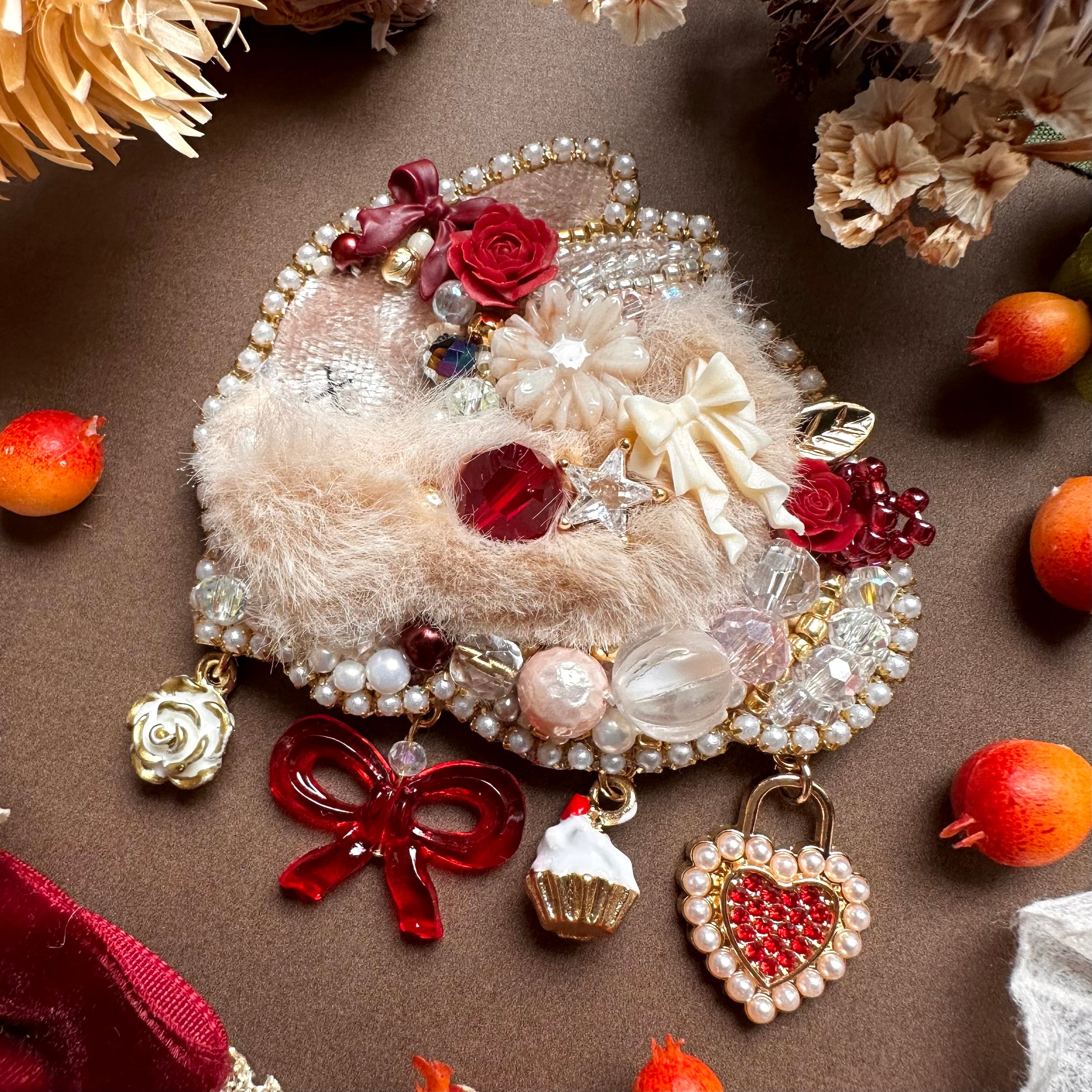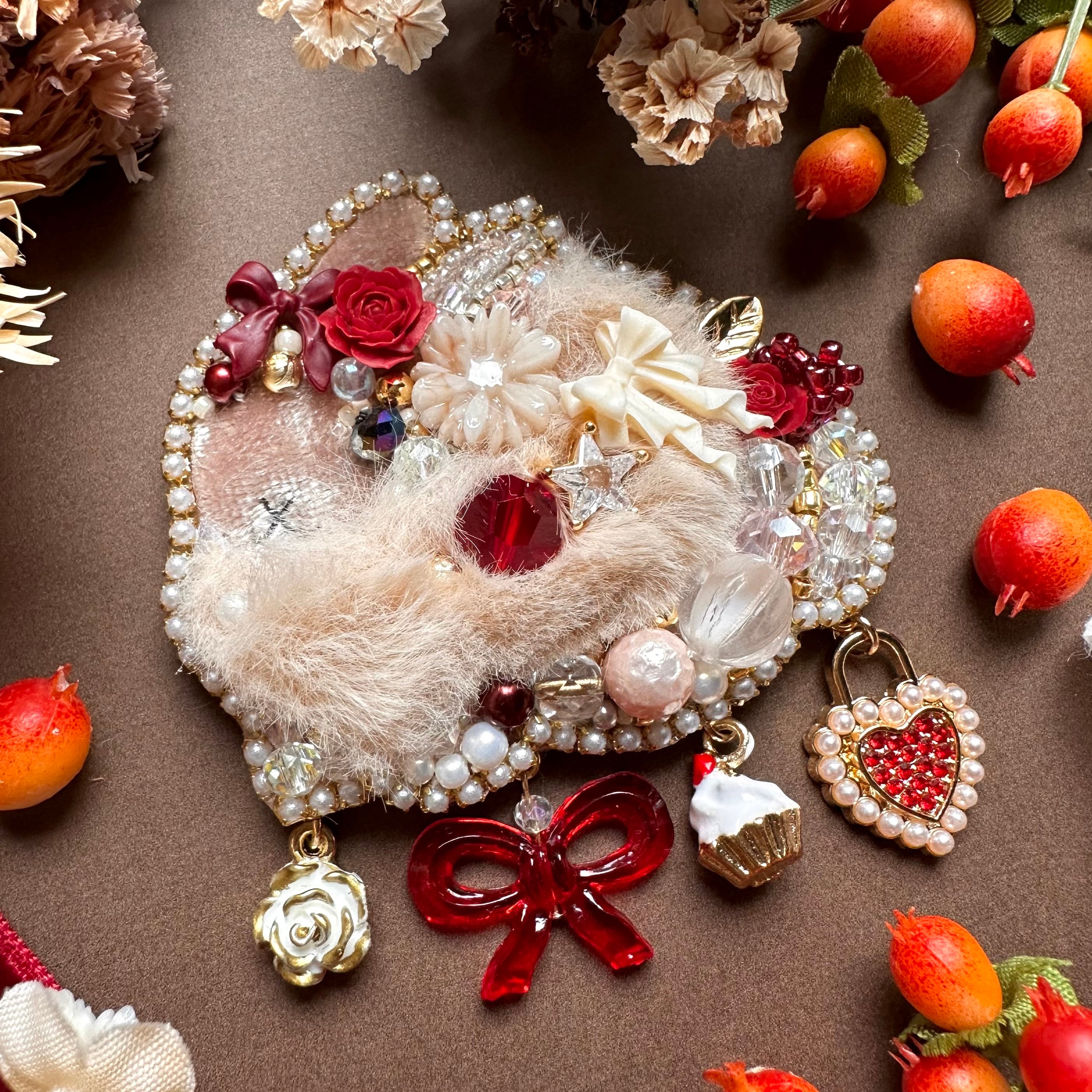 ビーズ刺繍のブローチ・ネックレス・バッグチャームの3wayです。