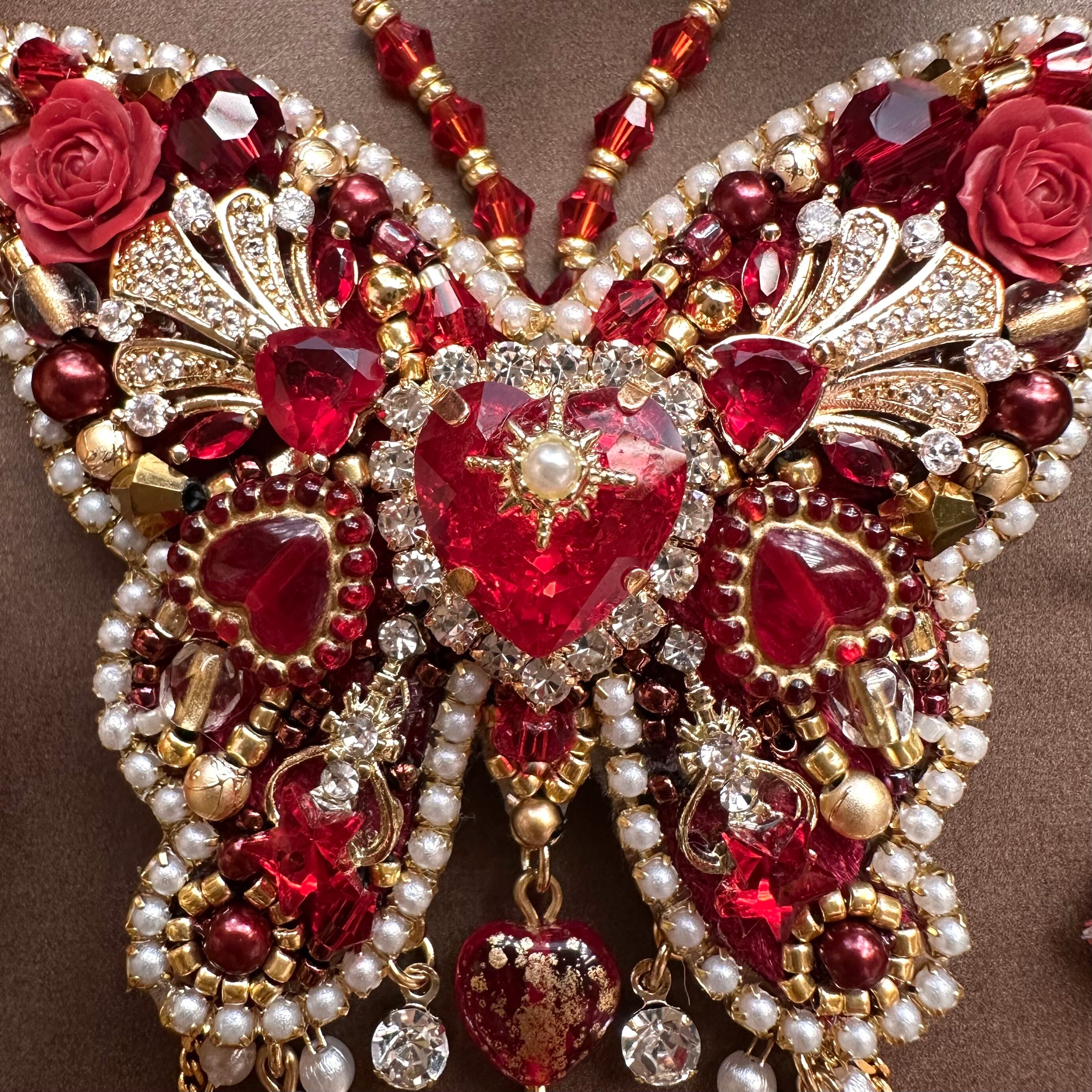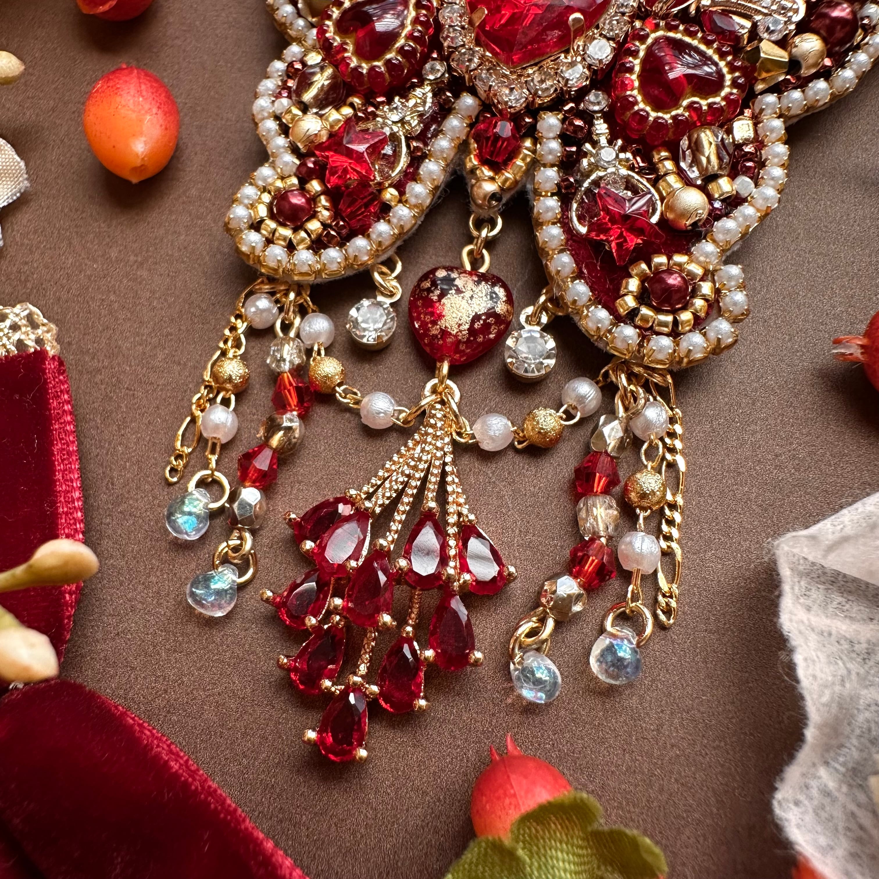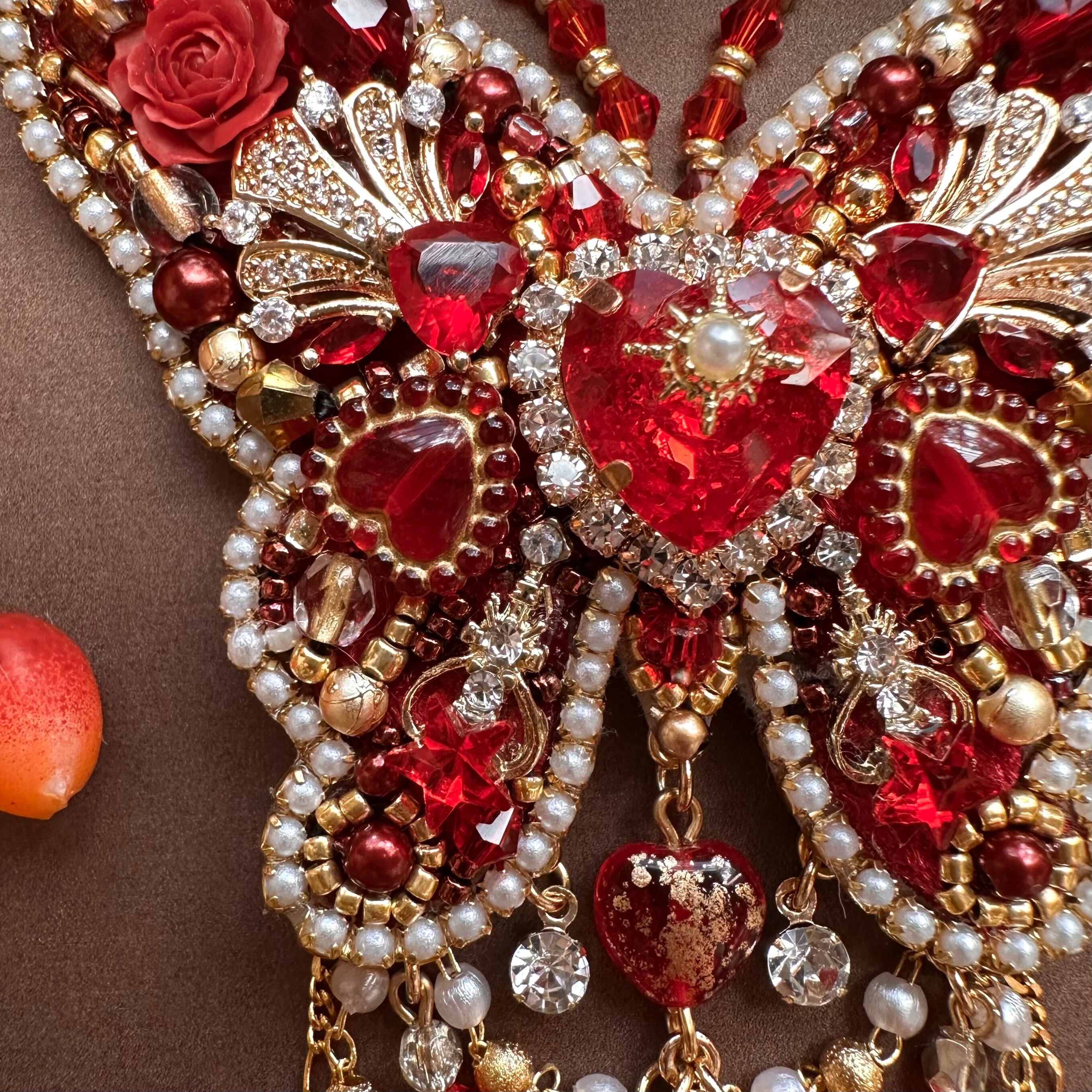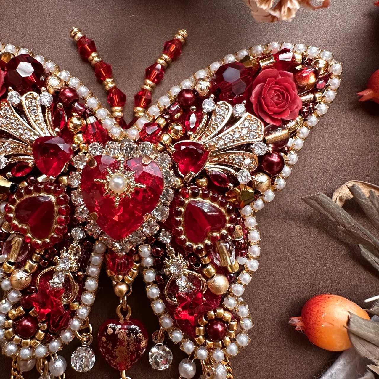 ビーズ刺繍のブローチ・ネックレス・バッグチャームの3wayです。