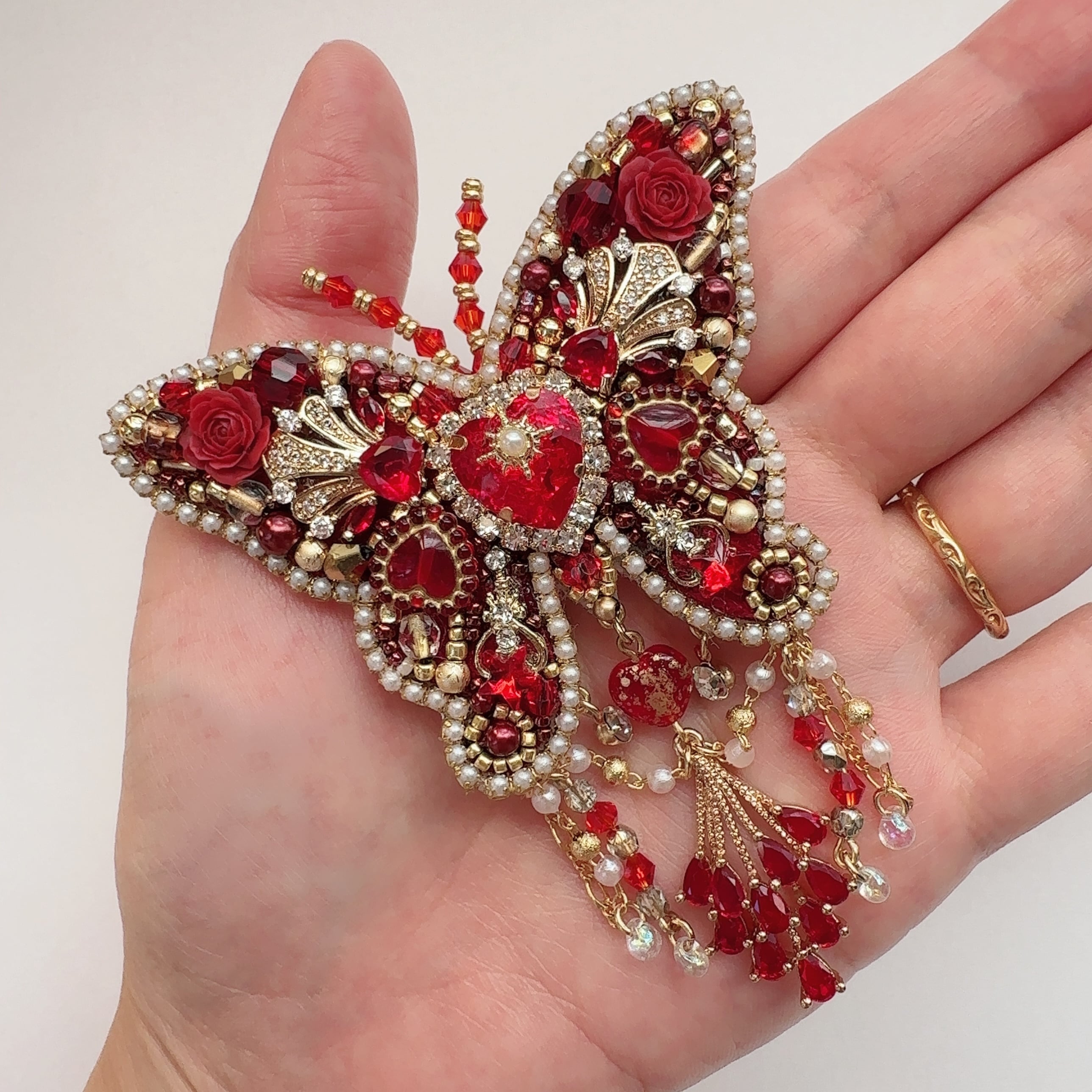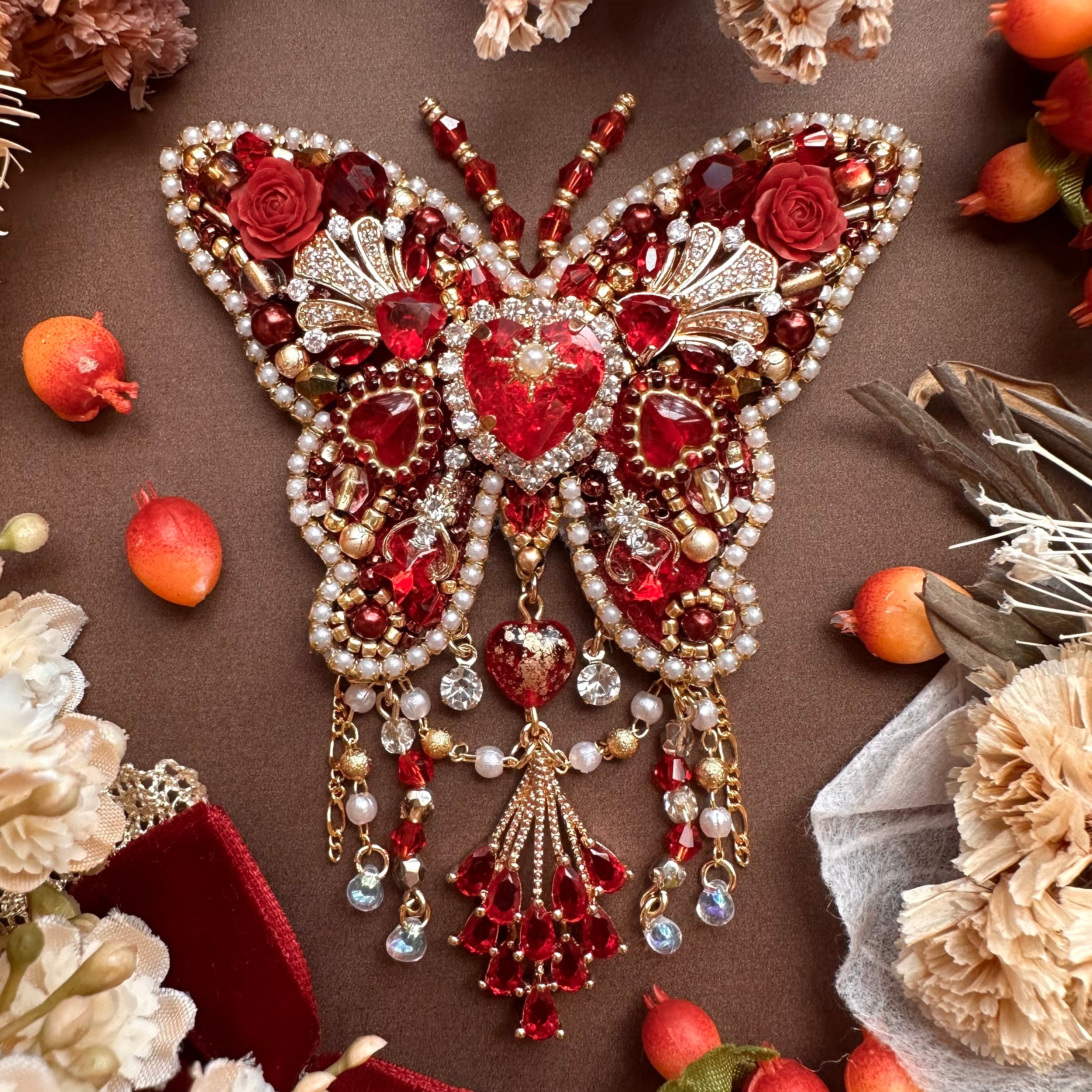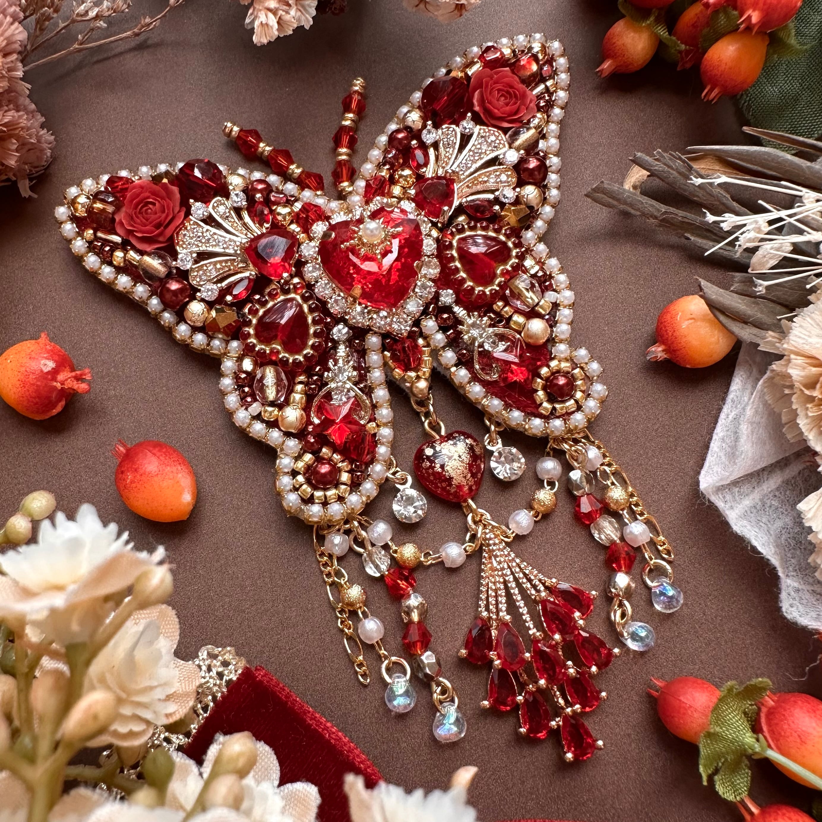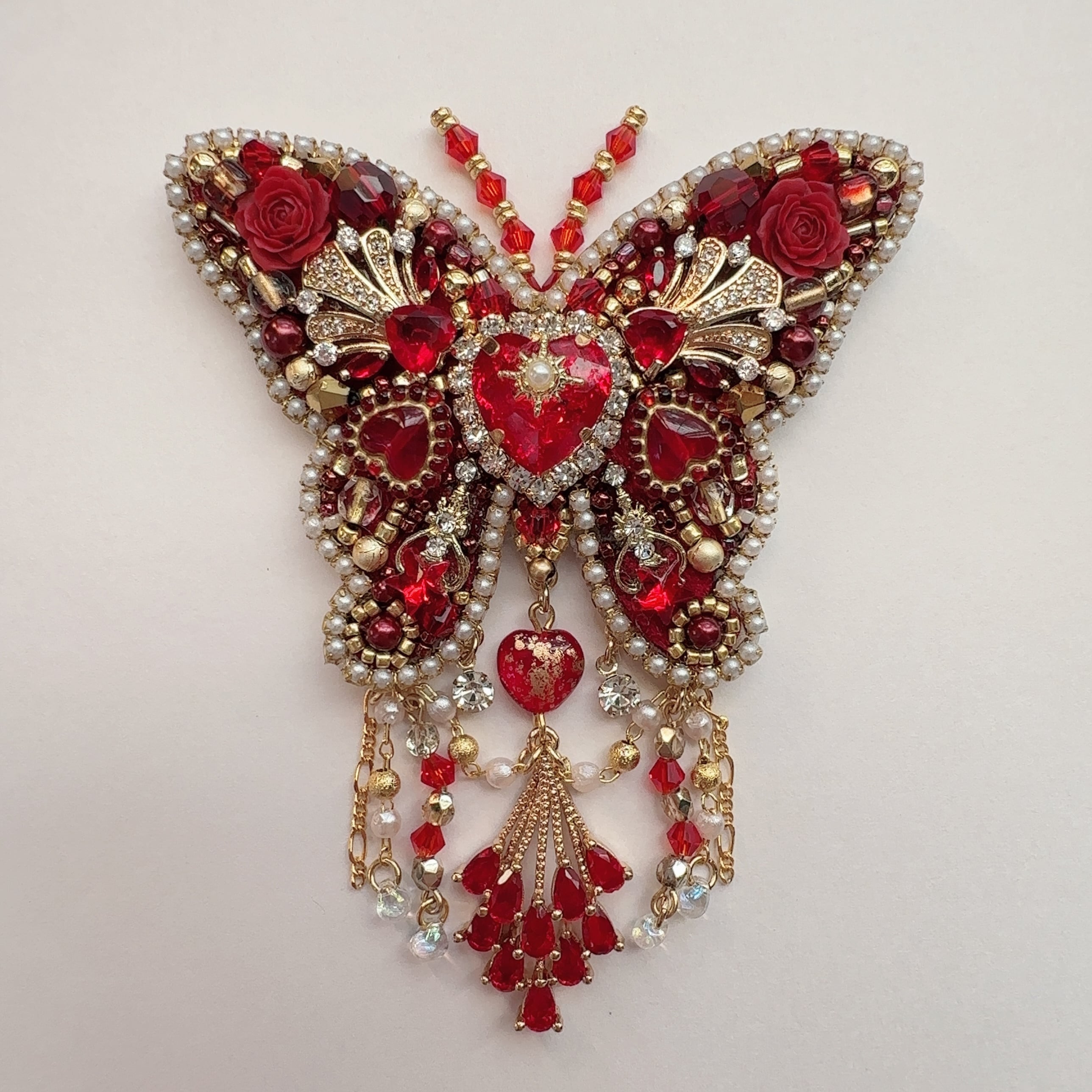 ビーズ刺繍のブローチ・ネックレス・バッグチャームの3wayです。