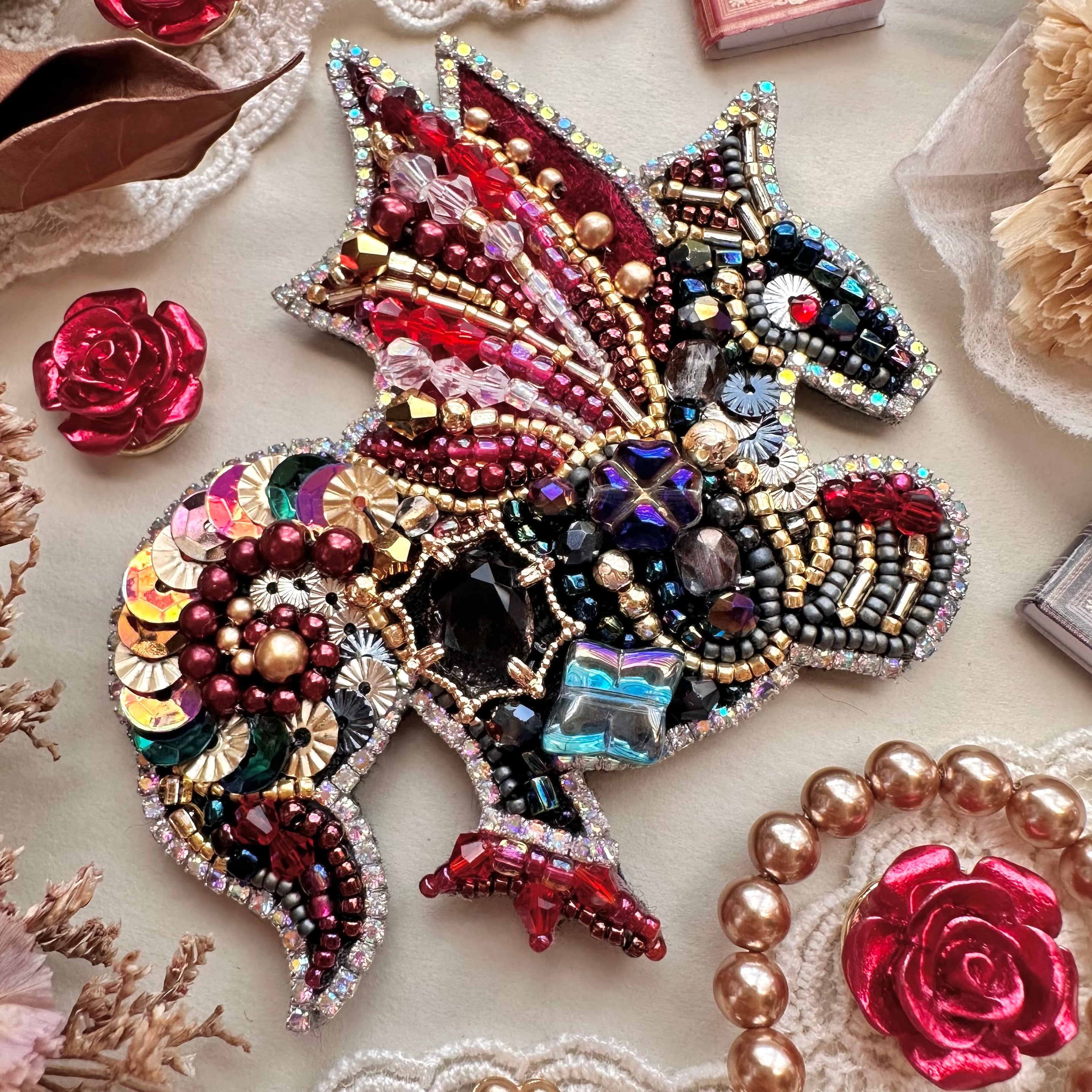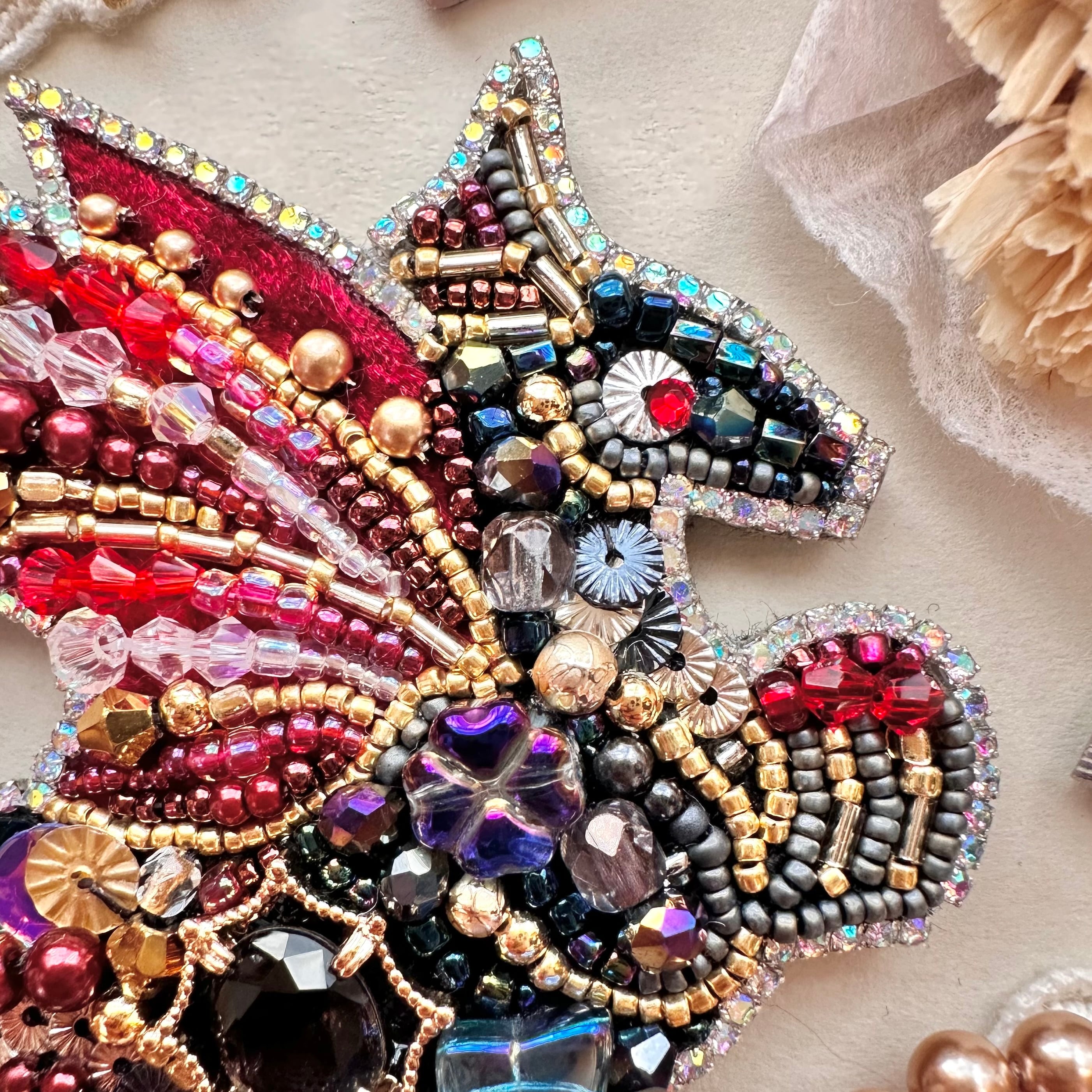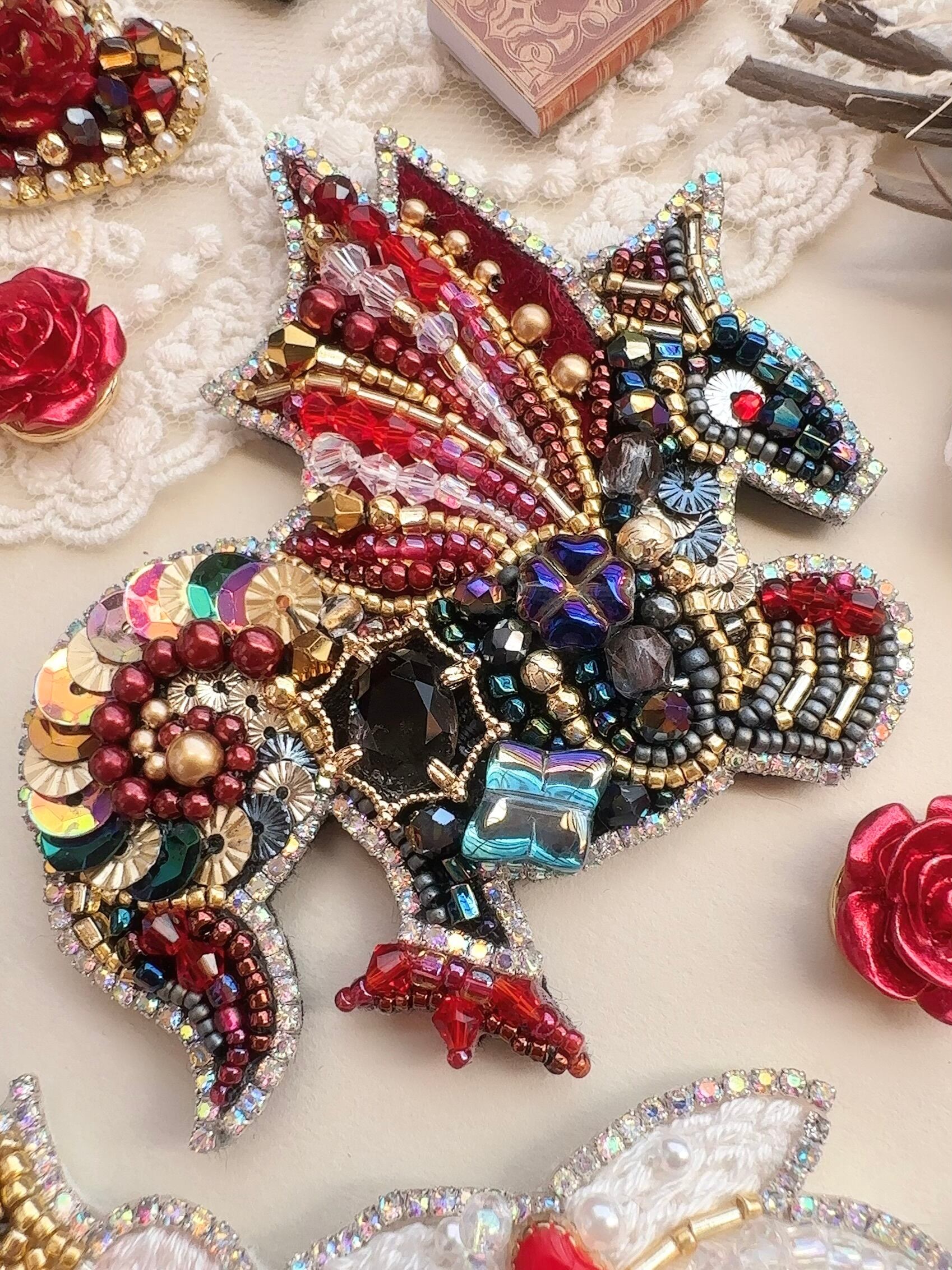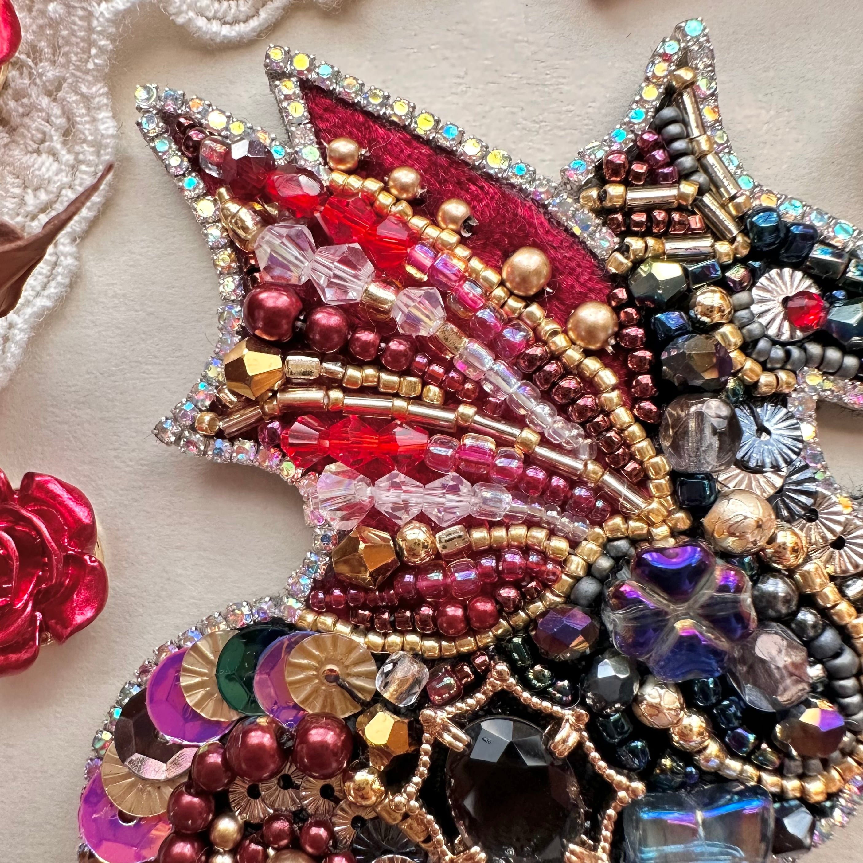ビーズ刺繍のブローチ・ネックレス・バッグチャームの3wayです。