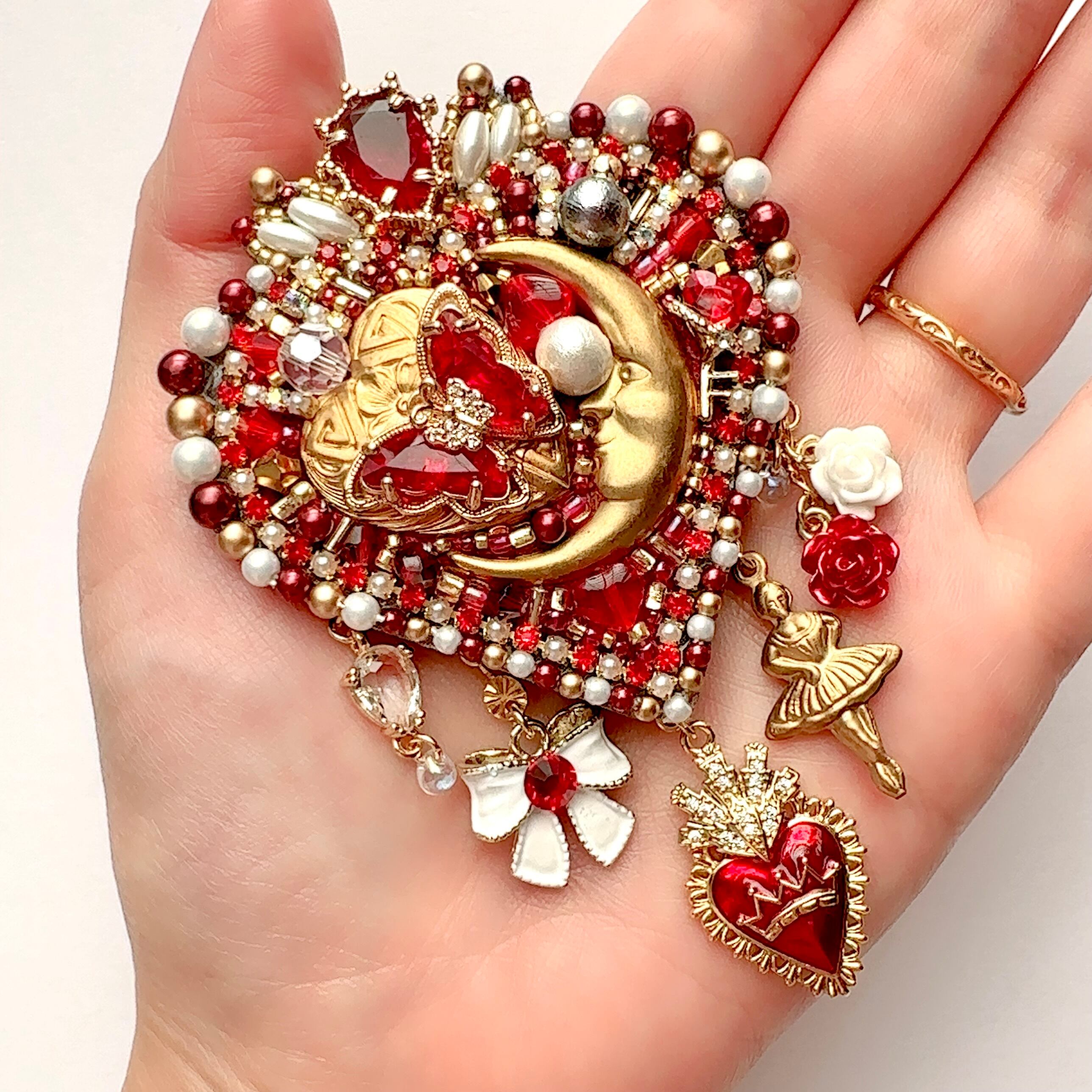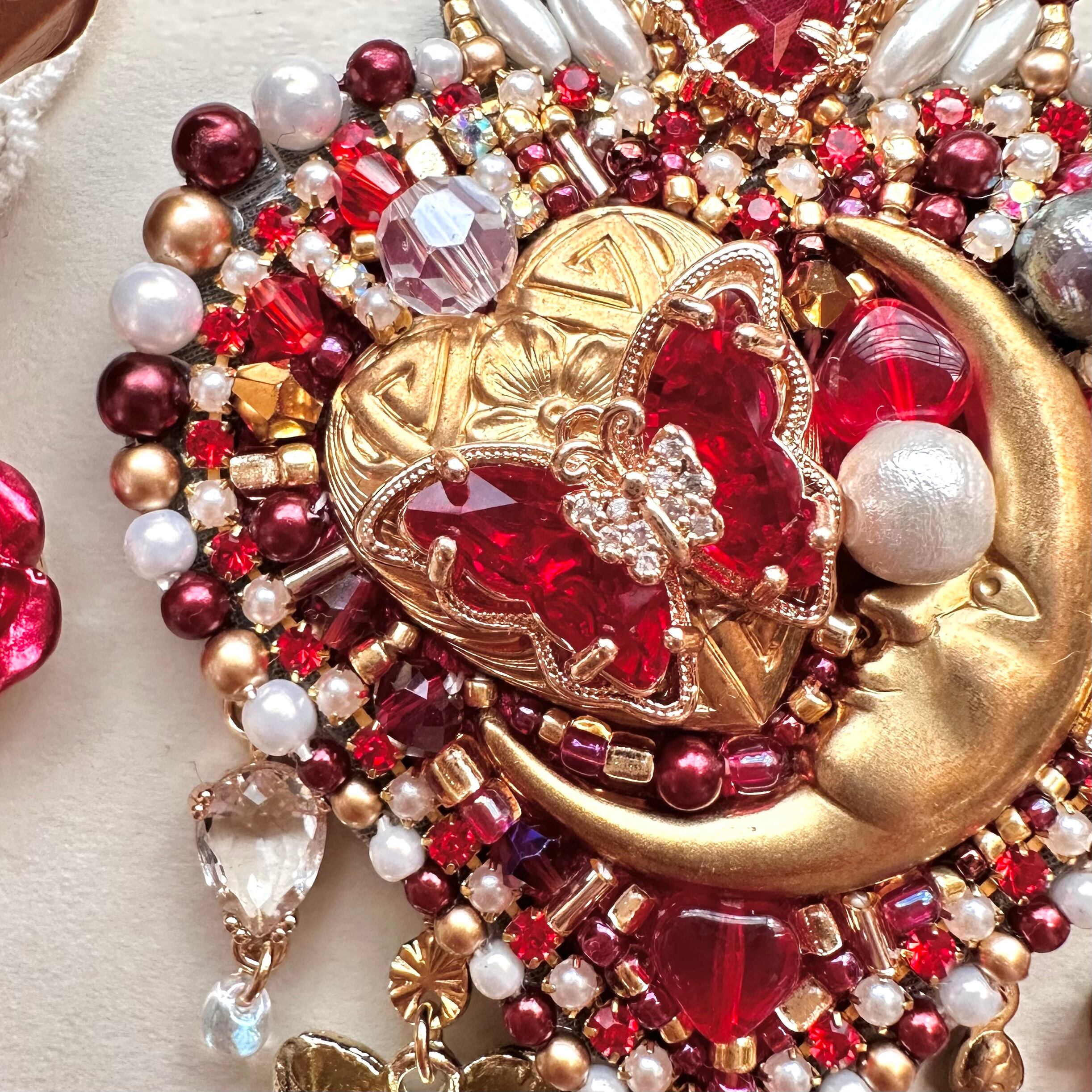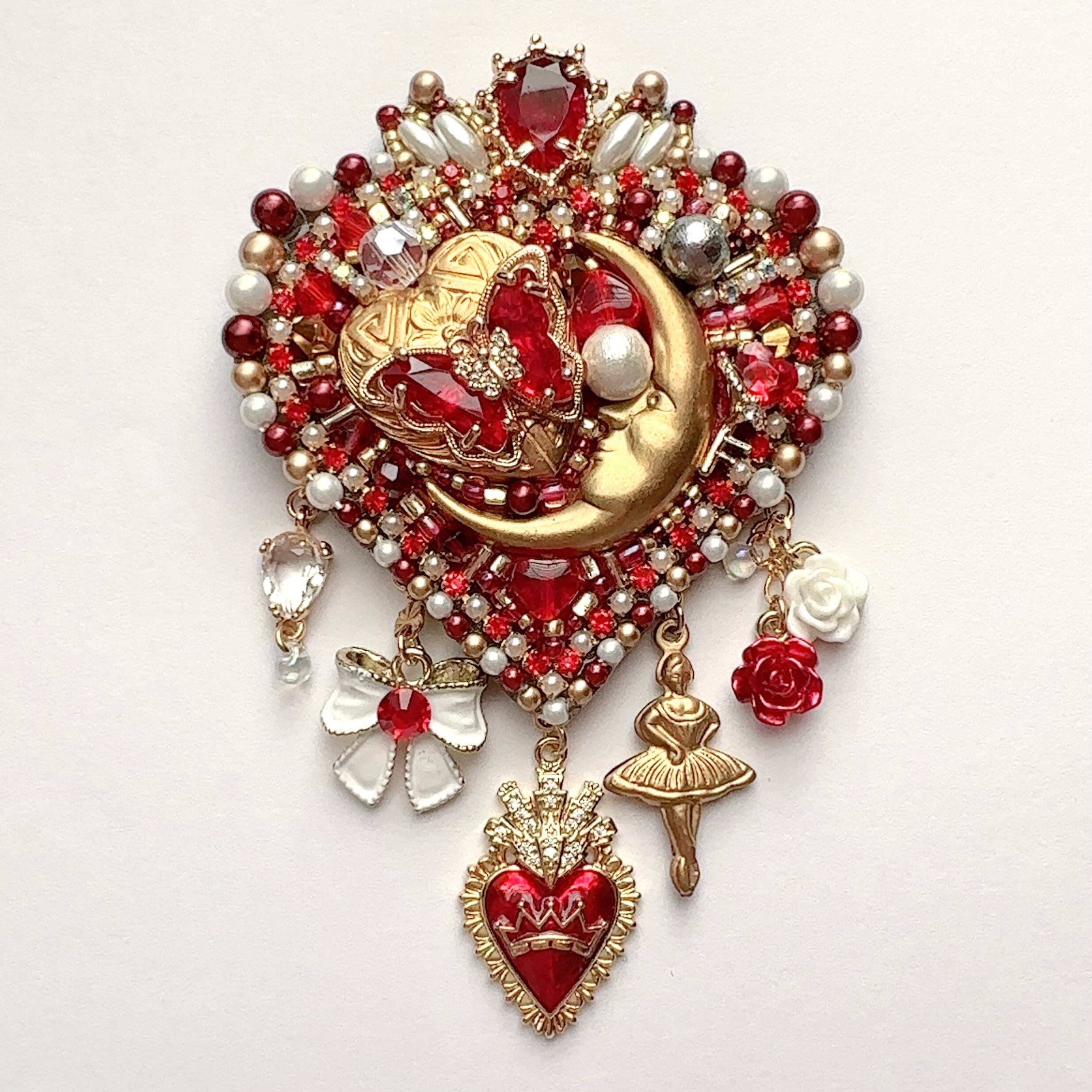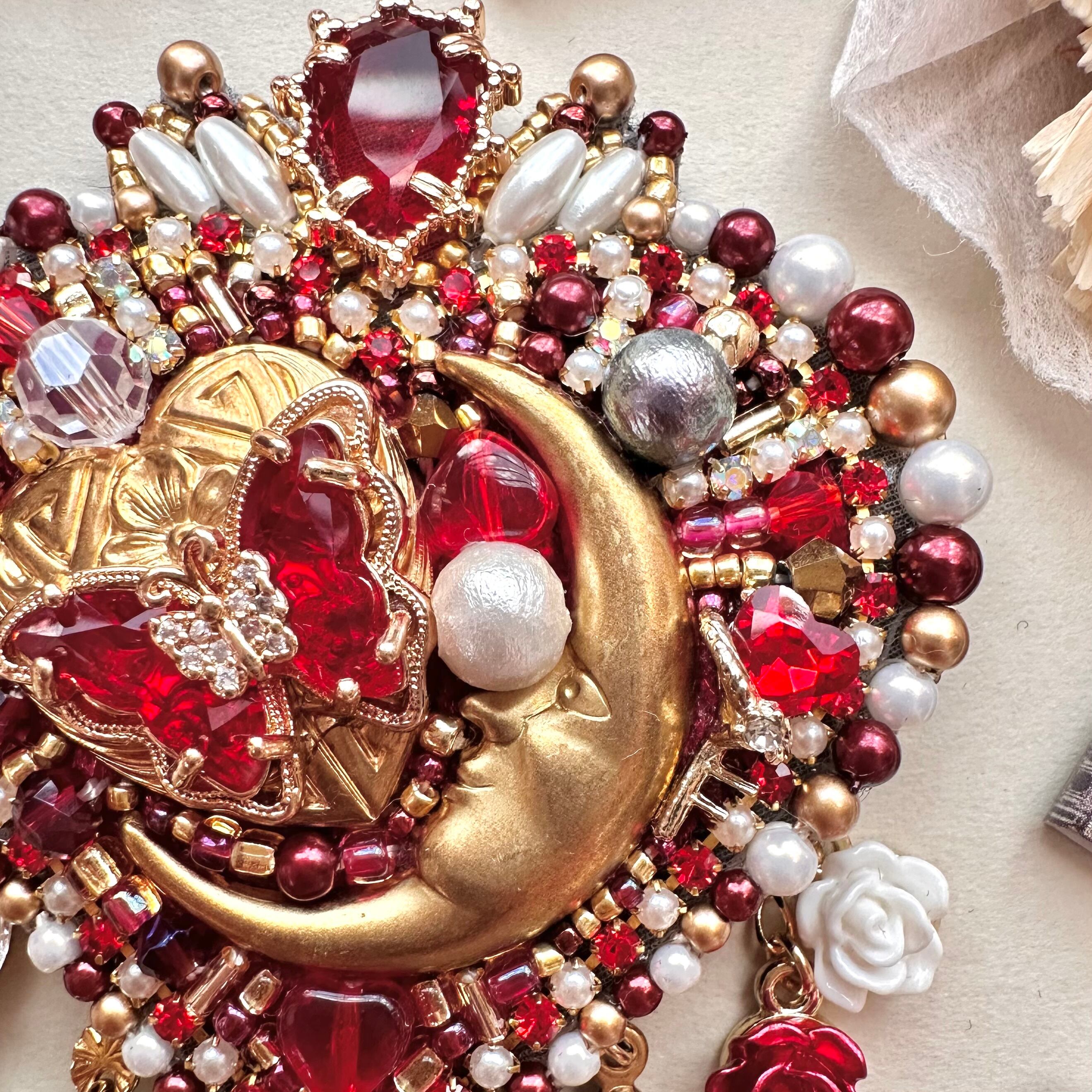 ビーズ刺繍のブローチ・ネックレス・バッグチャームの3wayです。