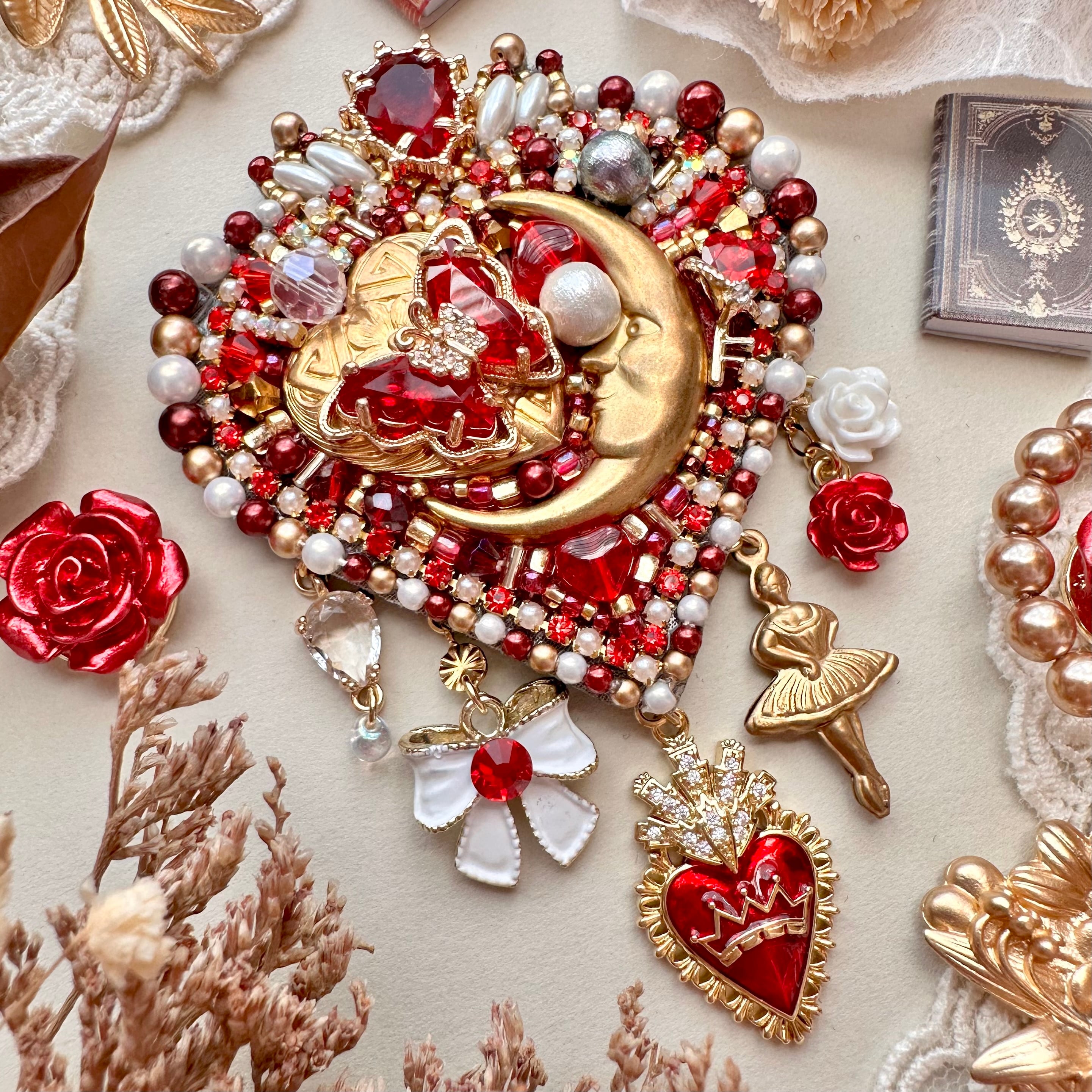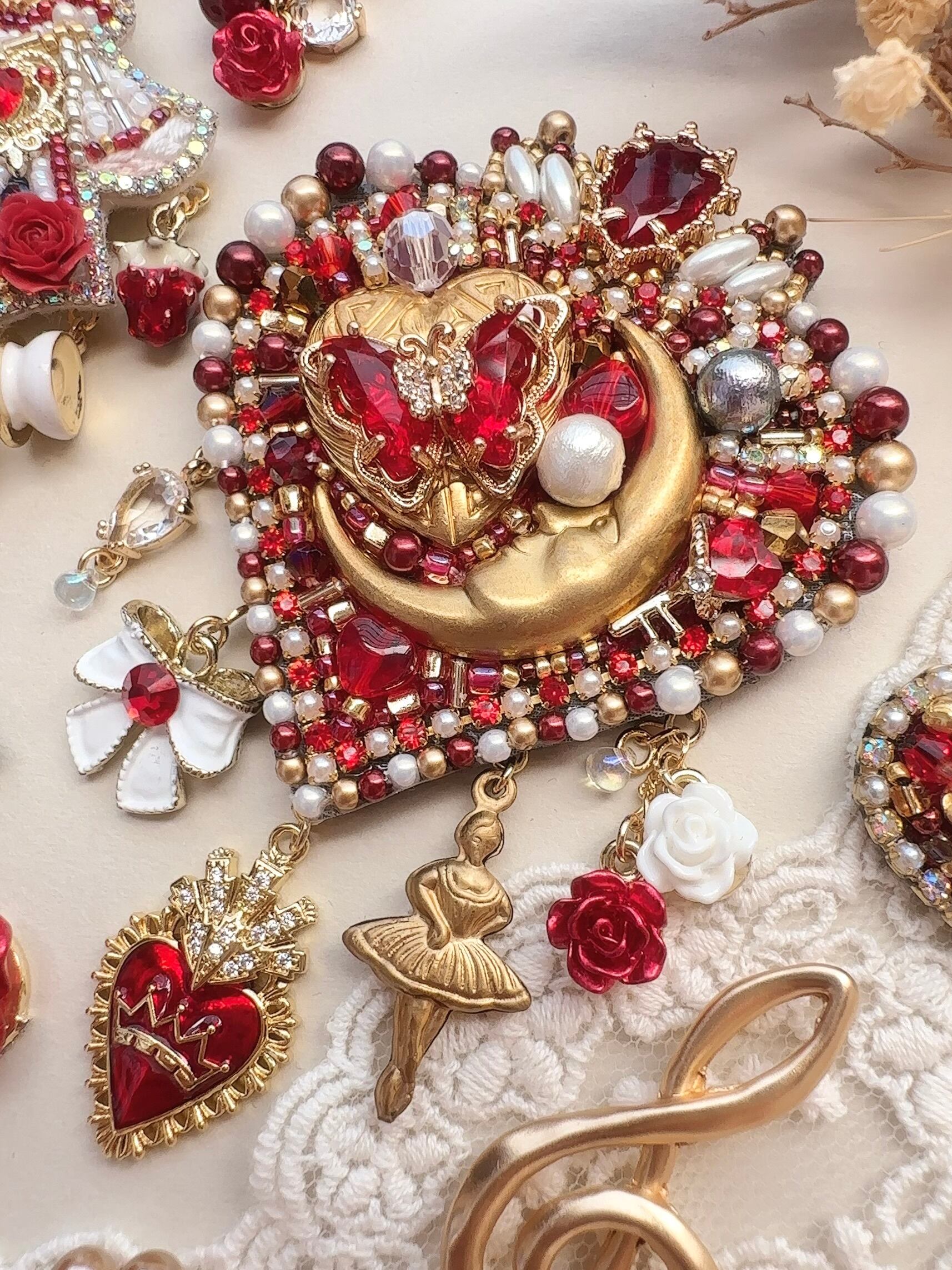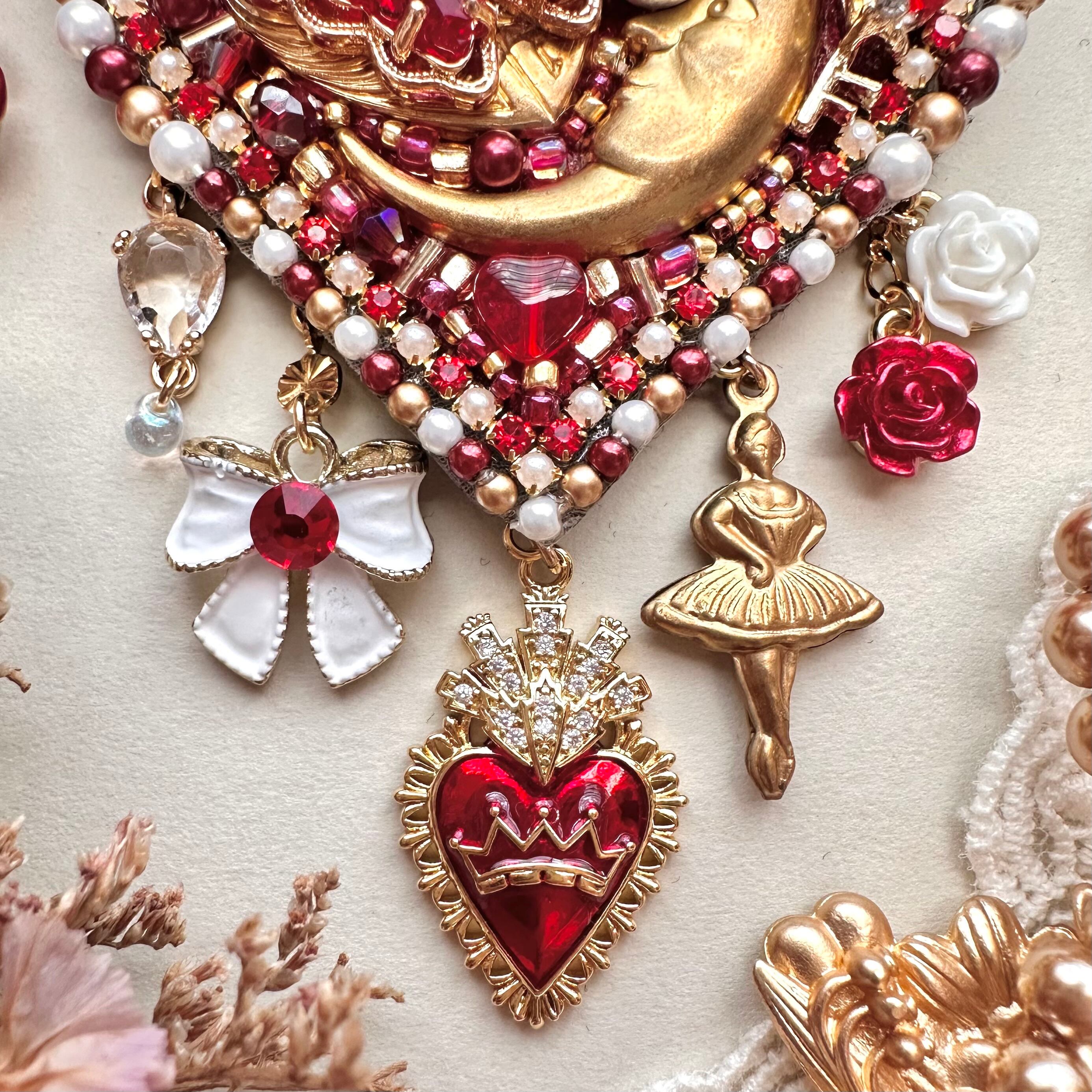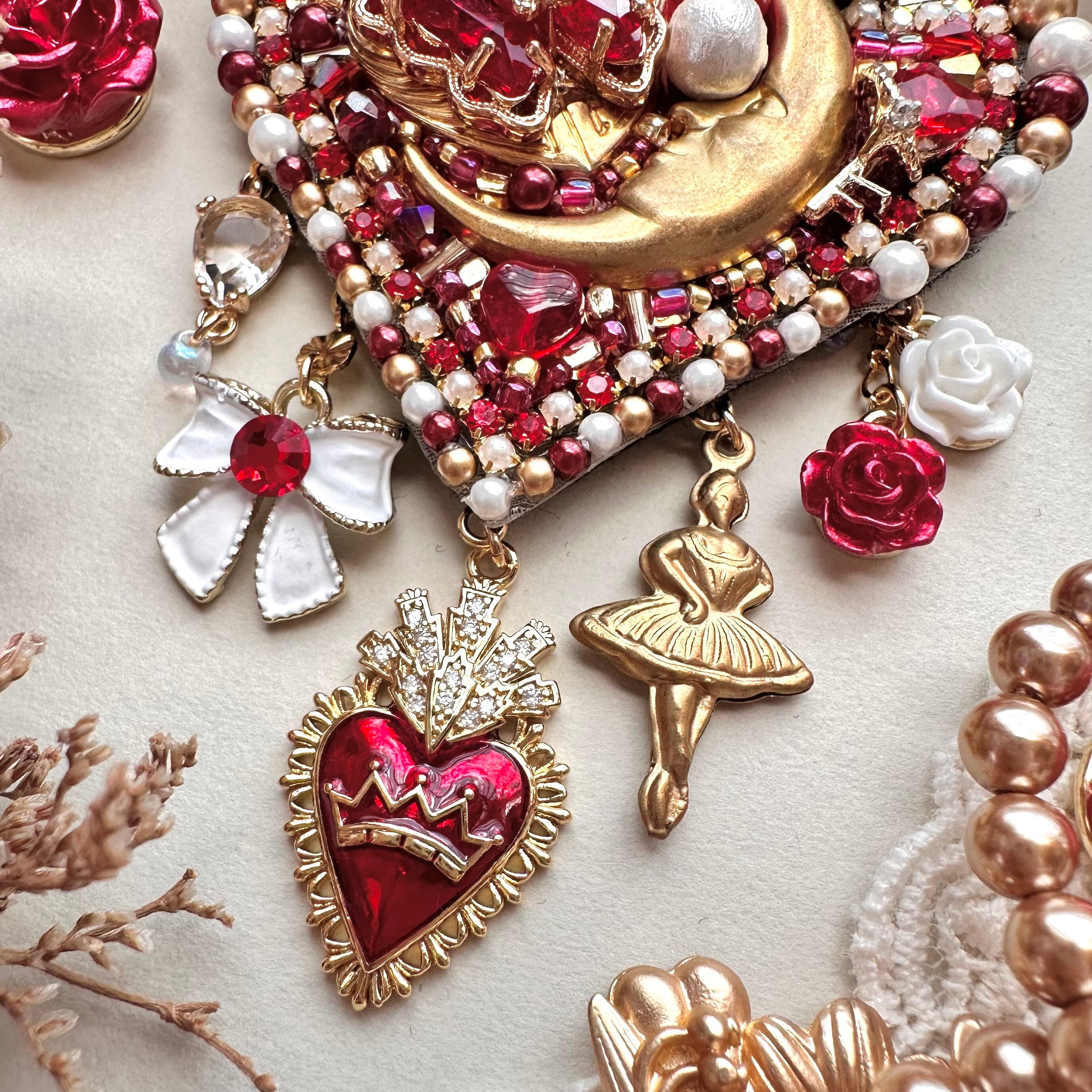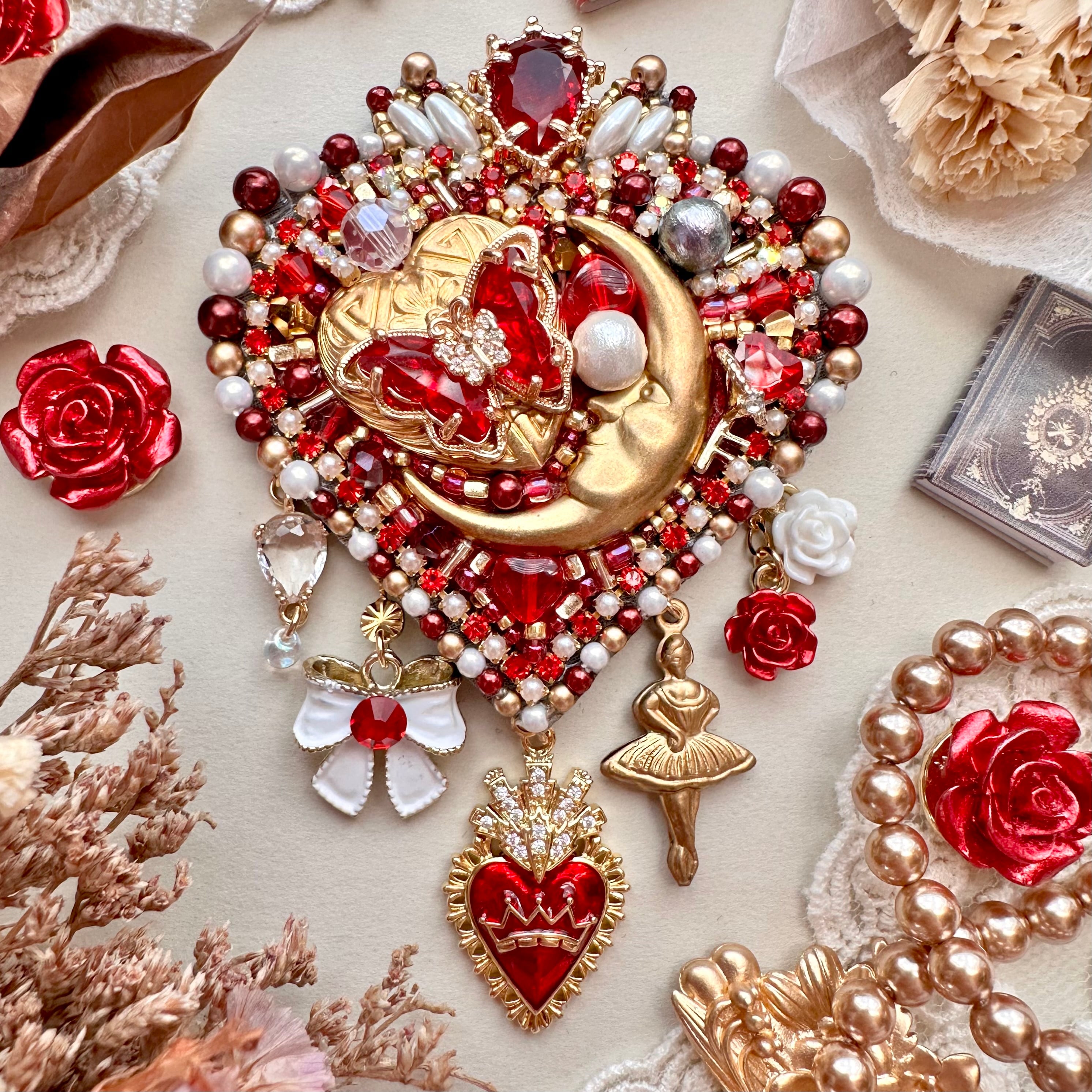 ビーズ刺繍のブローチ・ネックレス・バッグチャームの3wayです。