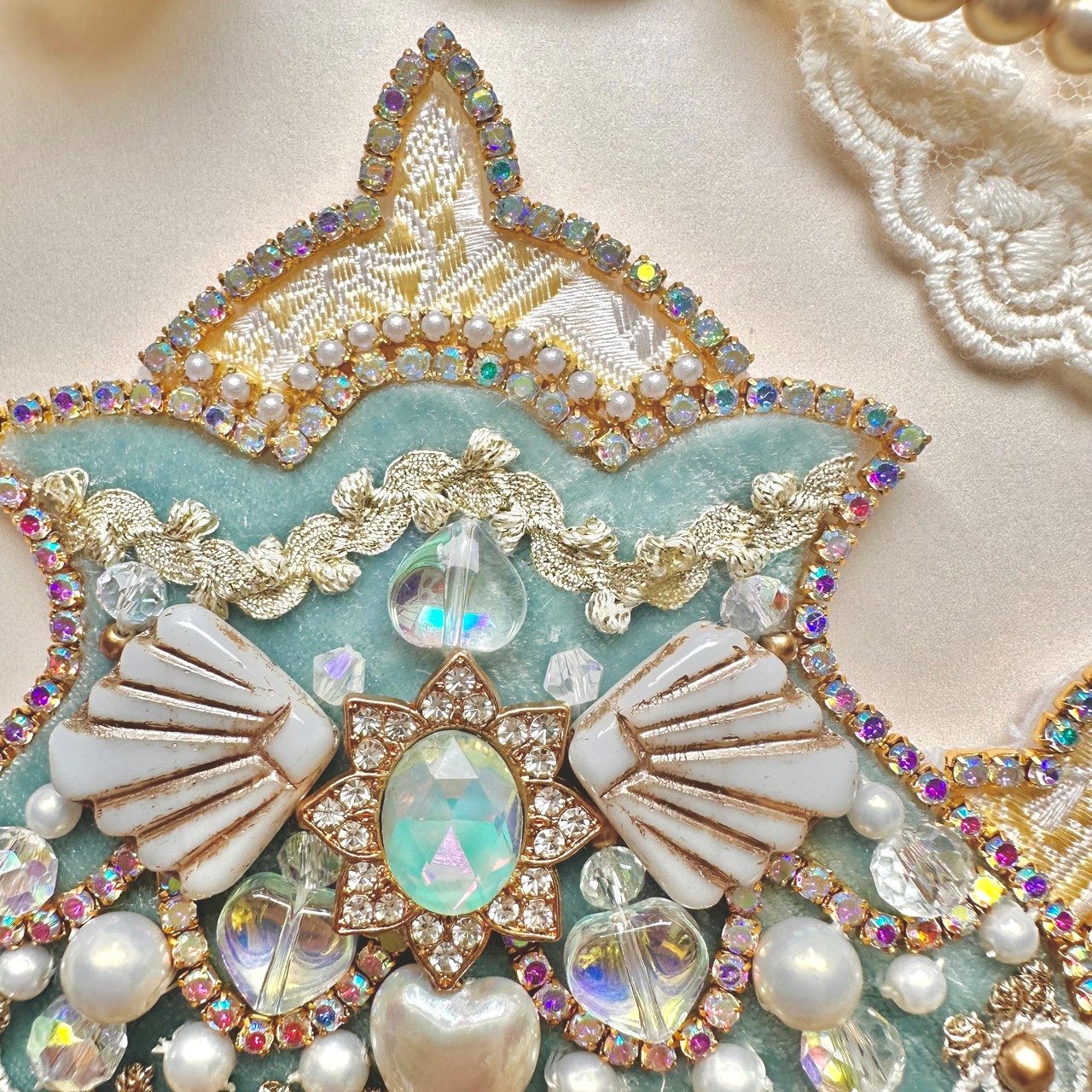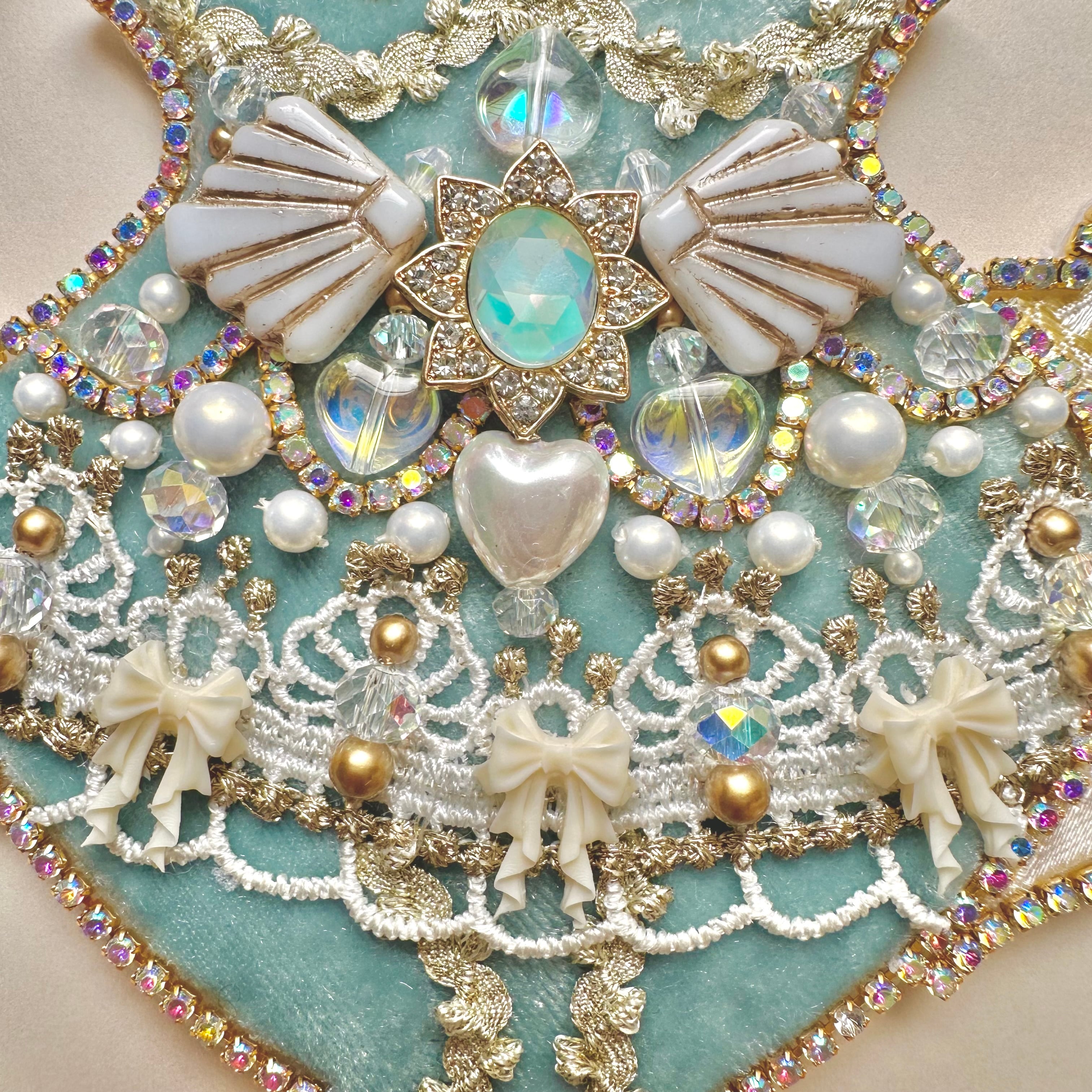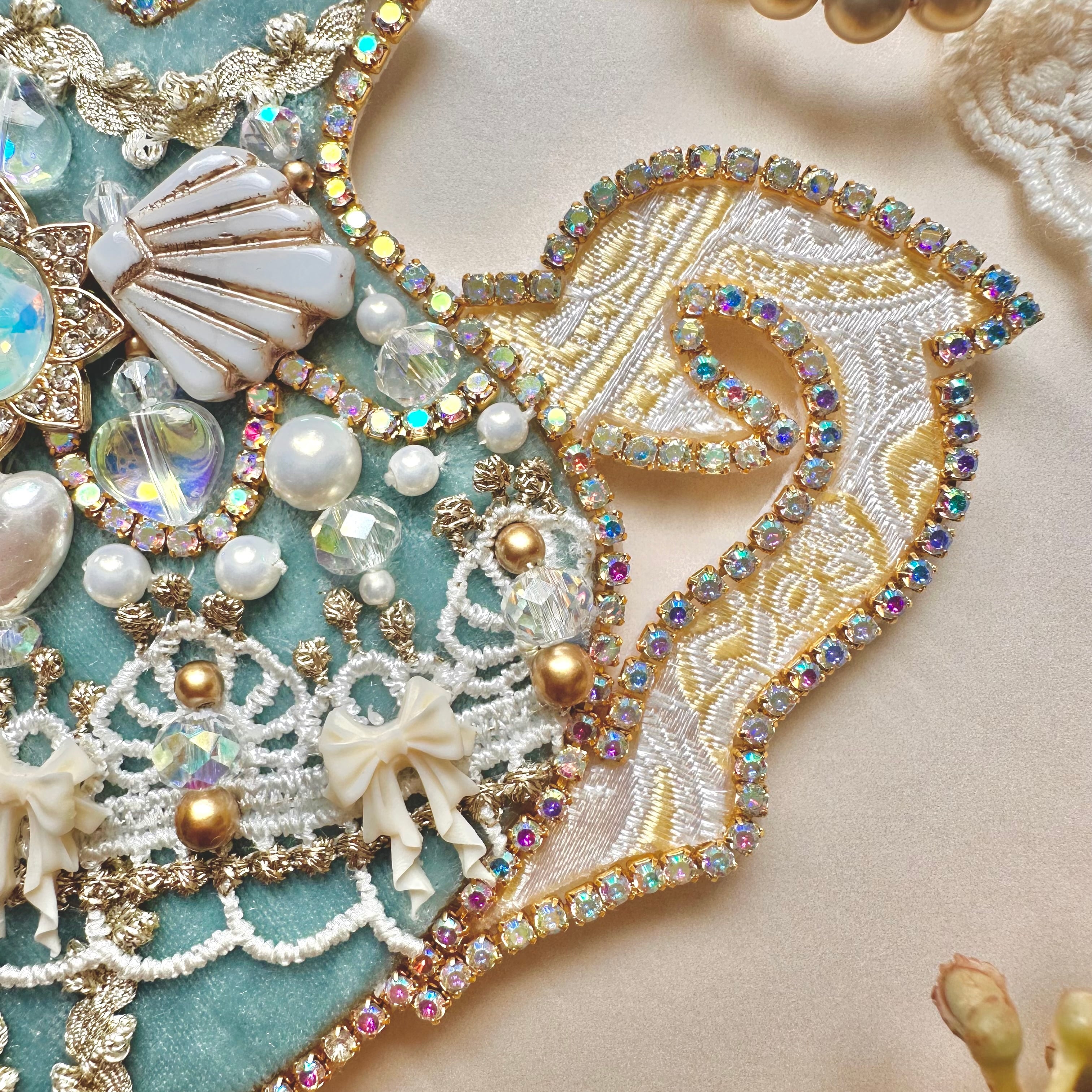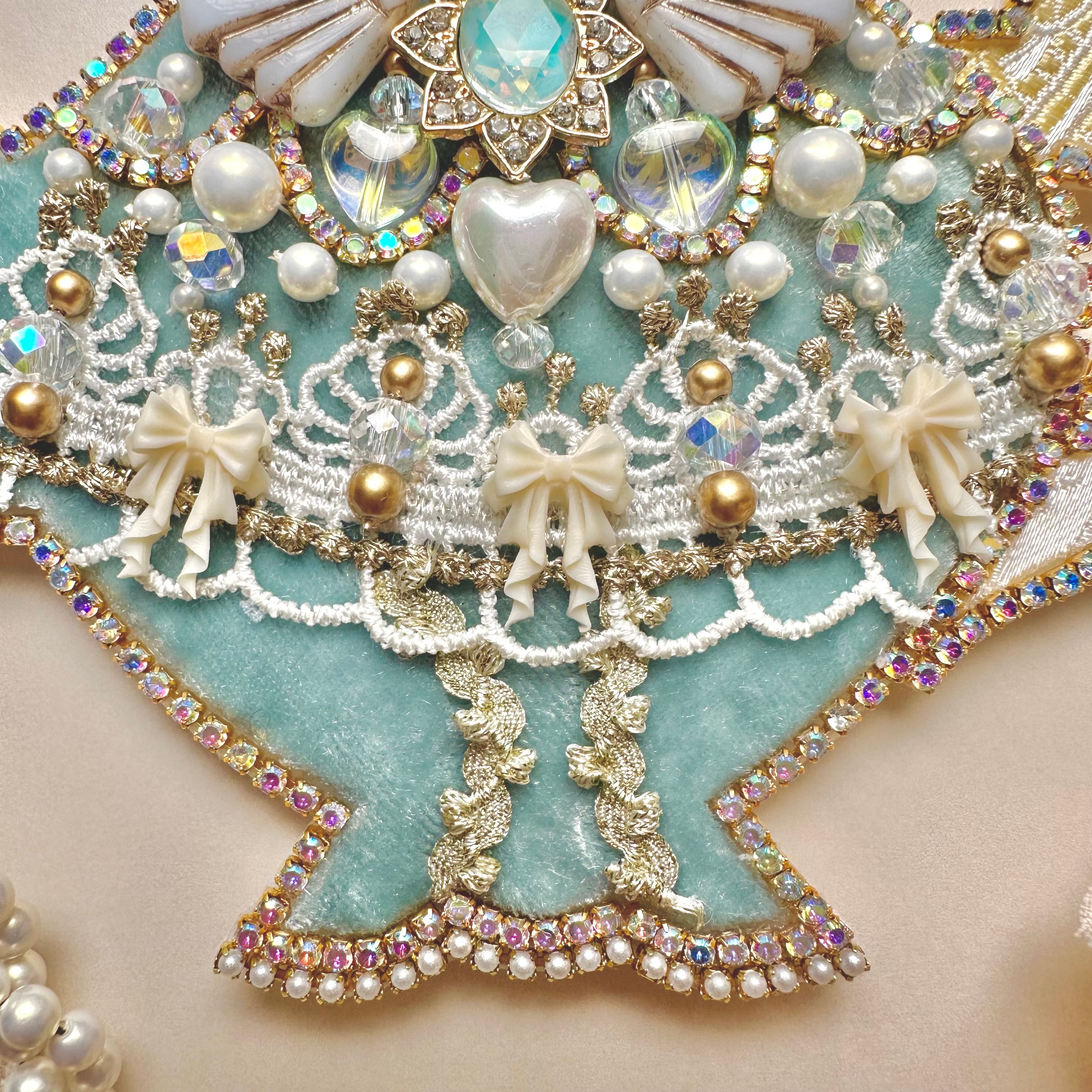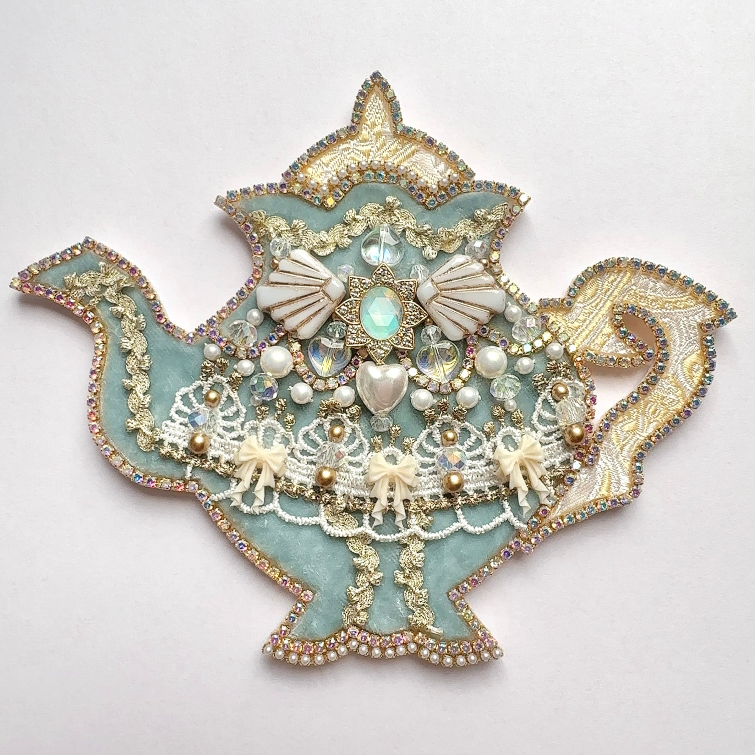 ビーズ刺繍のブローチ・ネックレス・バッグチャームの3wayです。
