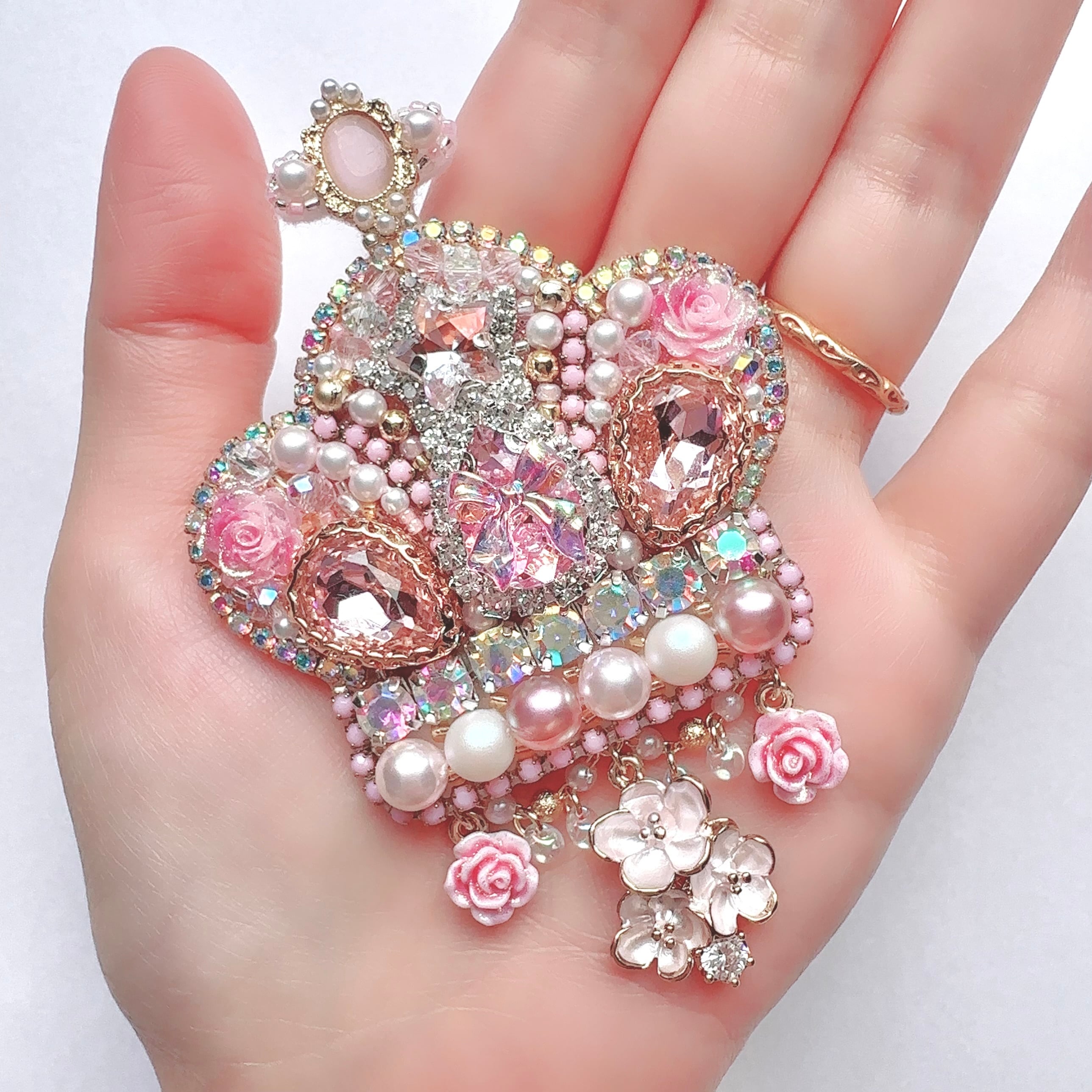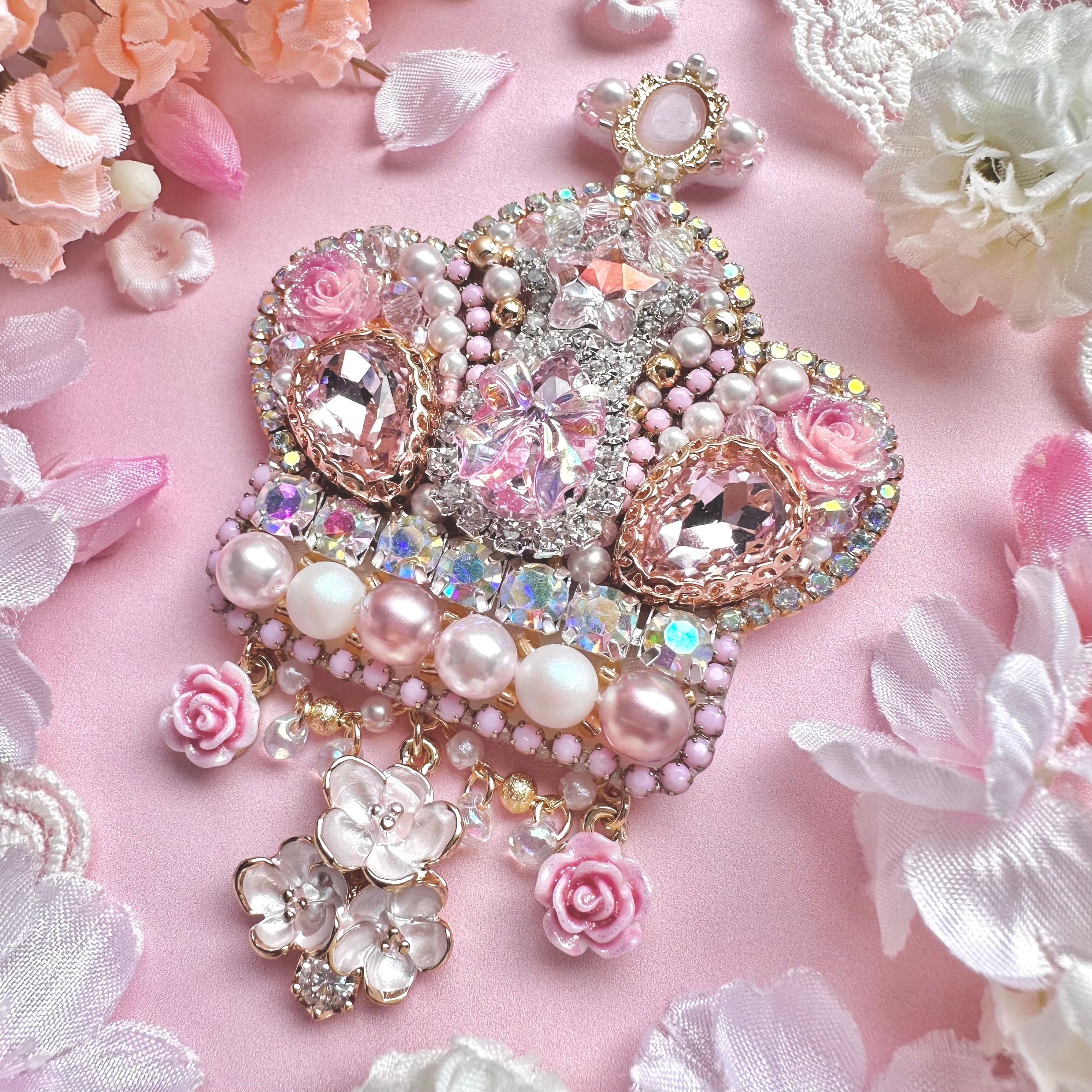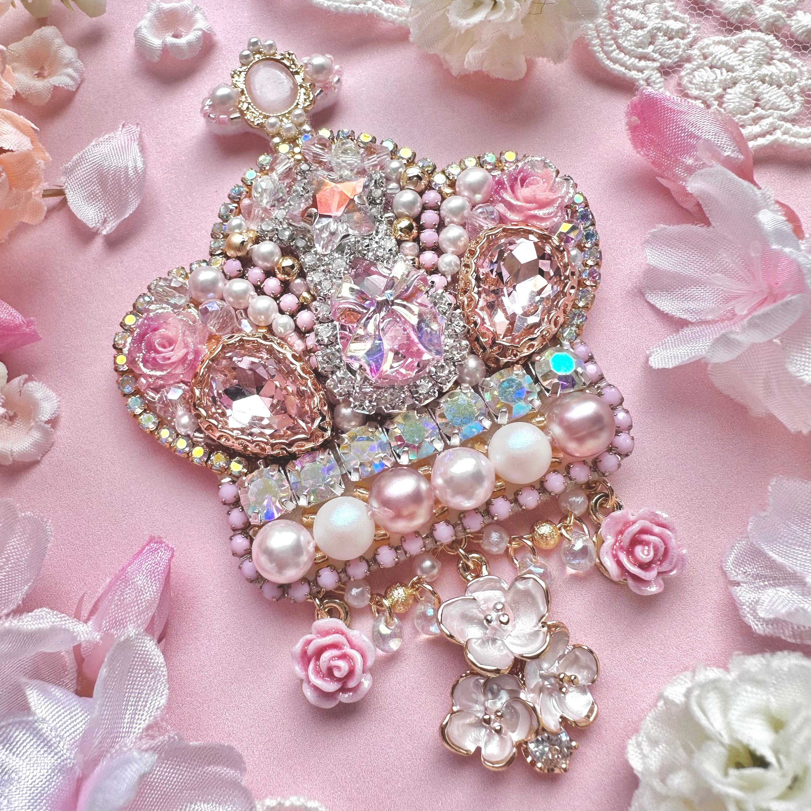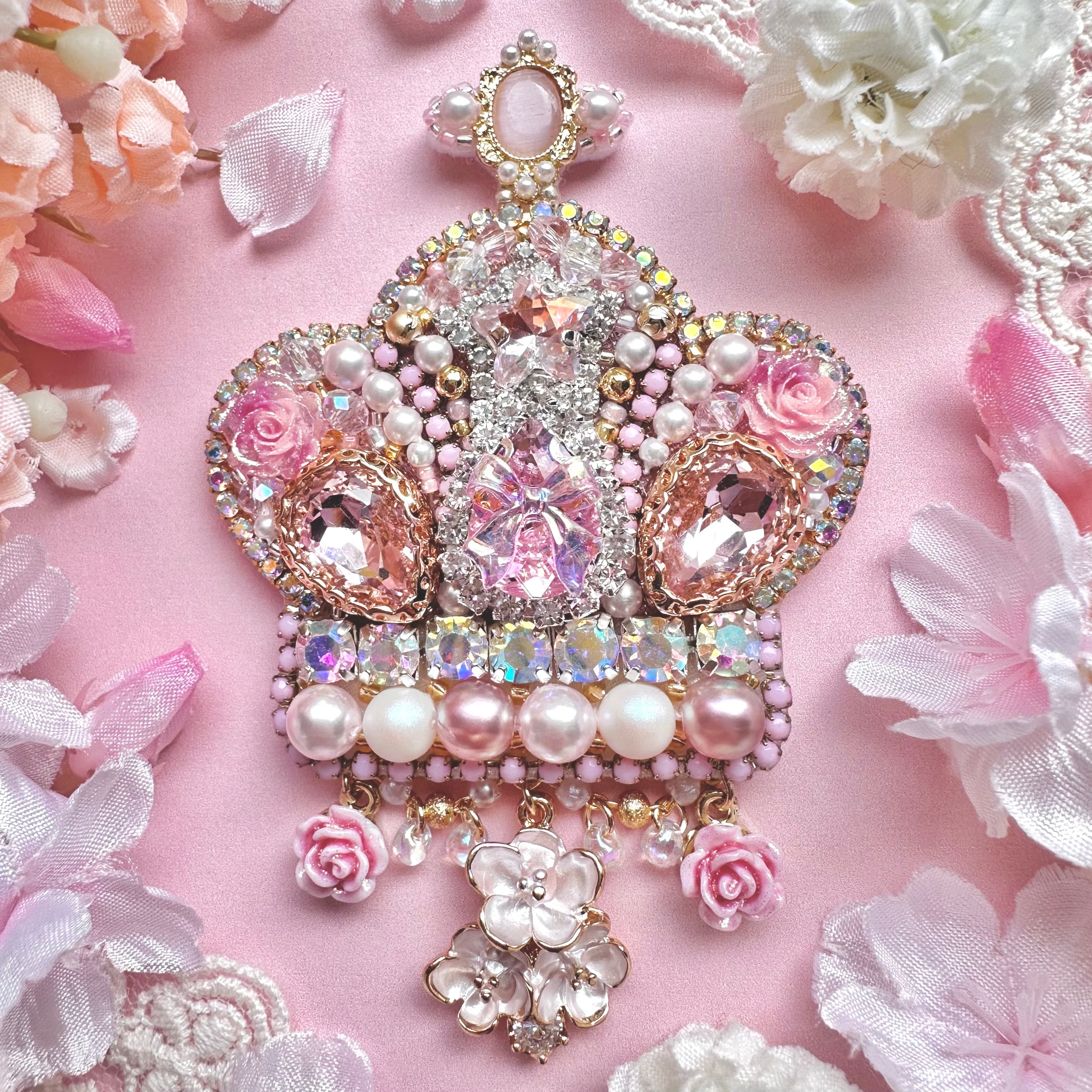 ビーズ刺繍のブローチ・ネックレス・バッグチャームの3wayです。