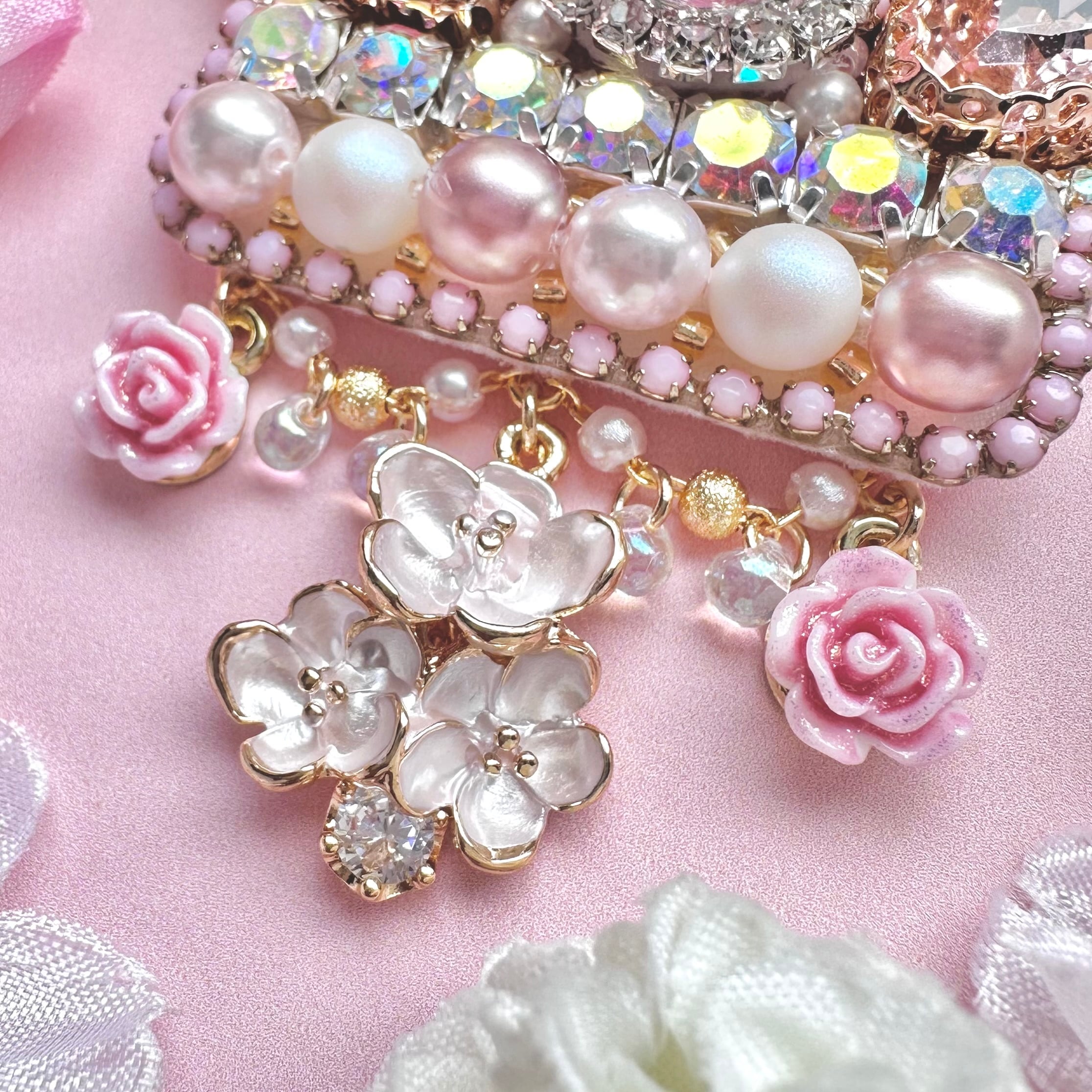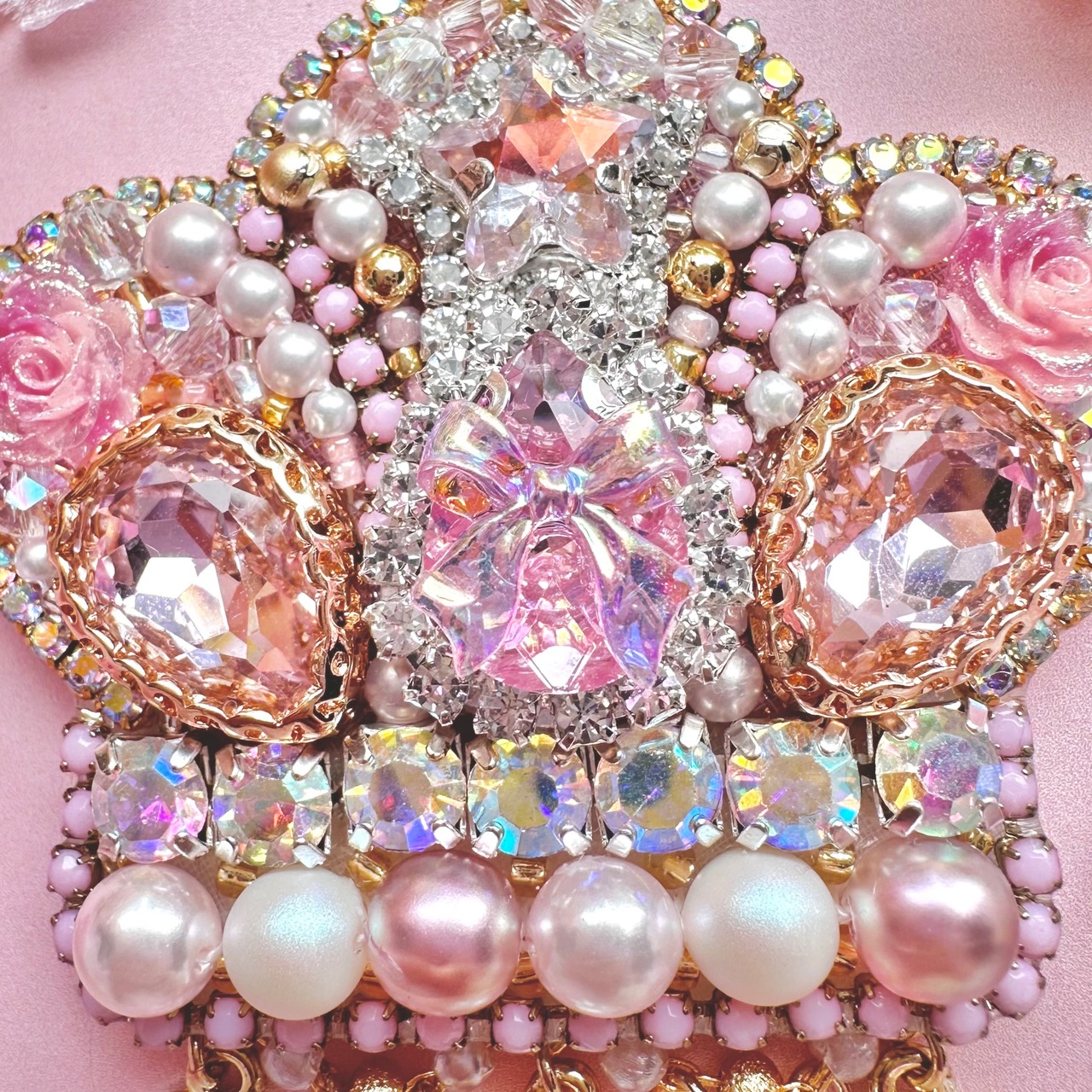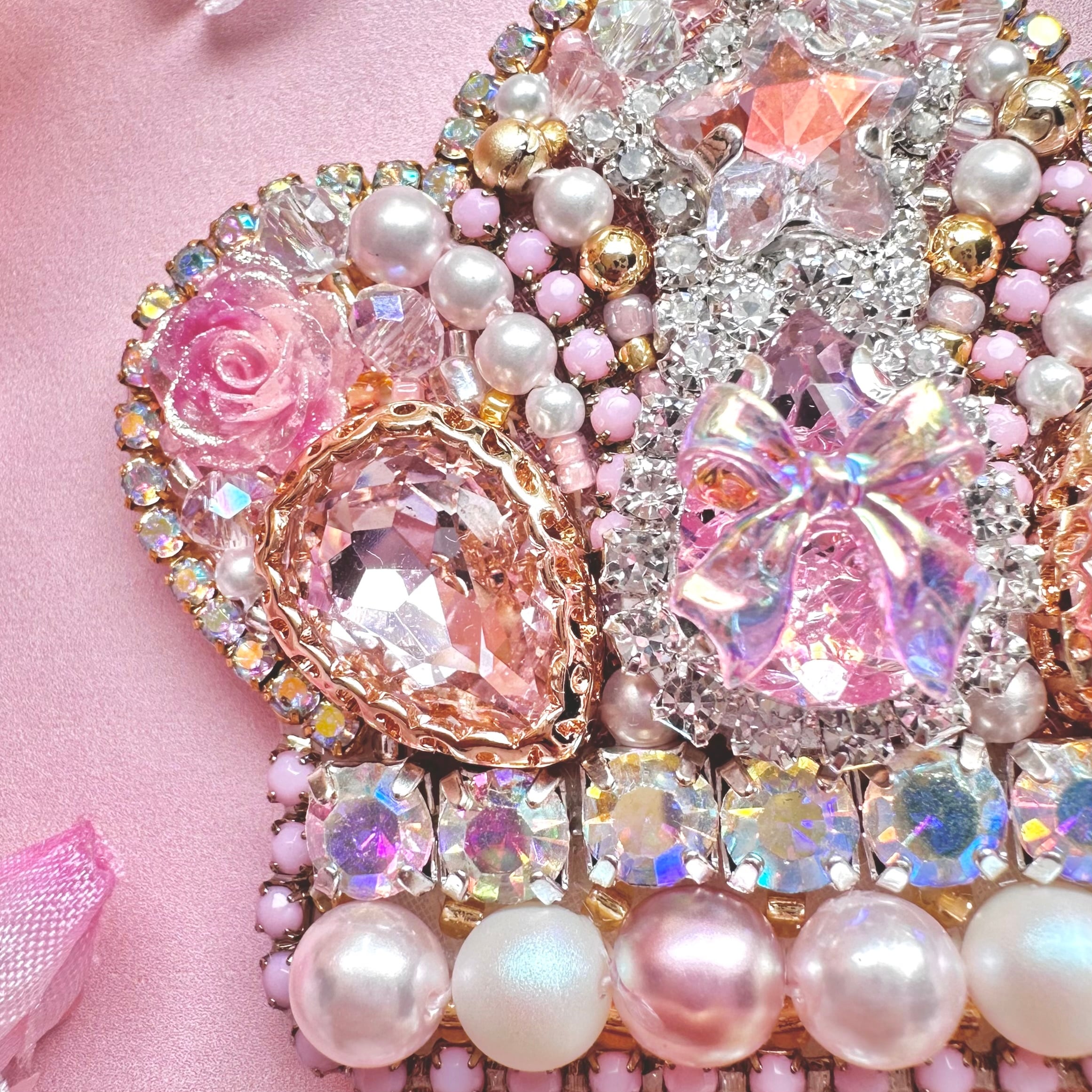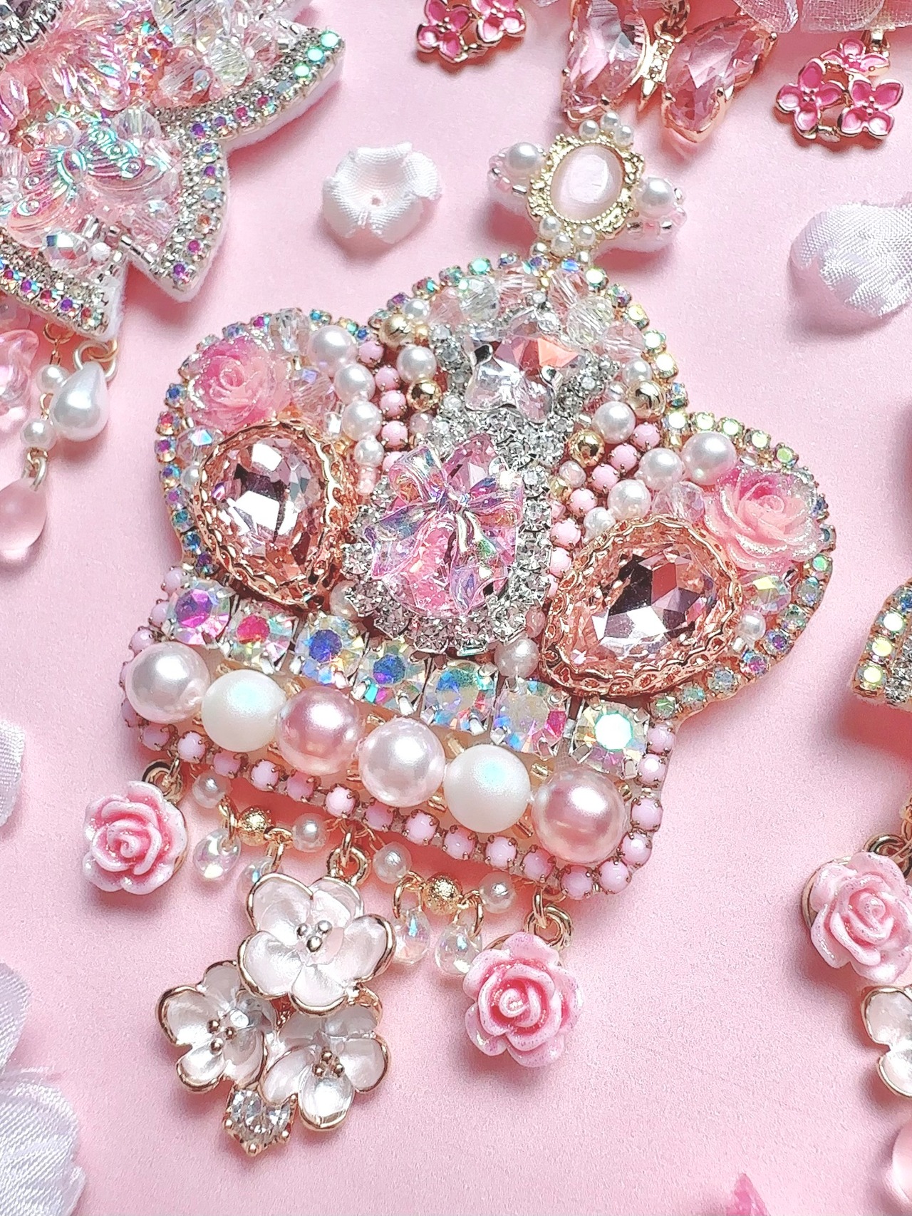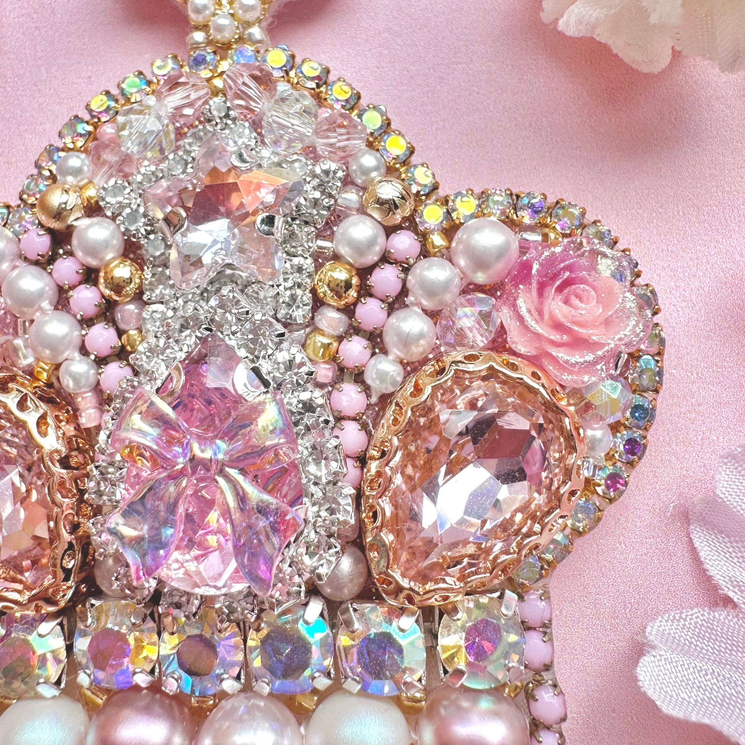 ビーズ刺繍のブローチ・ネックレス・バッグチャームの3wayです。