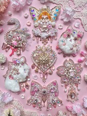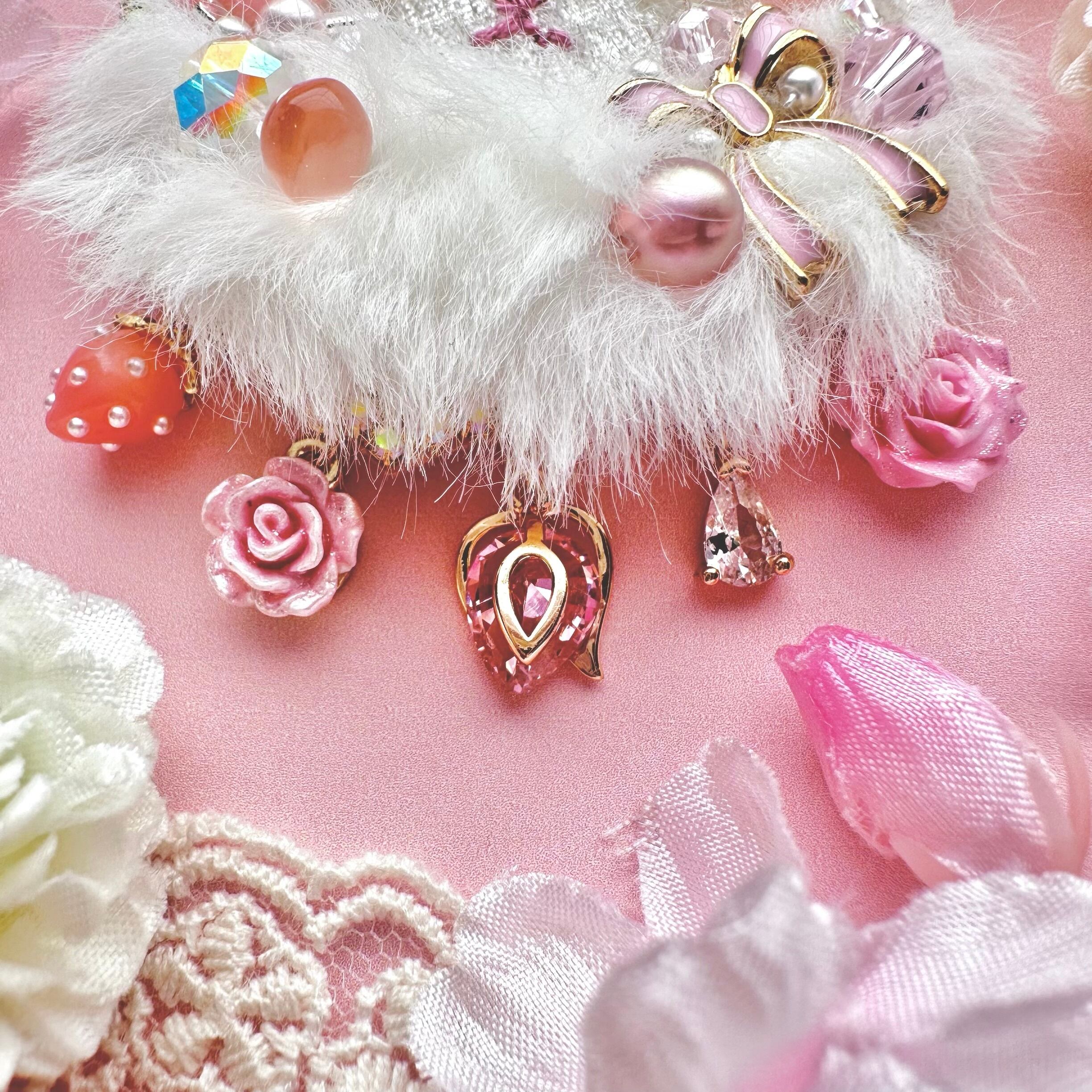 ビーズ刺繍のブローチ・ネックレス・バッグチャームの3wayです。