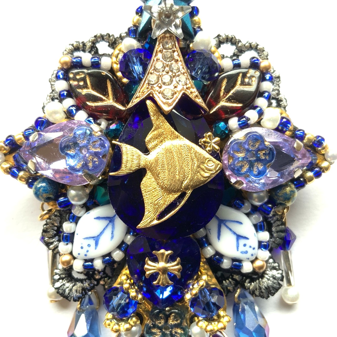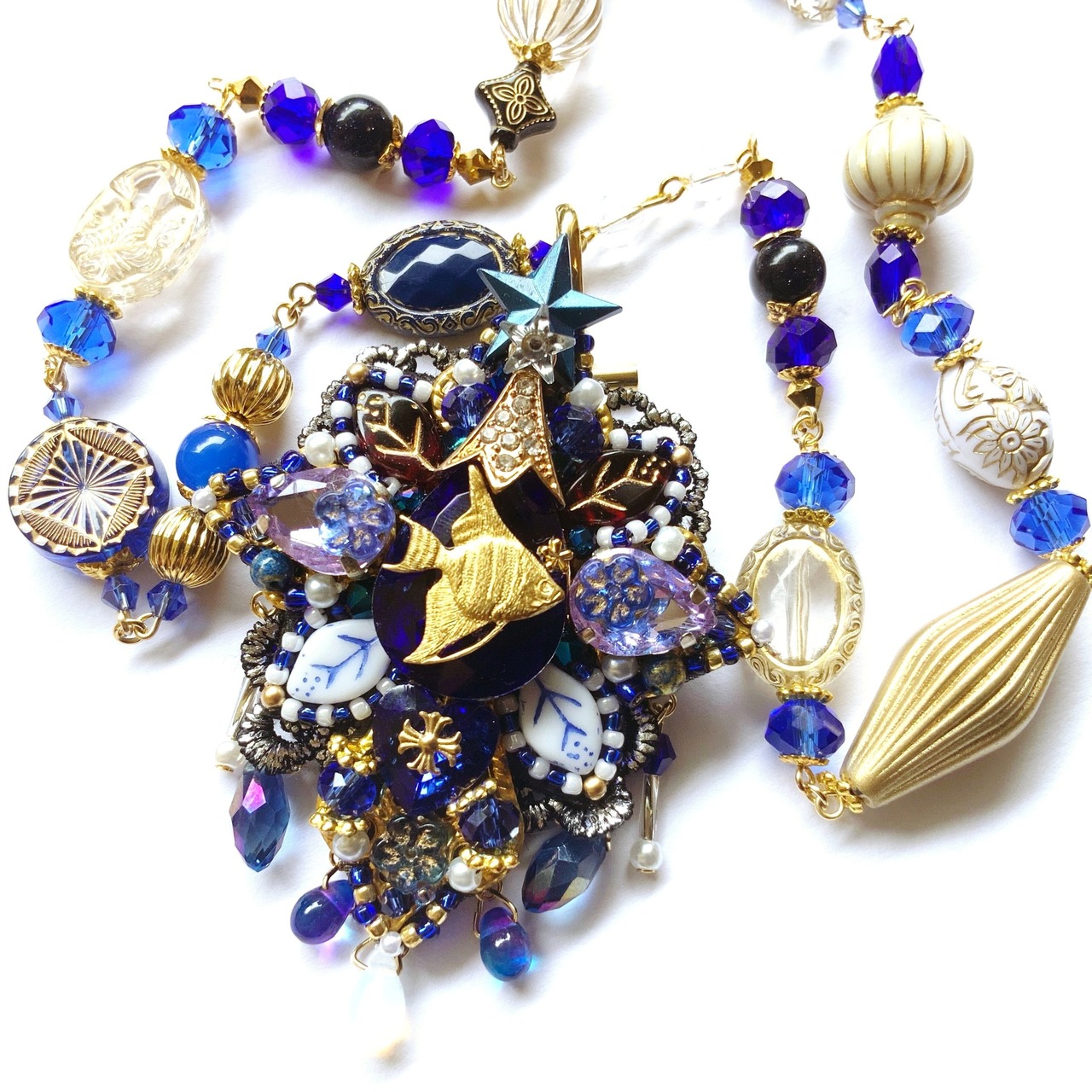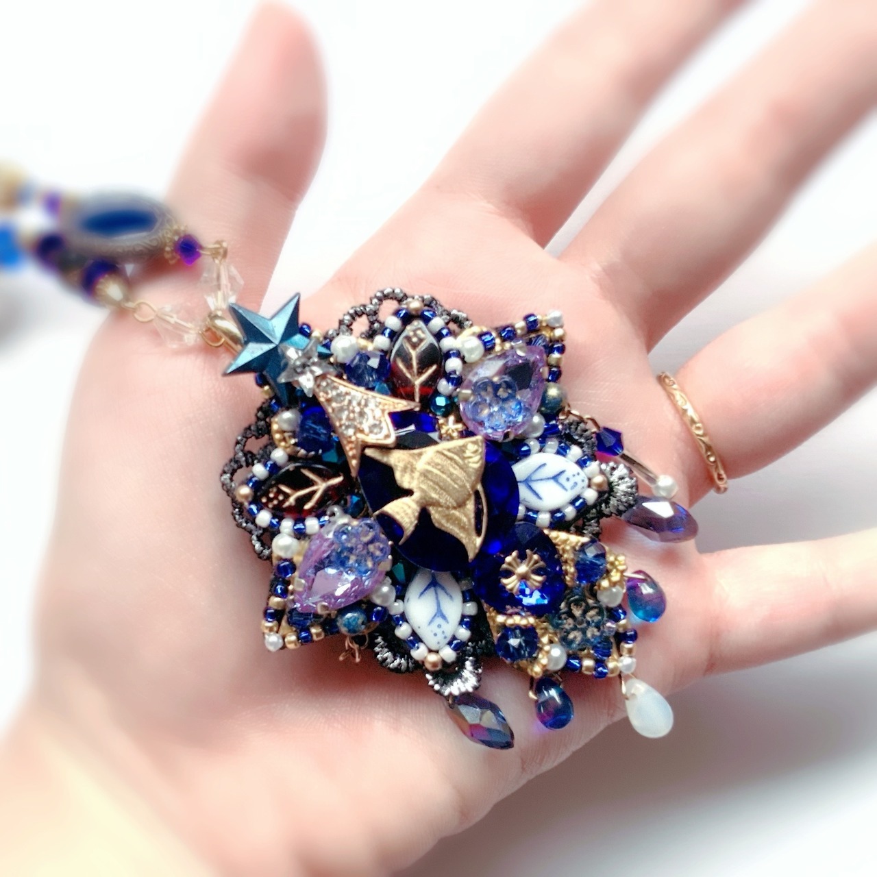 ビーズ刺繍のブローチ、ネックレスの2wayです。