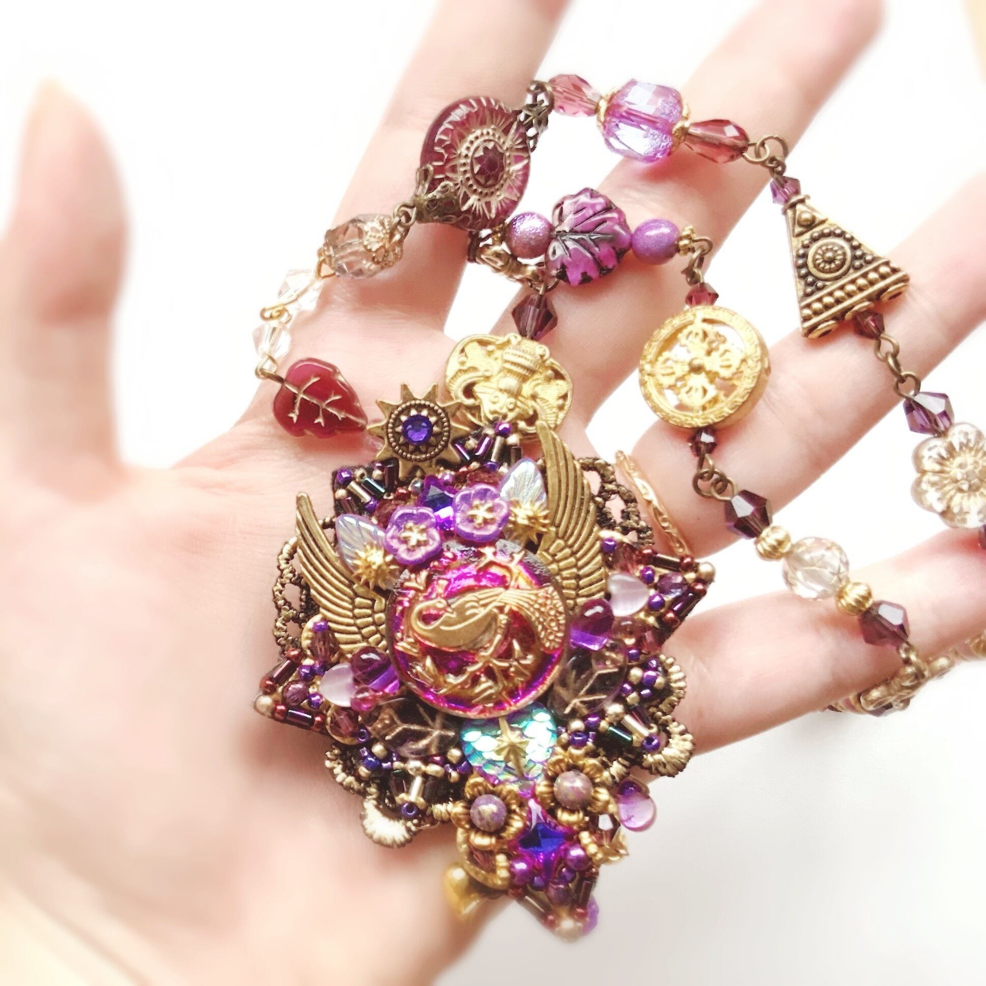 ビーズ刺繍のブローチ、ネックレスの2wayです。