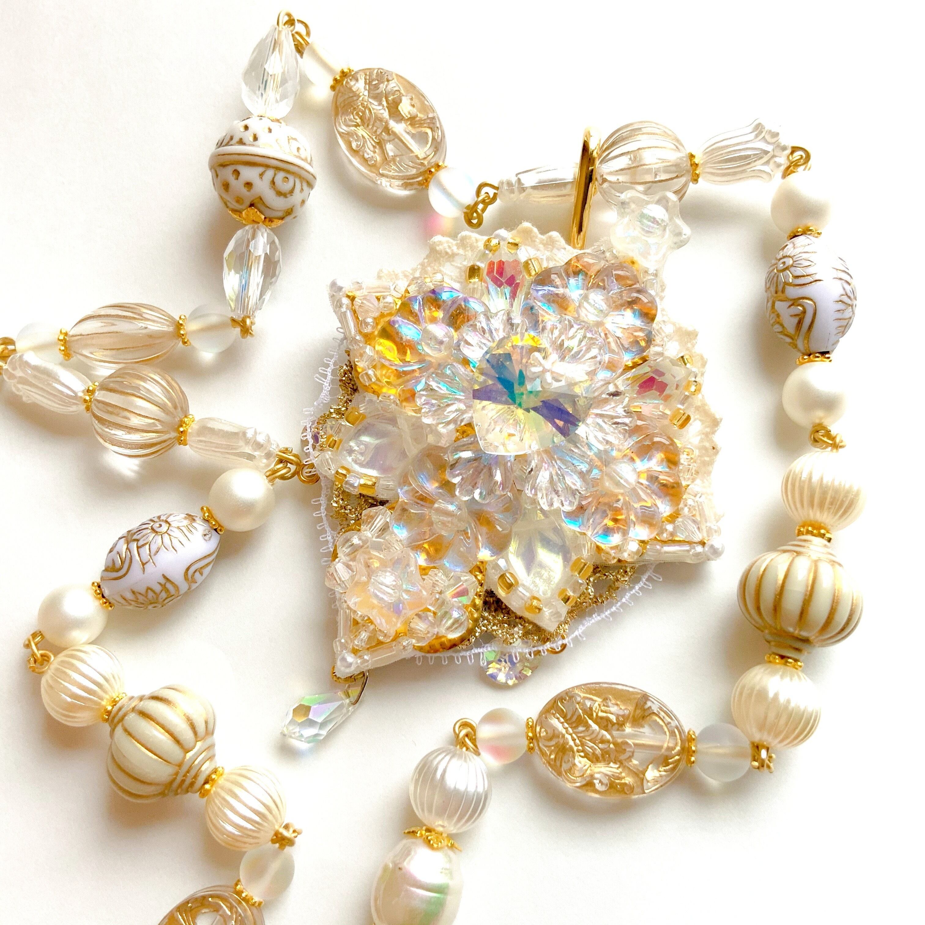 ビーズ刺繍のブローチ、ネックレスの2wayです。