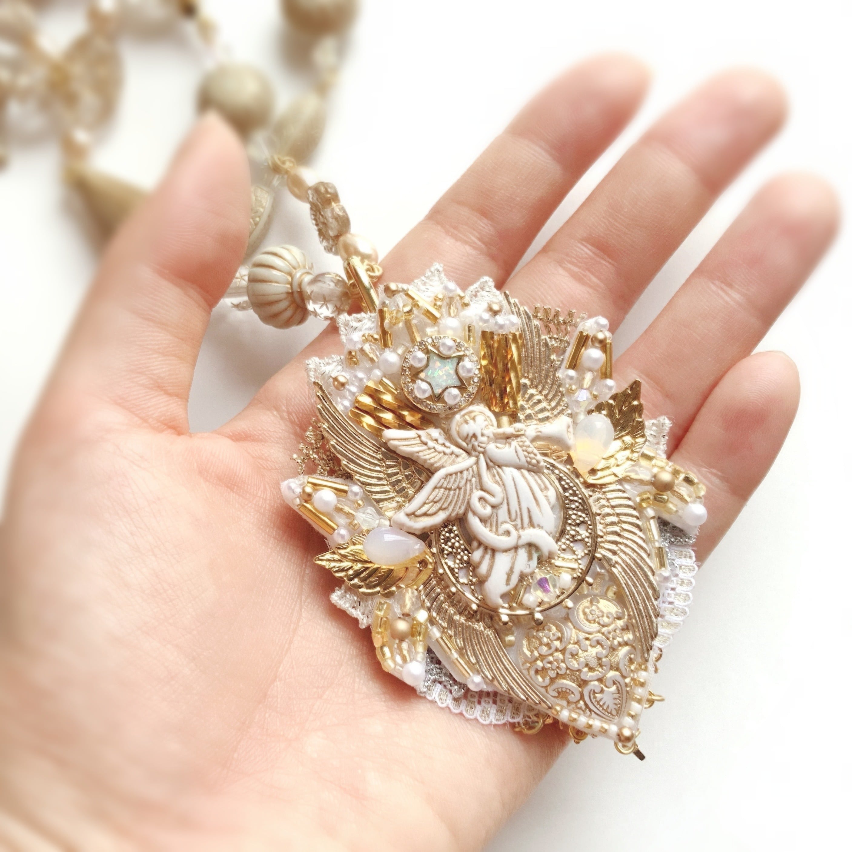 ビーズ刺繍のブローチ、ネックレスの2wayです。