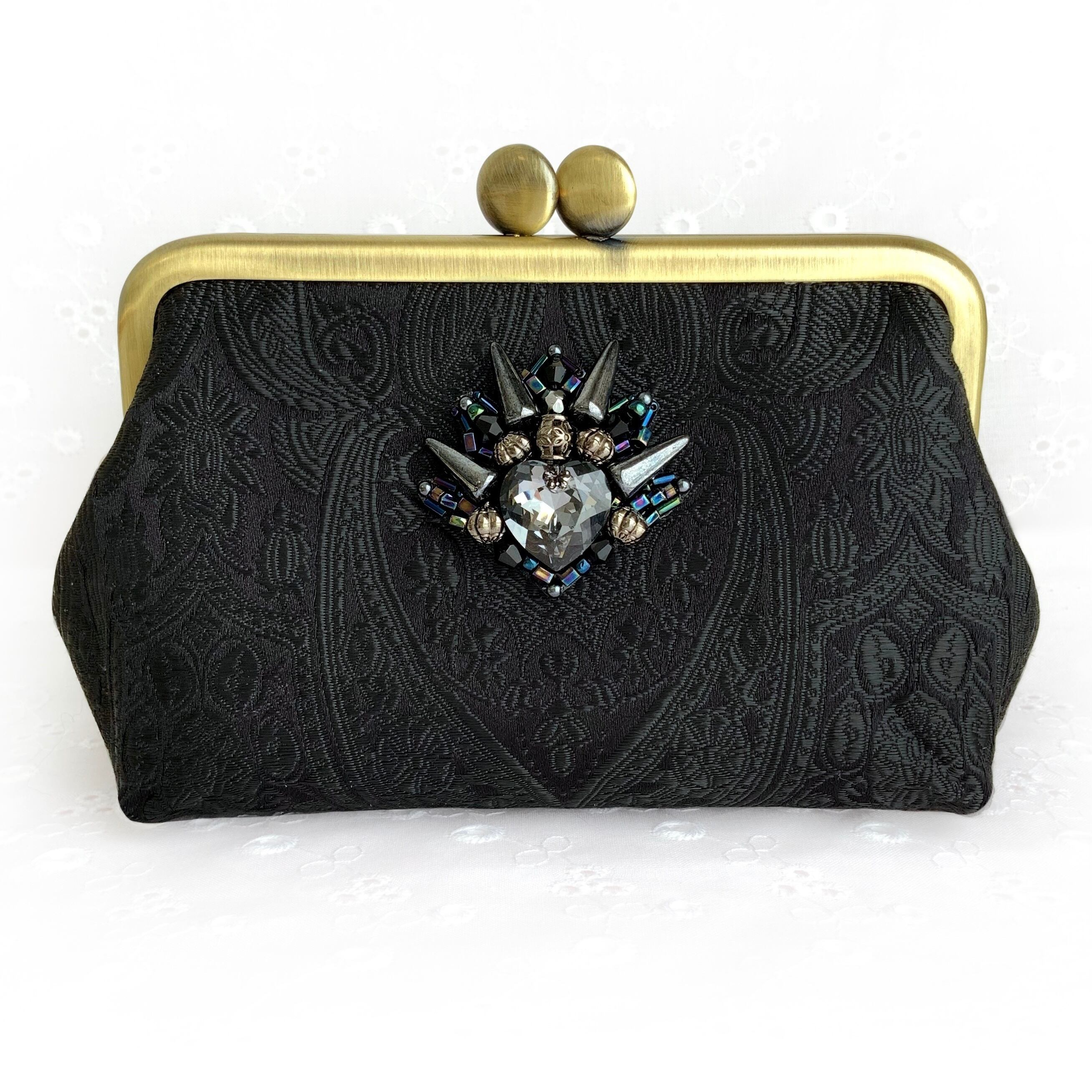 がま口ポーチです。ポーチ真ん中はビーズ刺繍になっています。