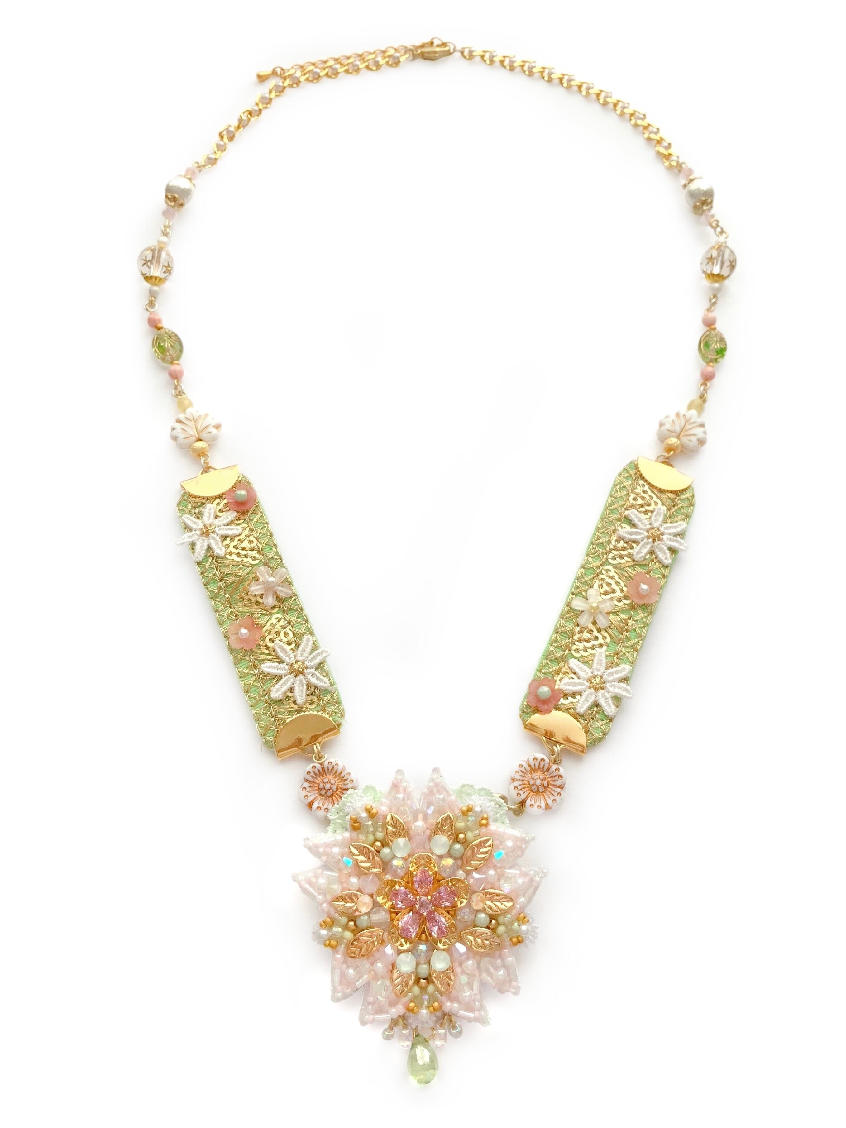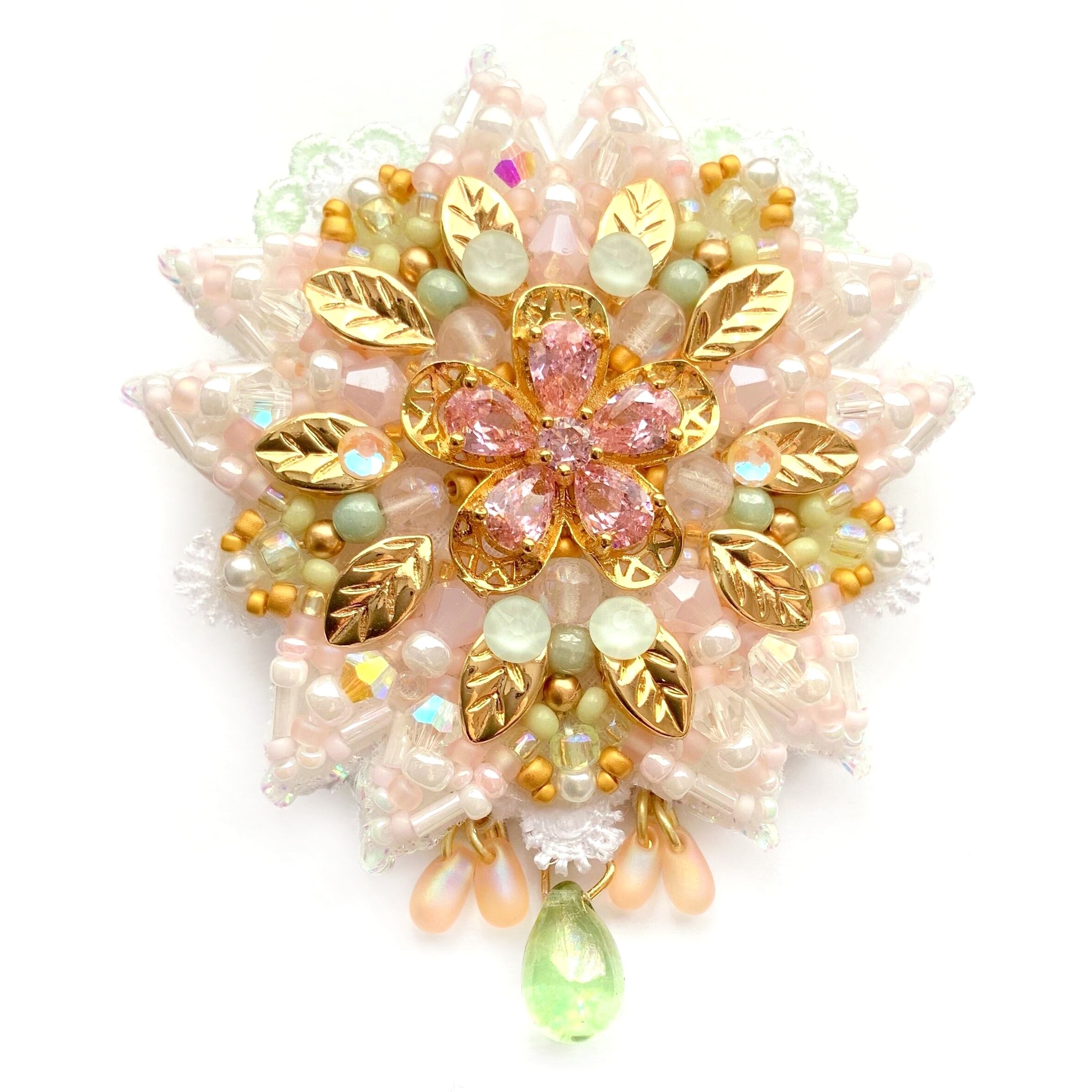 ビーズ刺繍のブローチ・ネックレス・バッグチャームの3wayです。