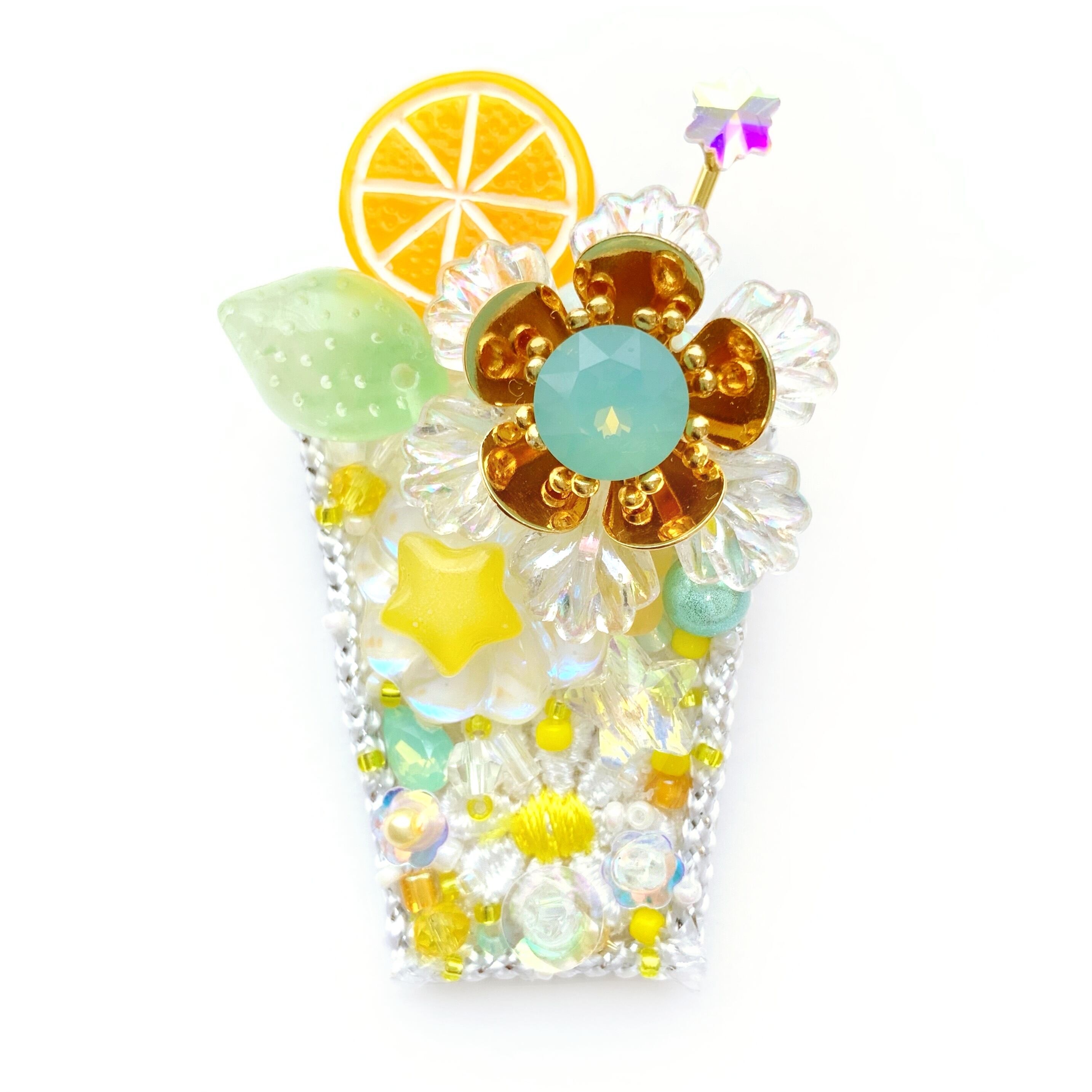 ビーズ刺繍のブローチ・ネックレス・バッグチャームの3wayです。