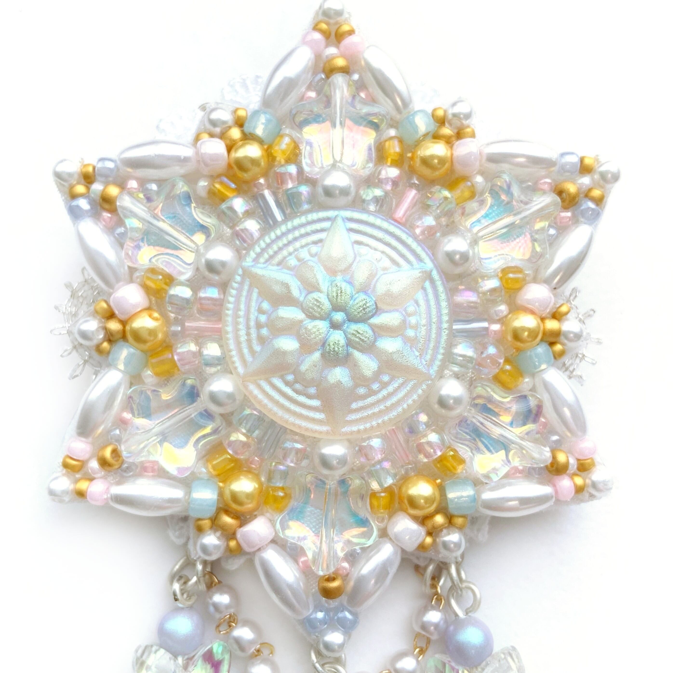 ビーズ刺繍のブローチ・ネックレス・バッグチャームの3wayです。