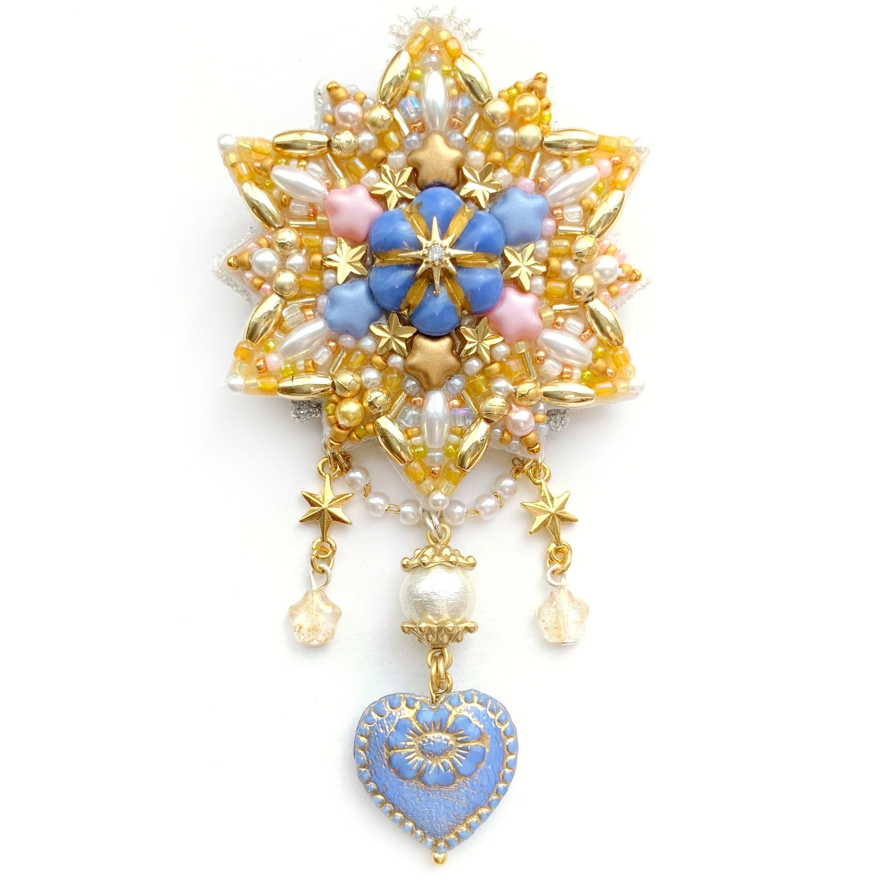 ビーズ刺繍のブローチ・ネックレス・バッグチャームの3wayです。