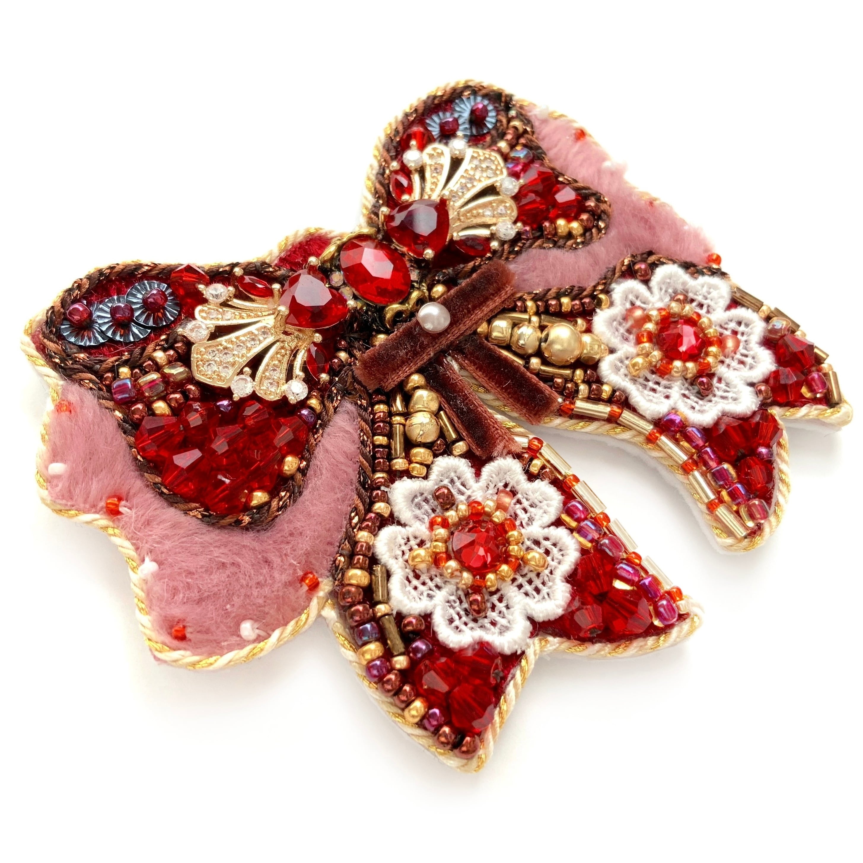 ビーズ刺繍のブローチ・ネックレス・バッグチャームの3wayです。