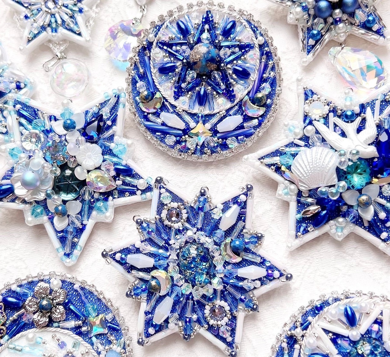 ビーズ刺繍のブローチ・ネックレス・バッグチャームの3wayです。
