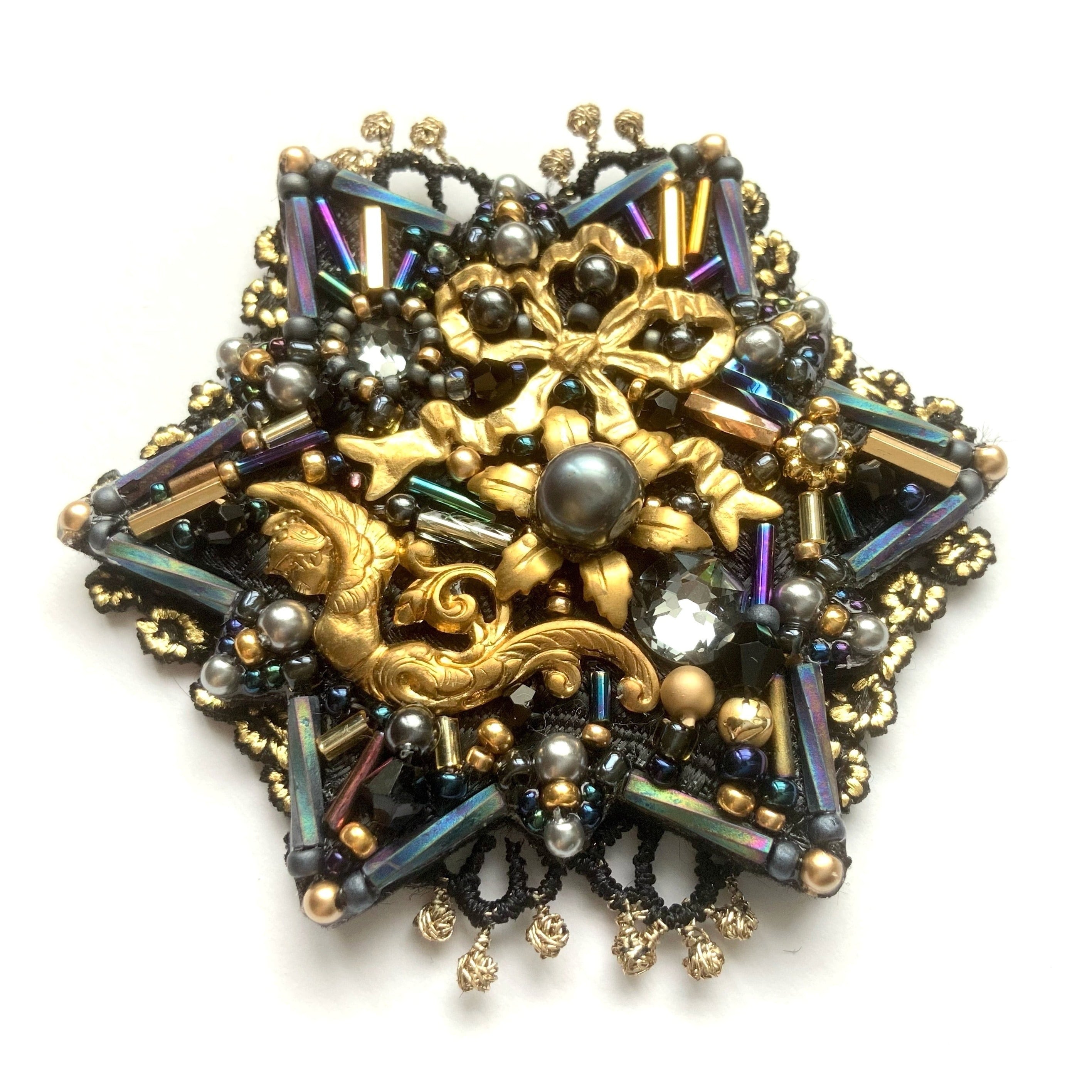 ビーズ刺繍のブローチ・ネックレス・バッグチャームの3wayです。