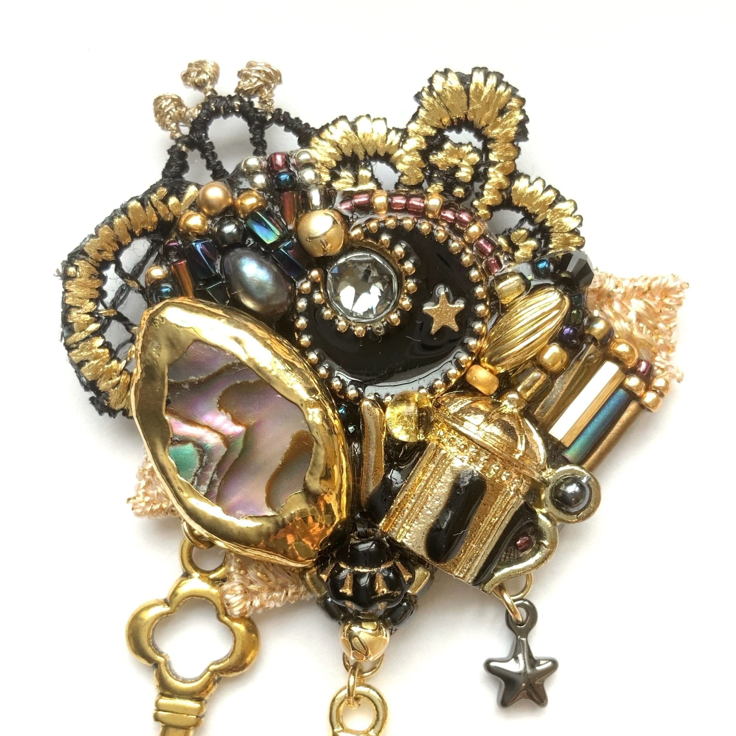 ビーズ刺繍のブローチ・ネックレス・バッグチャームの3wayです。