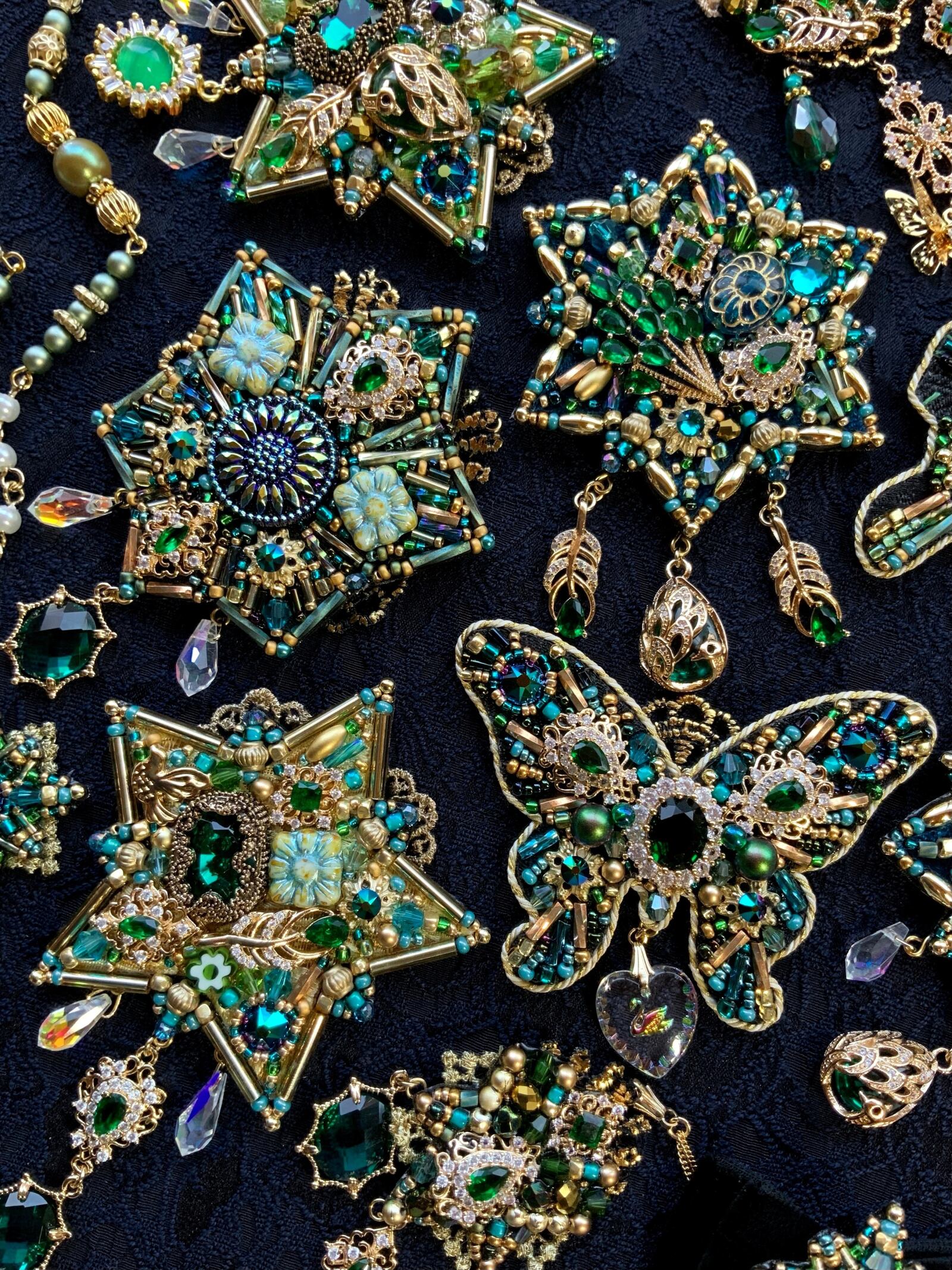 ビーズ刺繍のブローチ・ネックレス・バッグチャームの3wayです。
