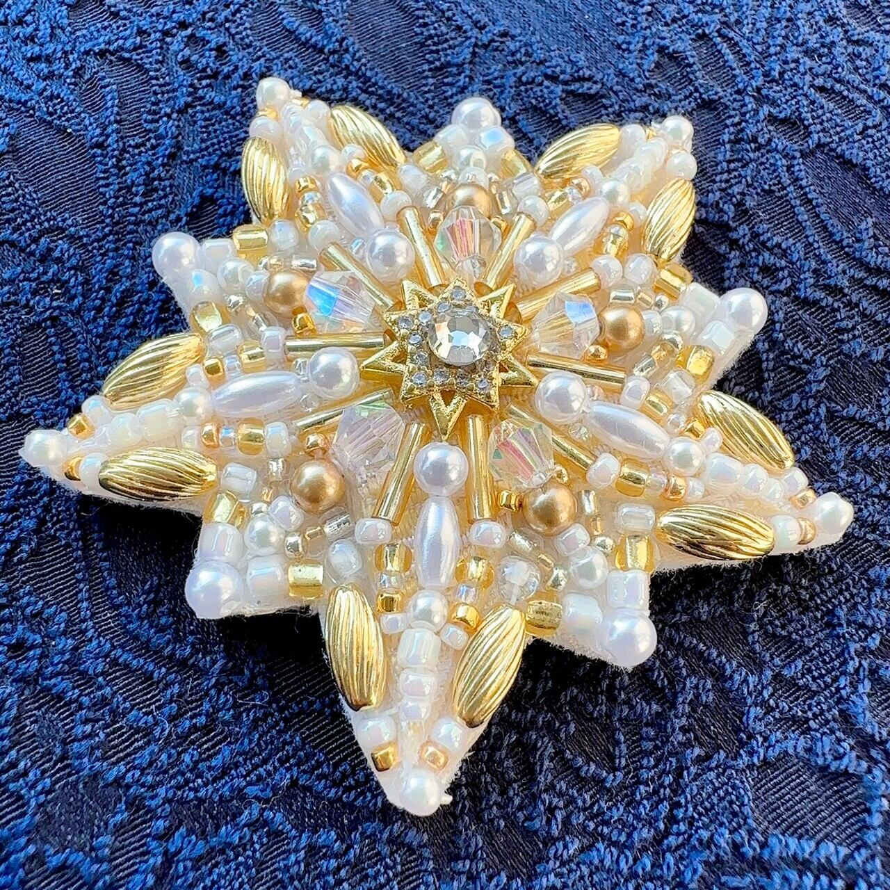 ビーズ刺繍のブローチ・ネックレス・バッグチャームの3wayです。