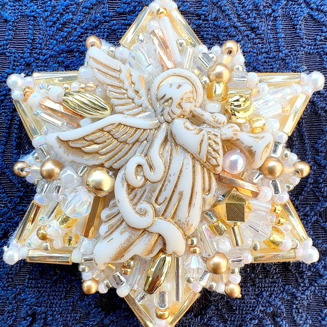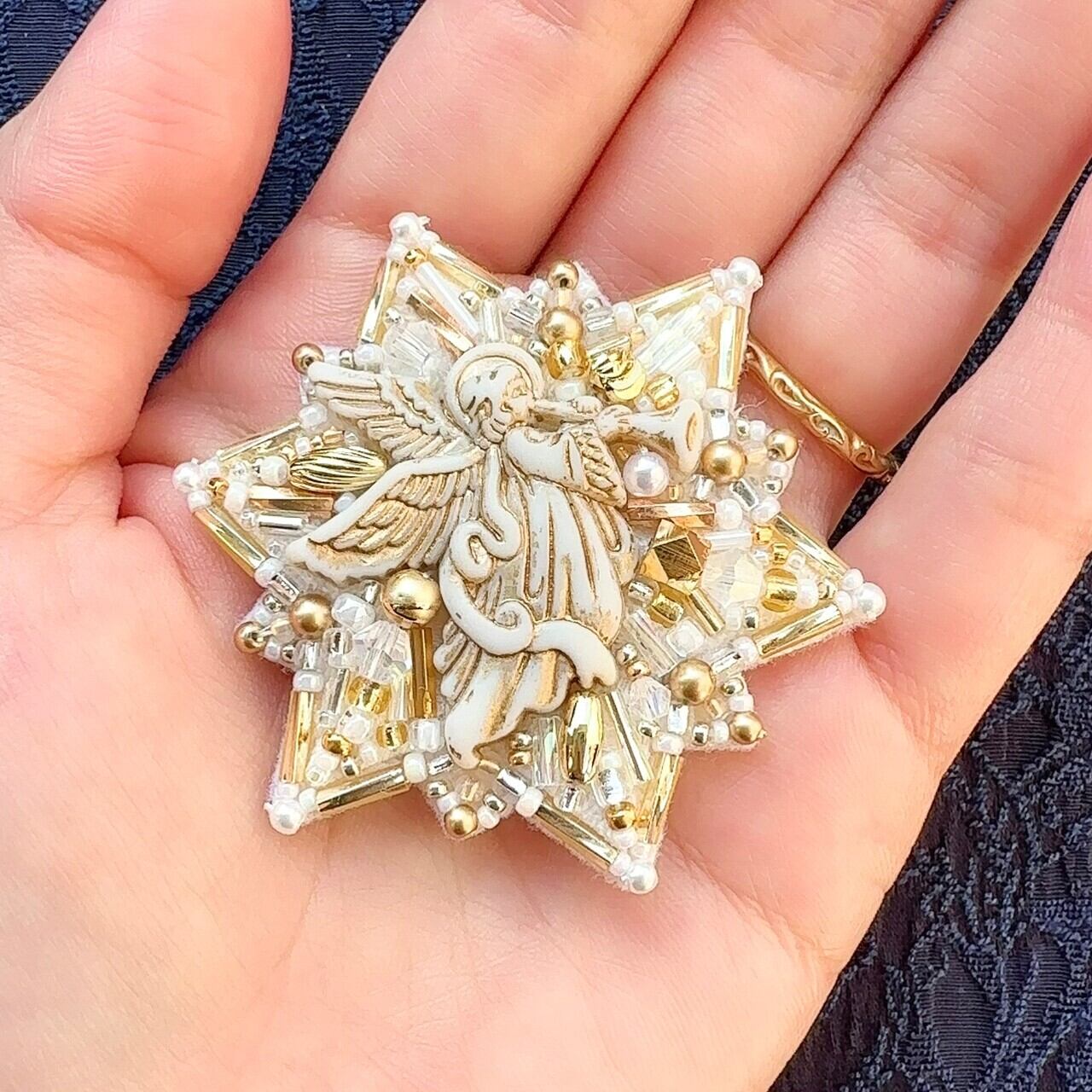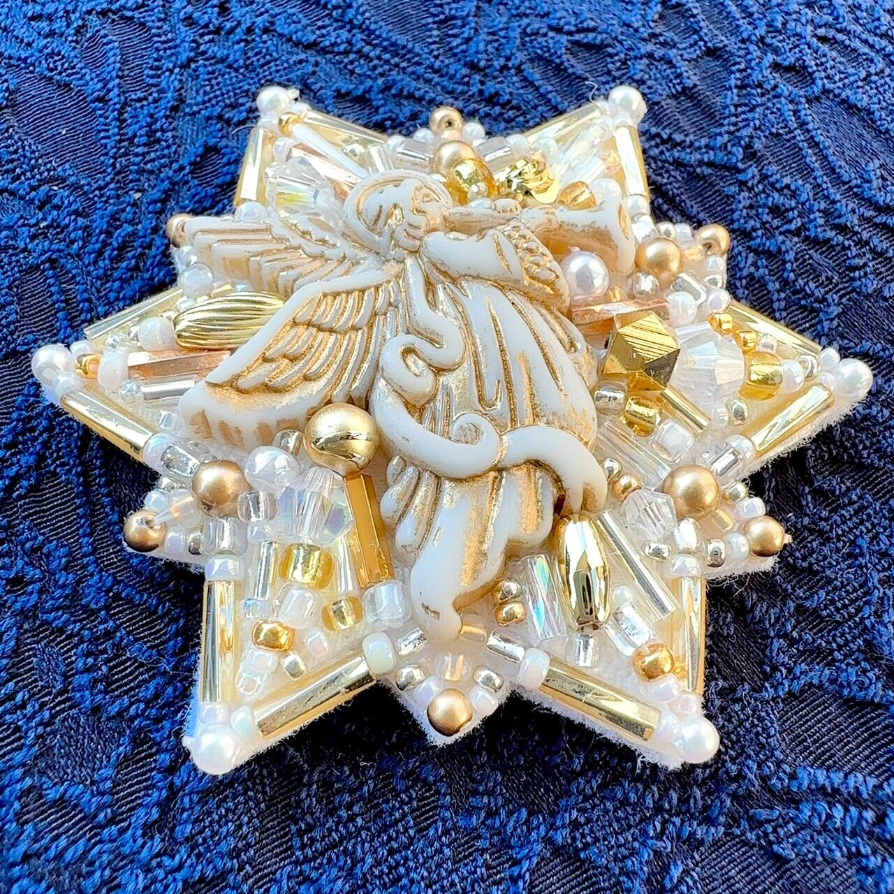 ビーズ刺繍のブローチ・ネックレス・バッグチャームの3wayです。