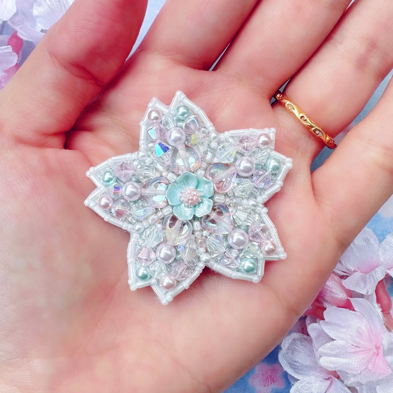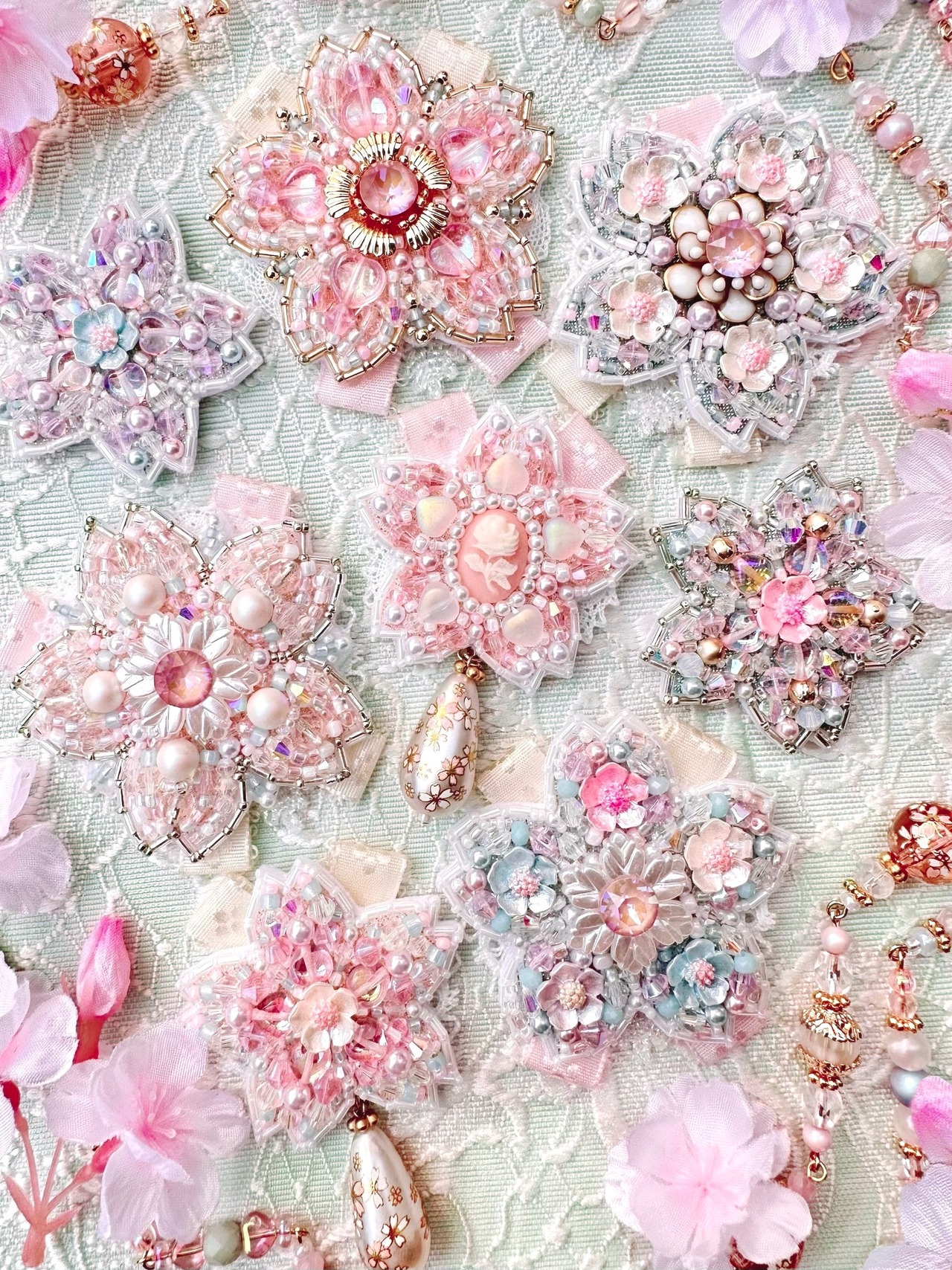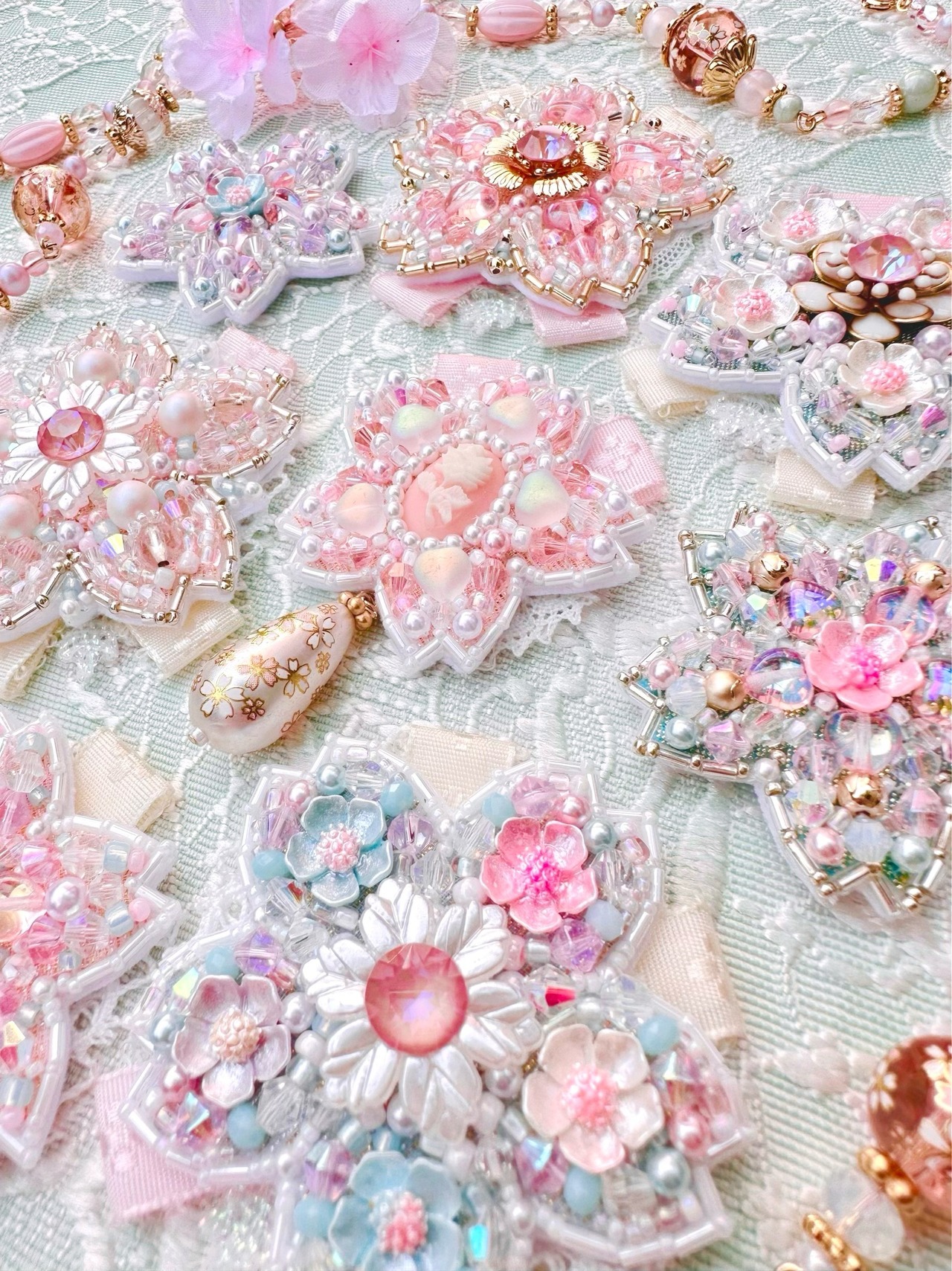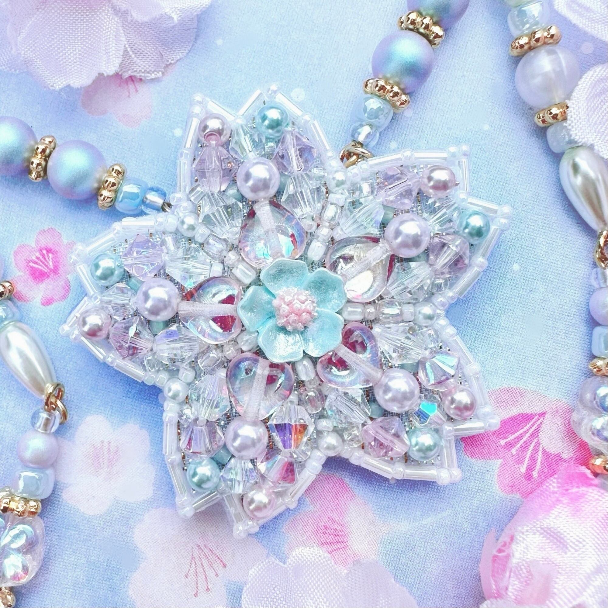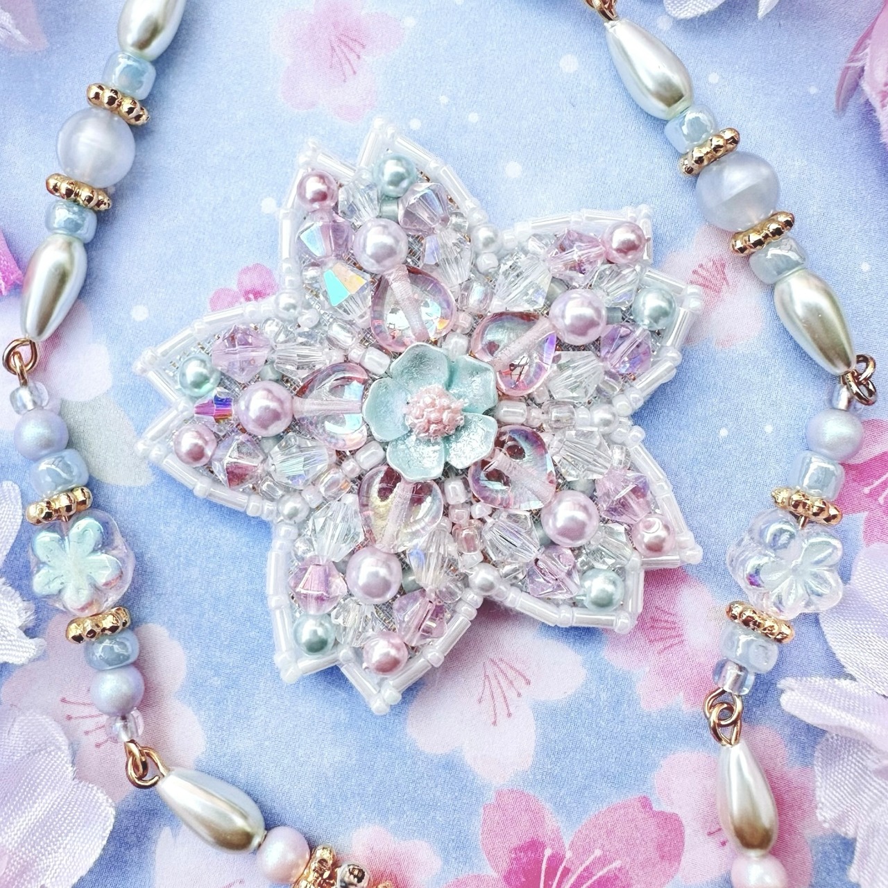 ビーズ刺繍のブローチ・ネックレス・バッグチャームの3wayです。