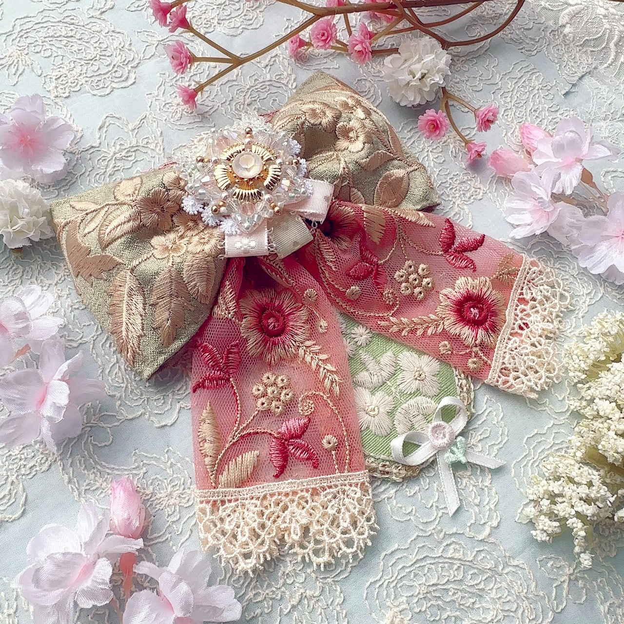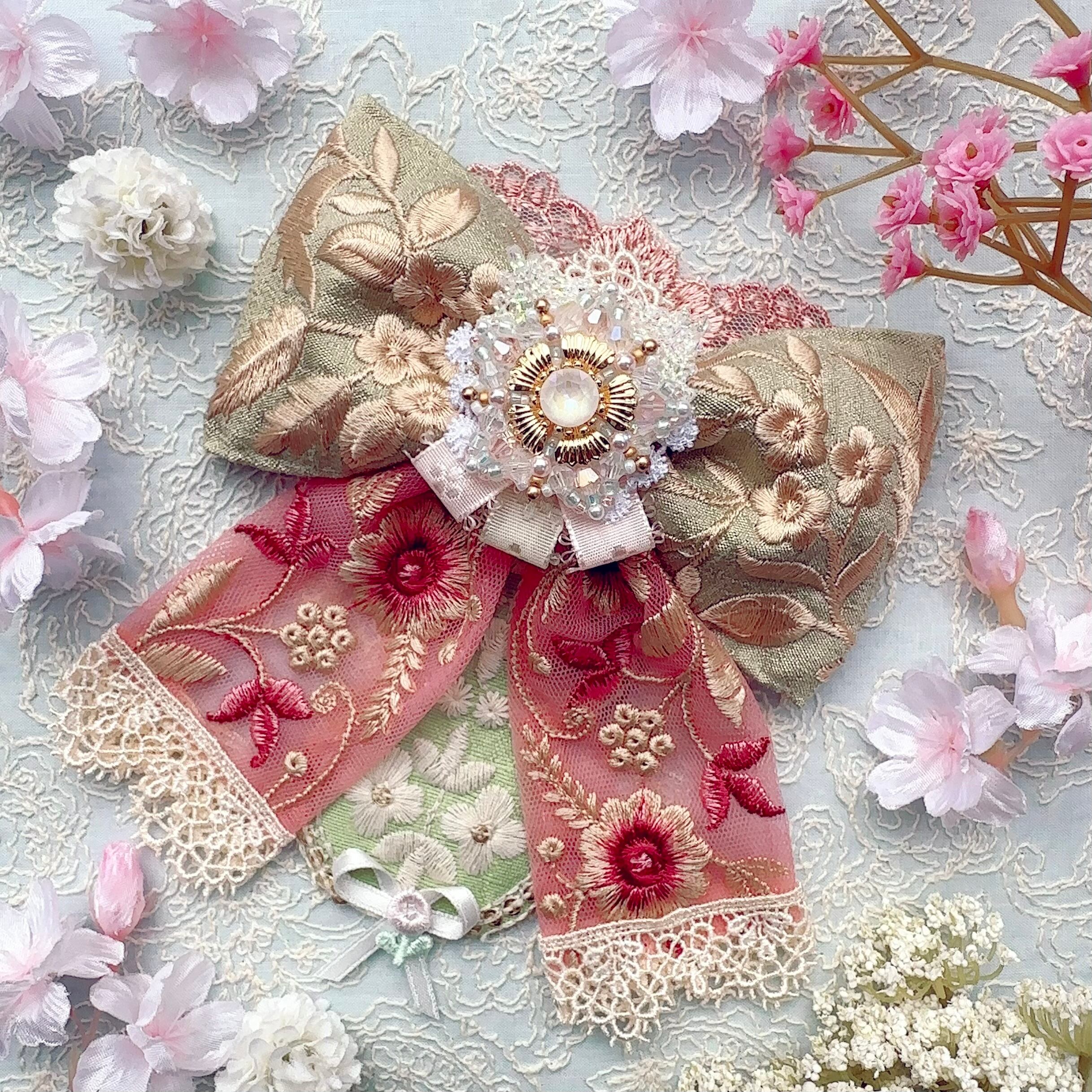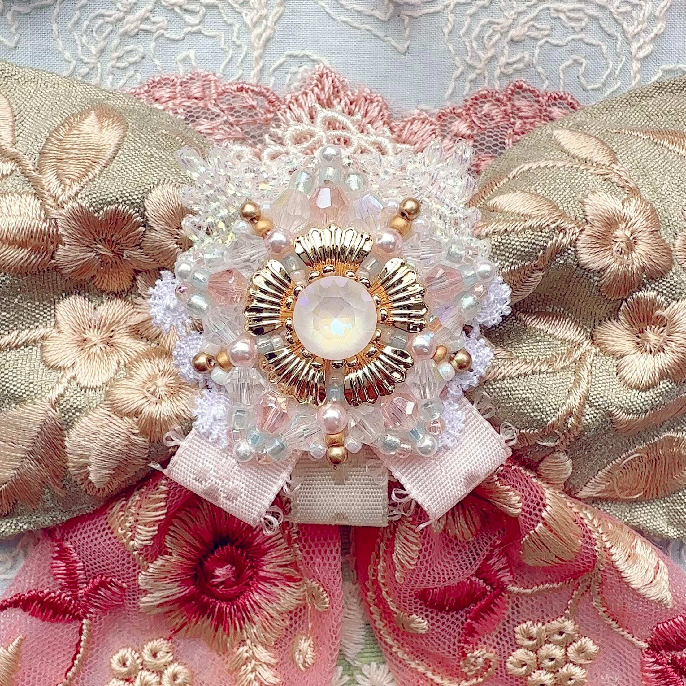 ビーズ刺繍と刺繍リボンの