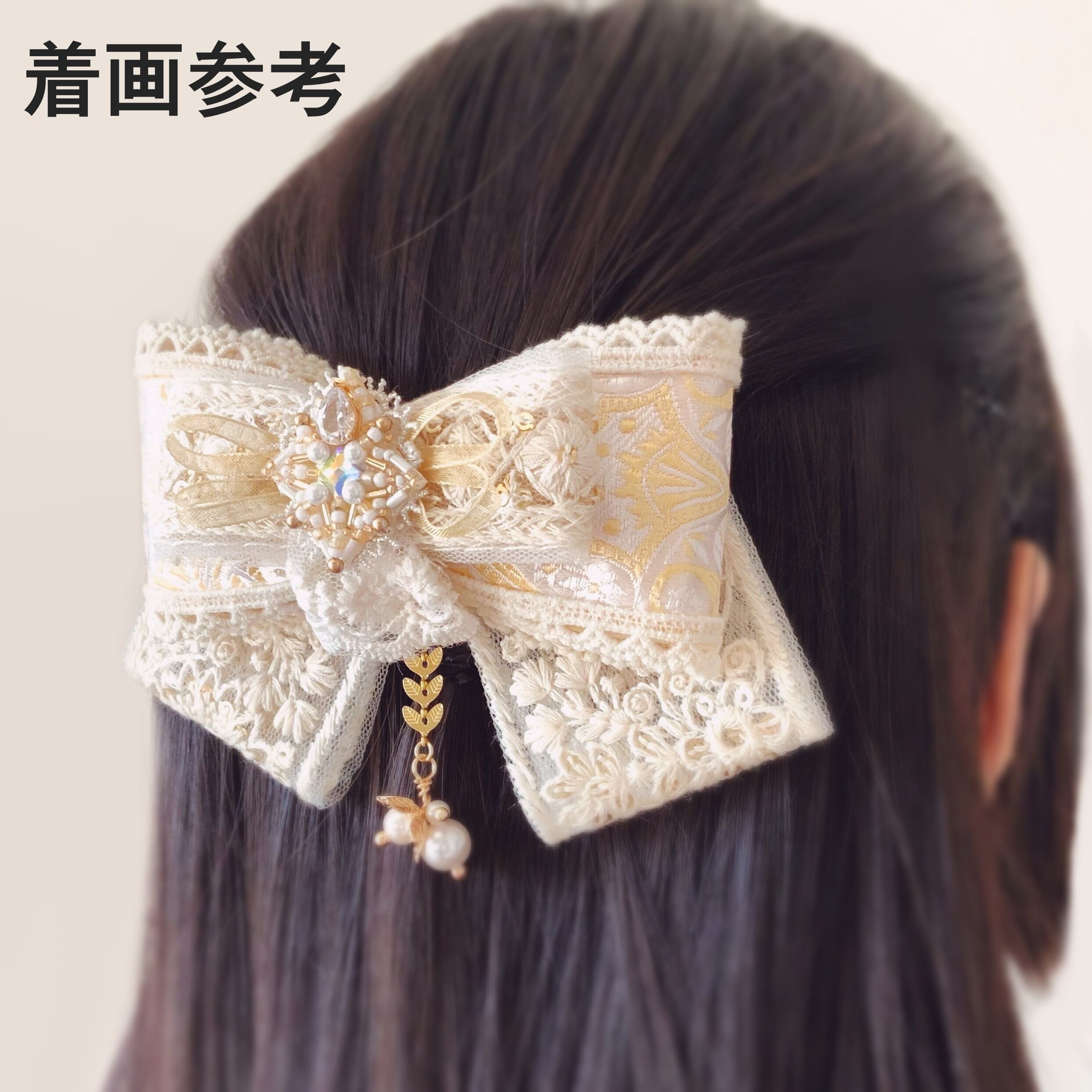 ※バレッタの金具が見えてしまわないように、正面から見て大幅に影響がないようにレースを使用する場合があります。