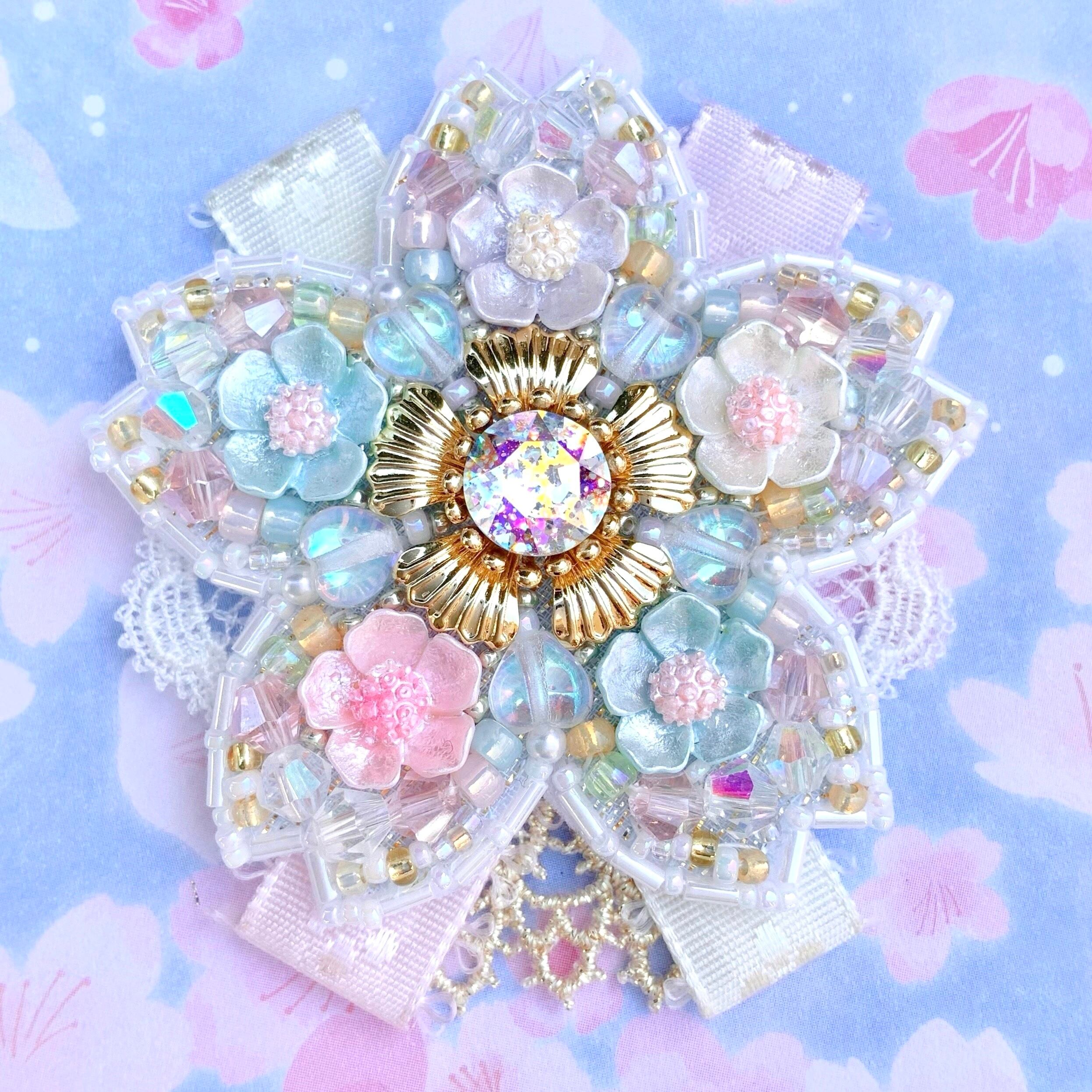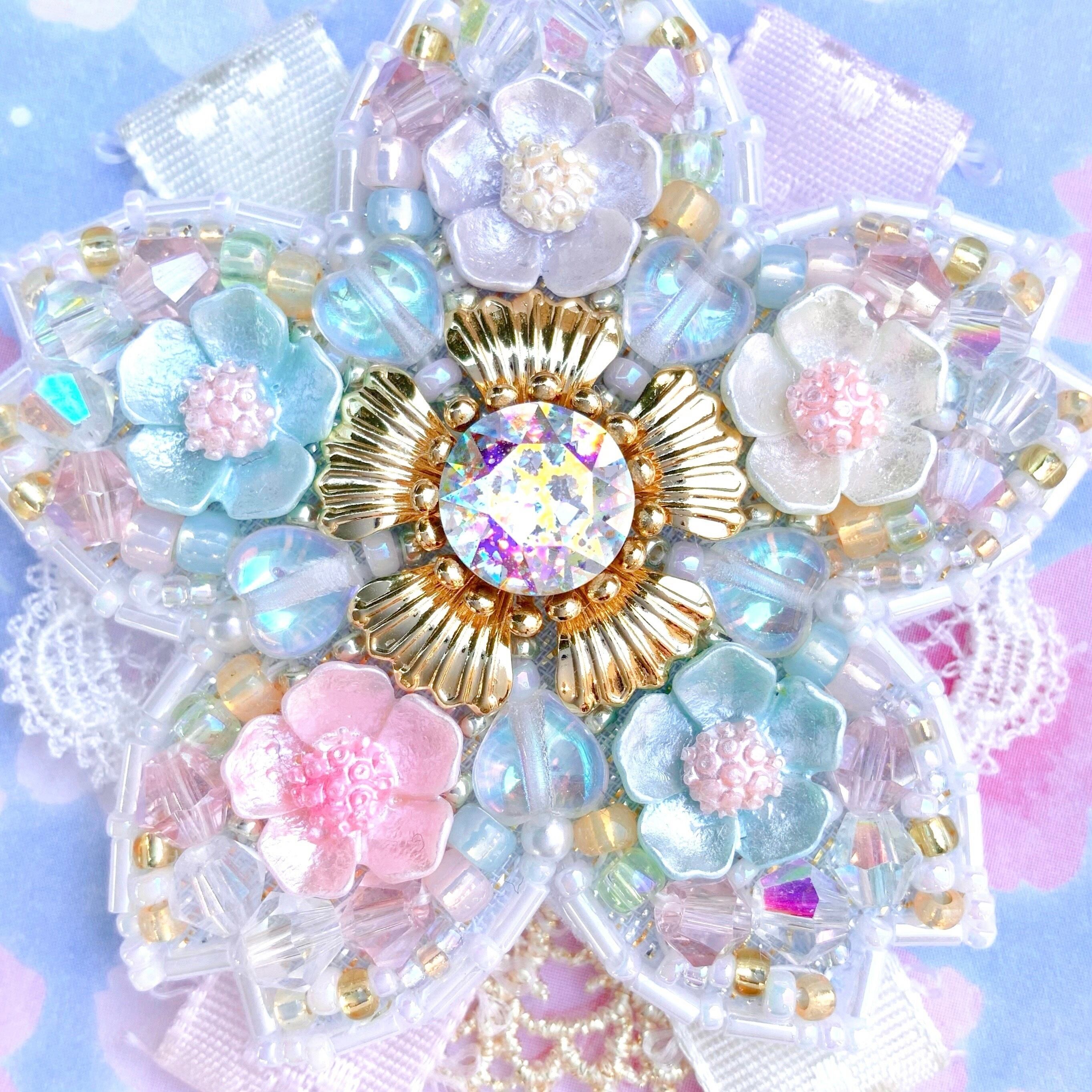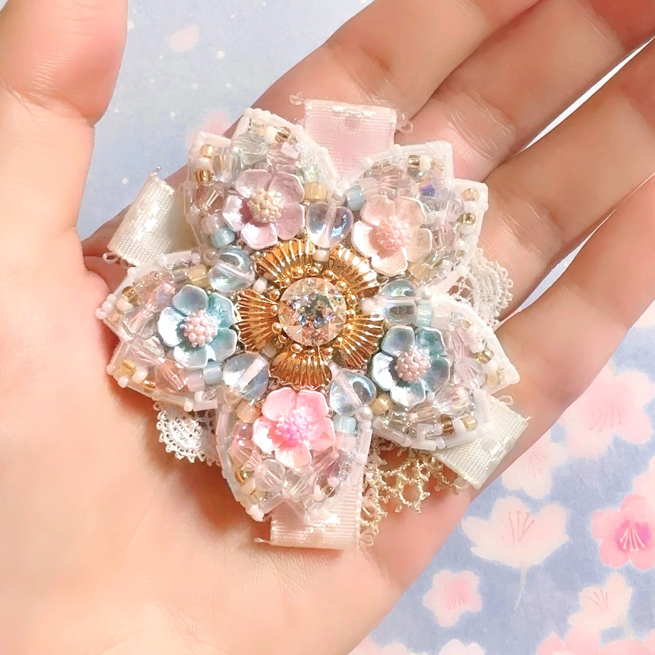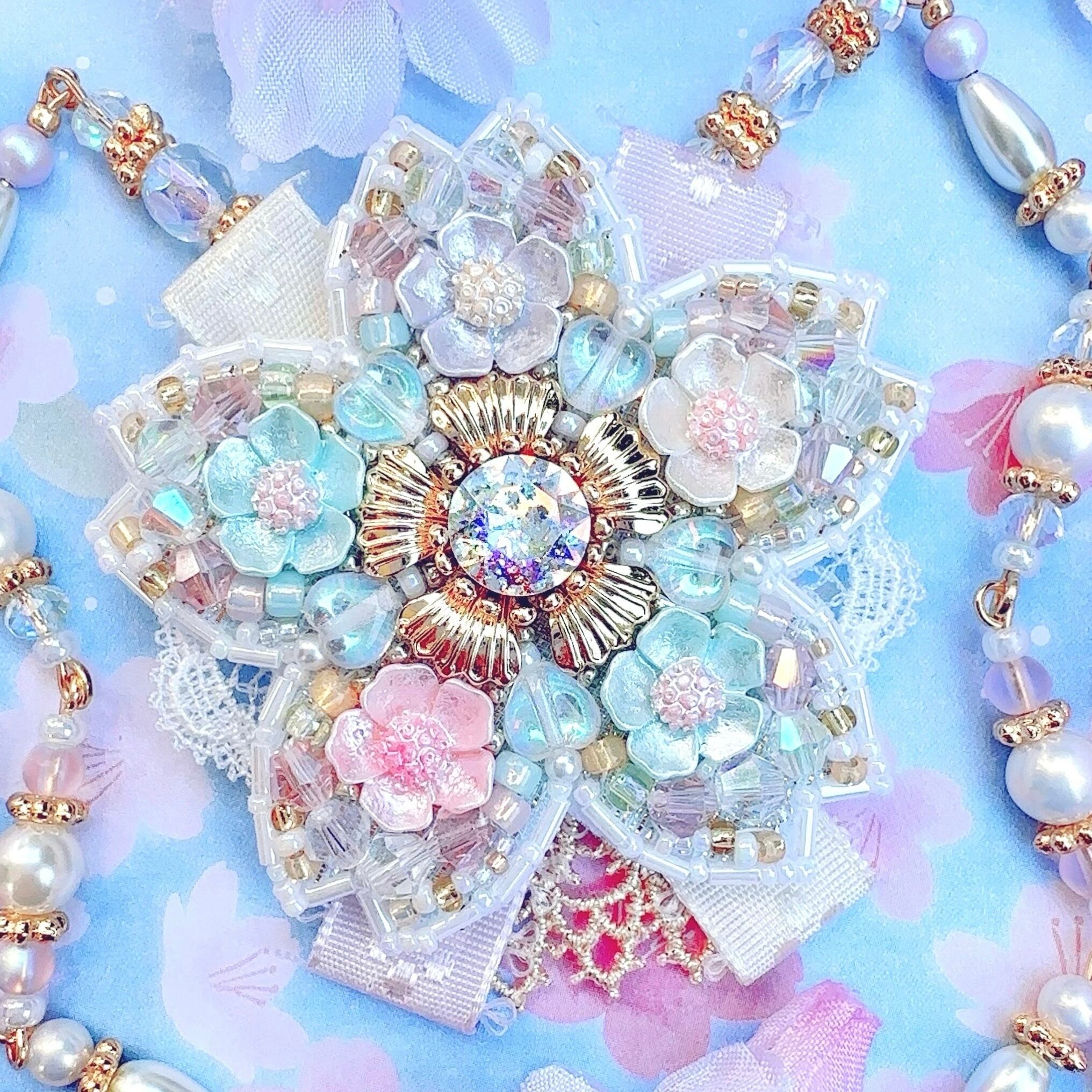 ビーズ刺繍のブローチ・ネックレス・バッグチャームの3wayです。