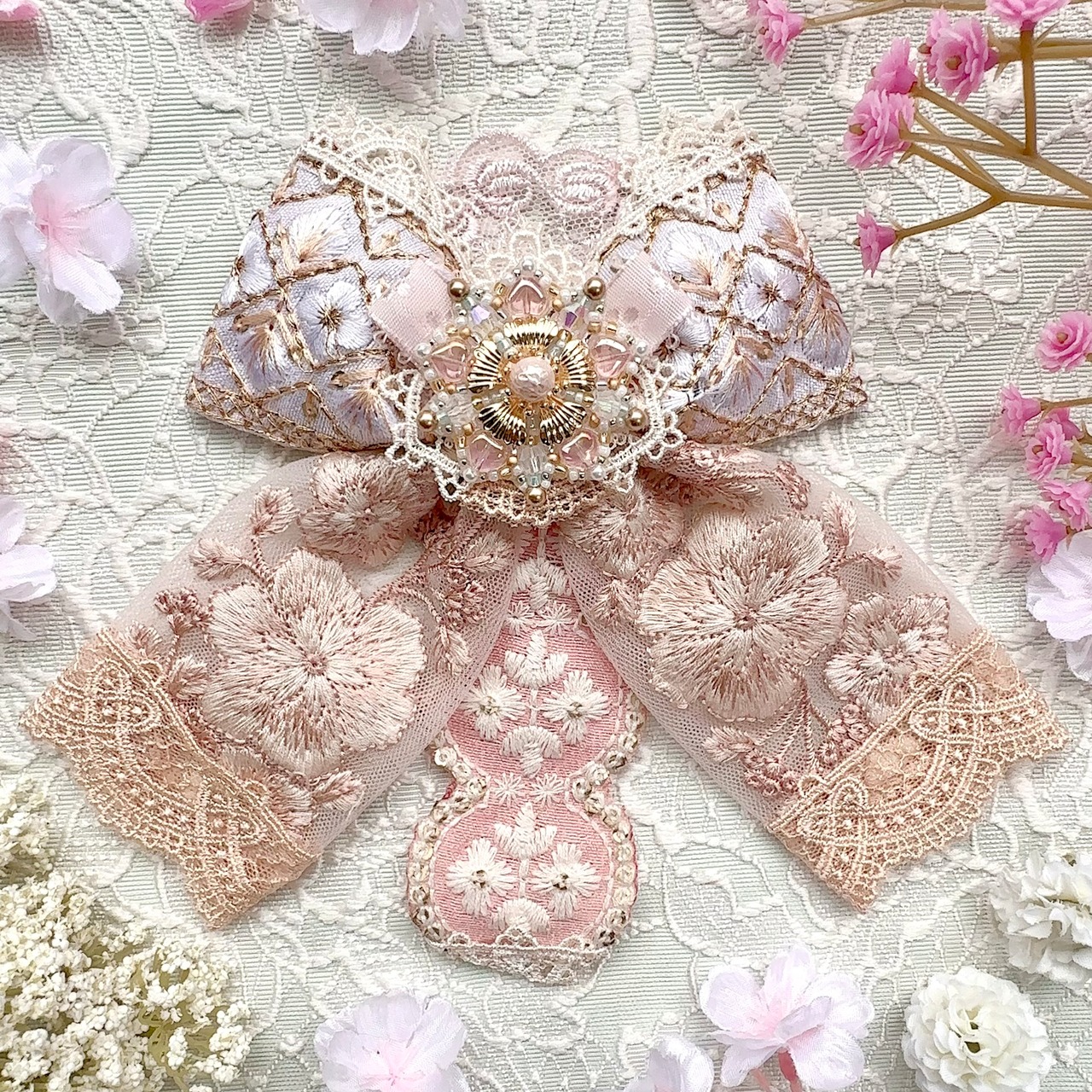 ビーズ刺繍と刺繍リボンの