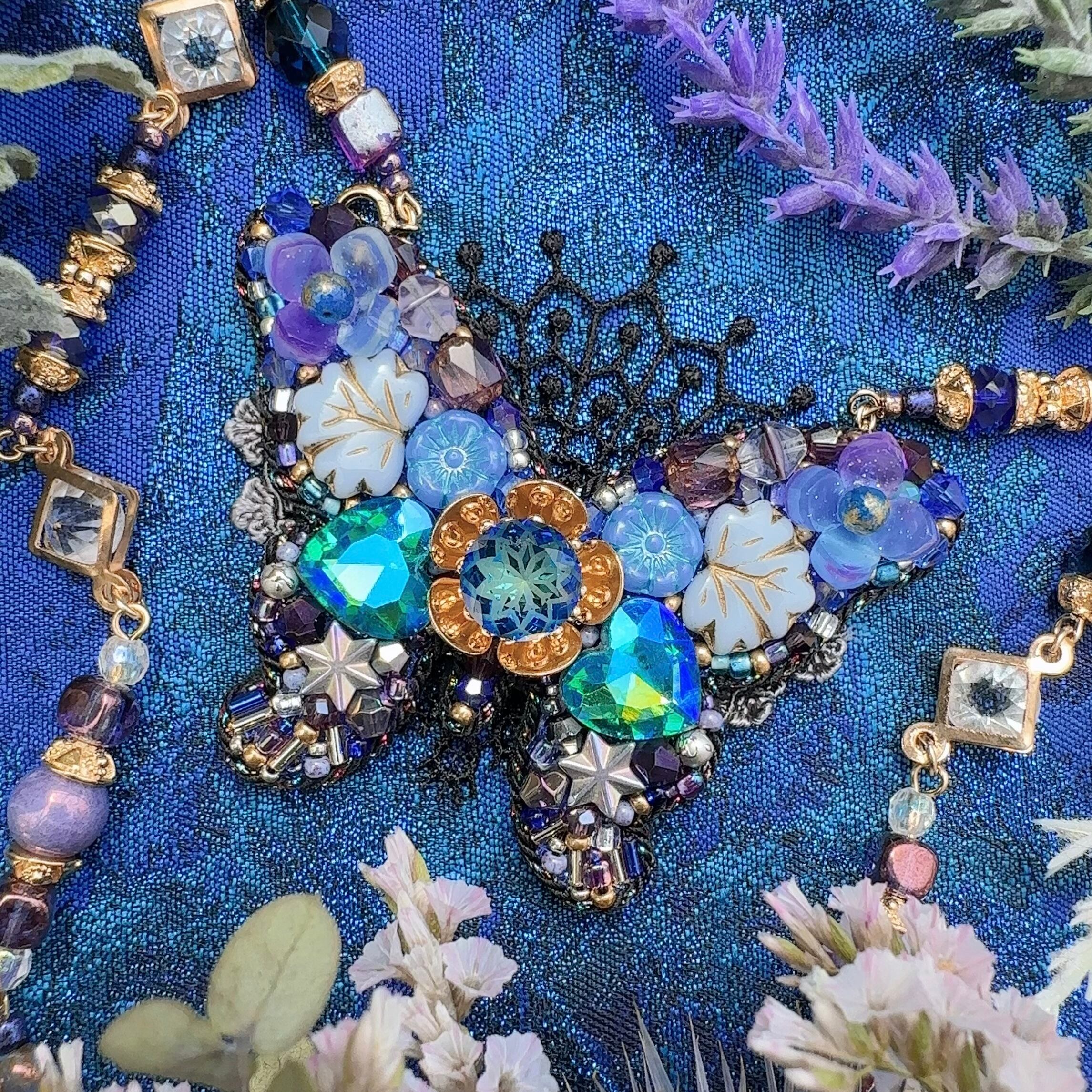 ビーズ刺繍のブローチ・ネックレス・バッグチャームの3wayです。