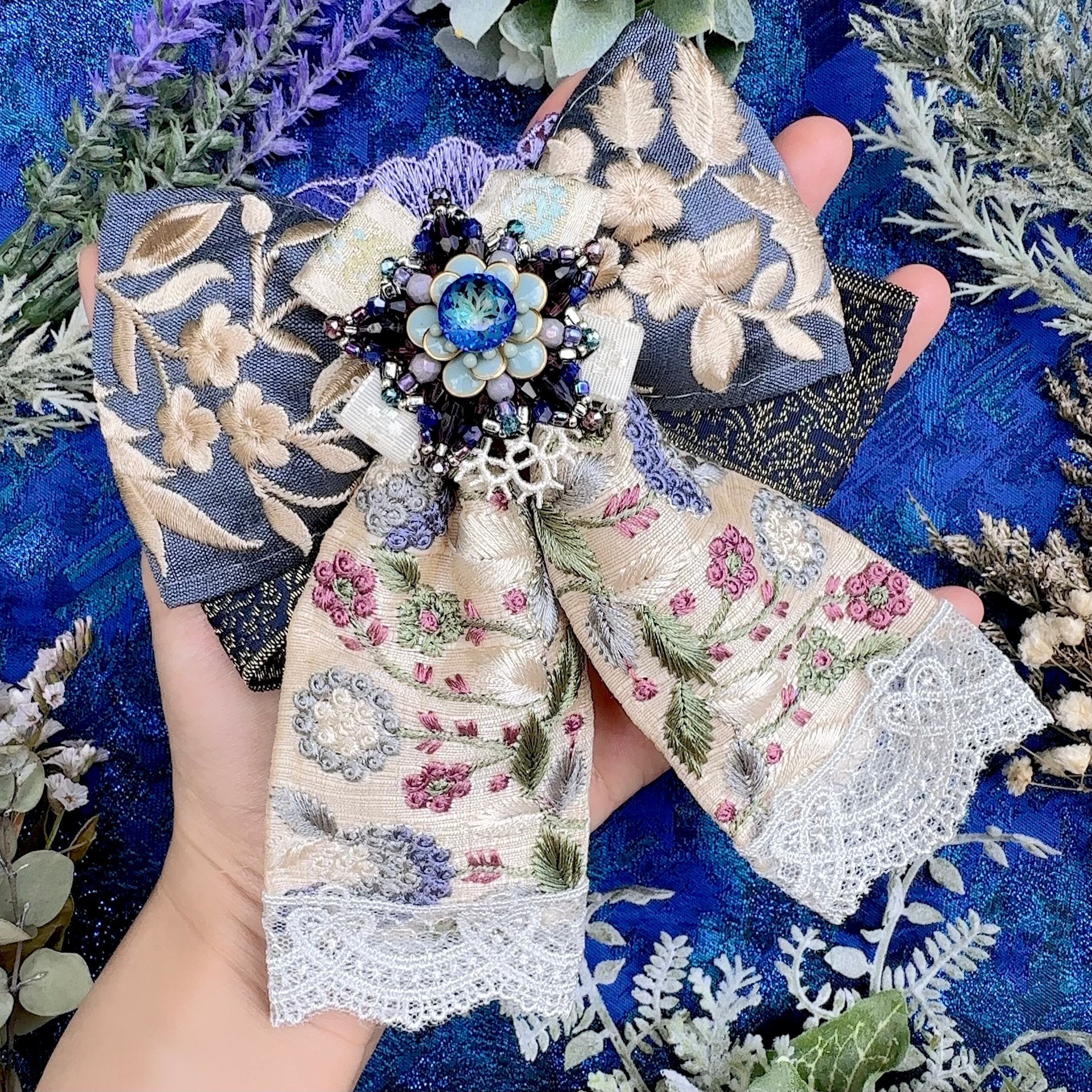 ※バレッタの金具が見えてしまわないように、正面から見て大幅に影響がないようにレースを使用する場合があります。