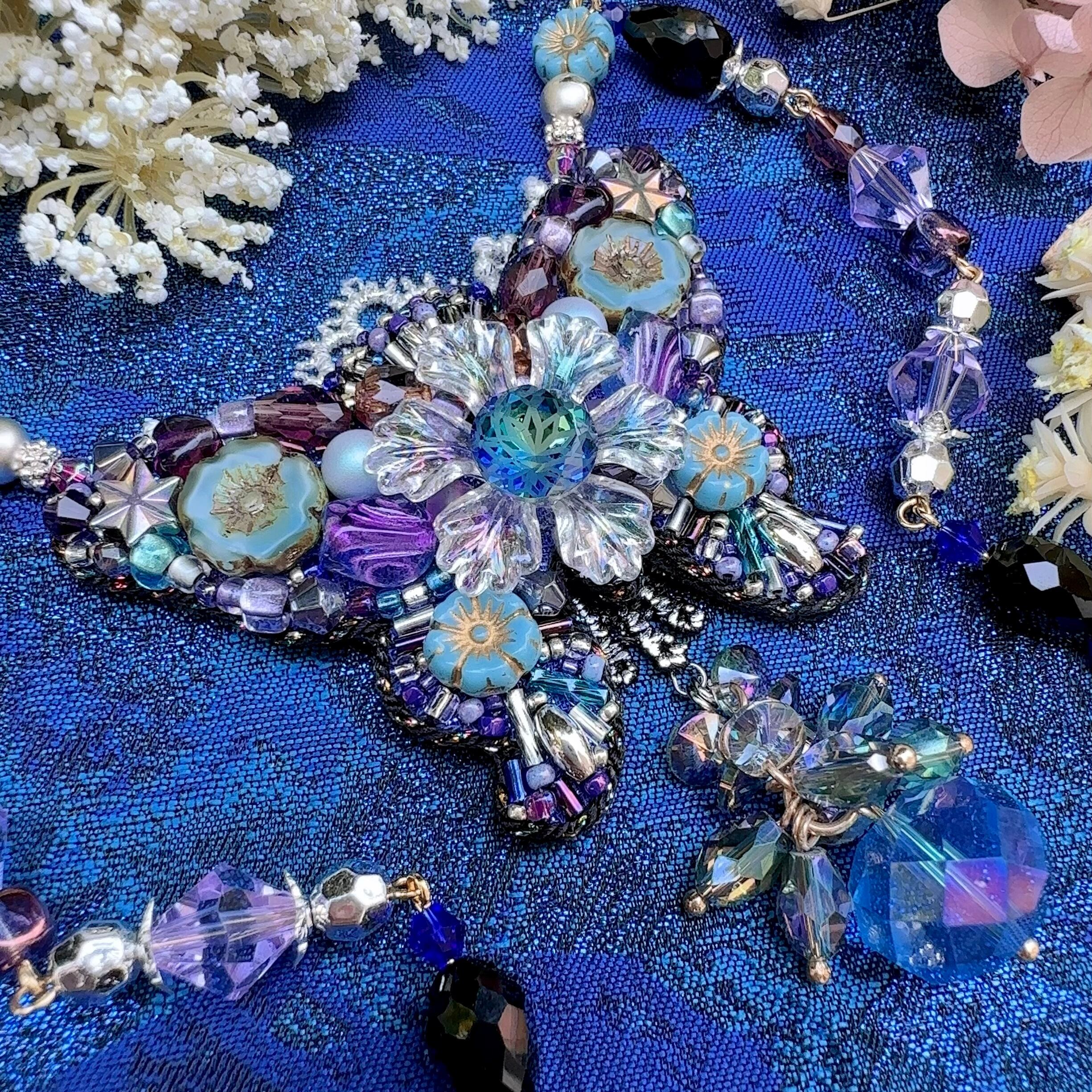 ビーズ刺繍のブローチ・ネックレス・バッグチャームの3wayです。