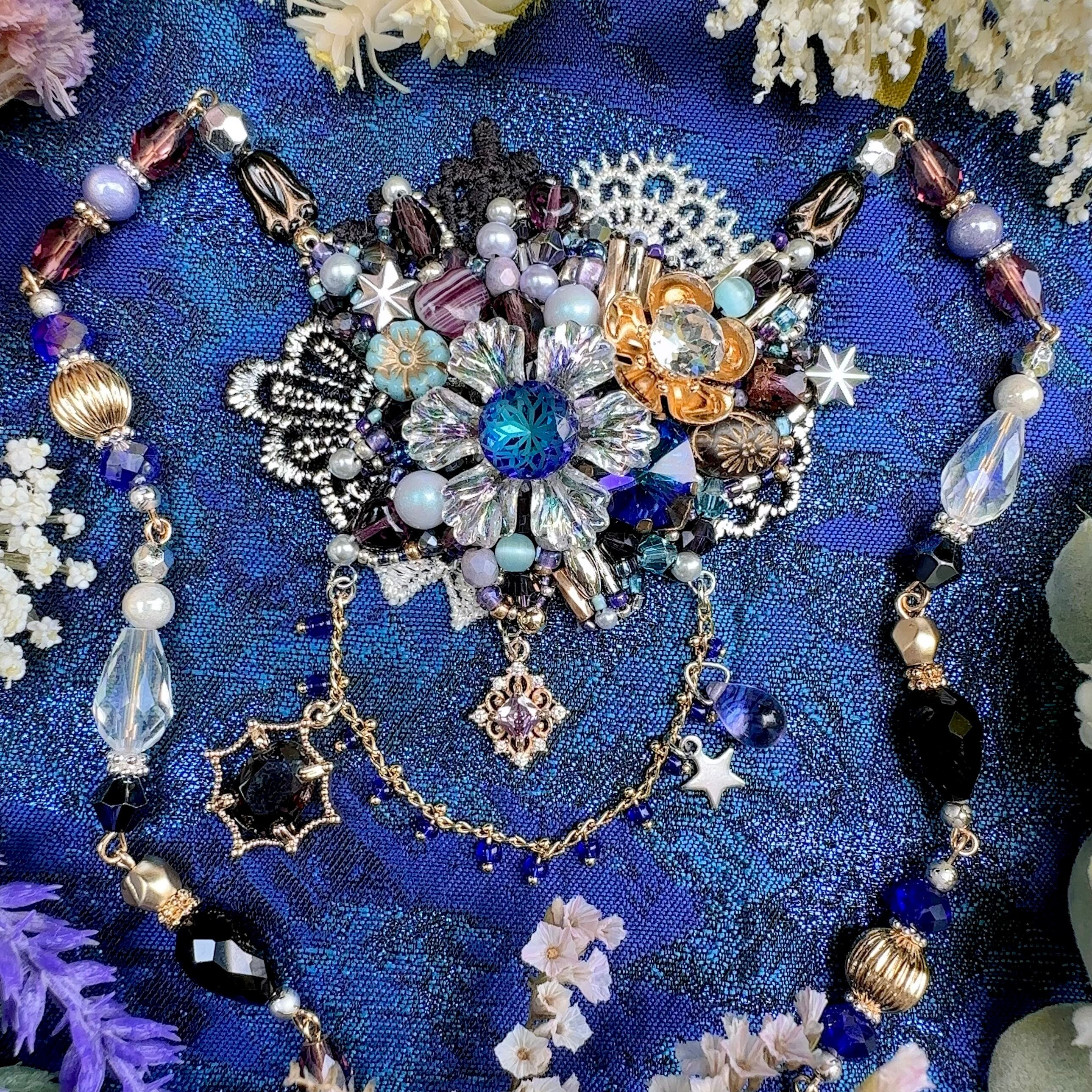 ビーズ刺繍のブローチ・ネックレス・バッグチャームの3wayです。