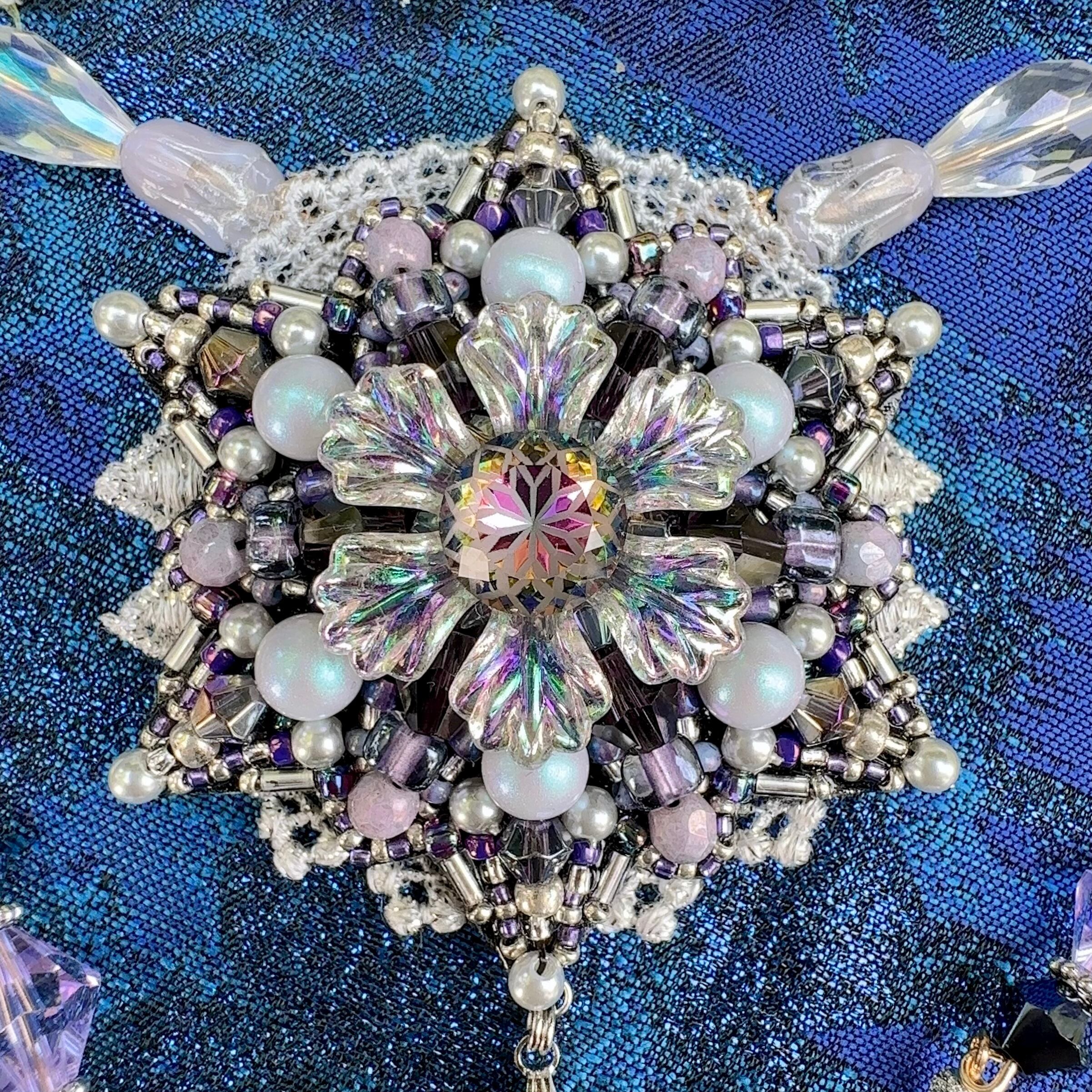 ビーズ刺繍のブローチ・ネックレス・バッグチャームの3wayです。