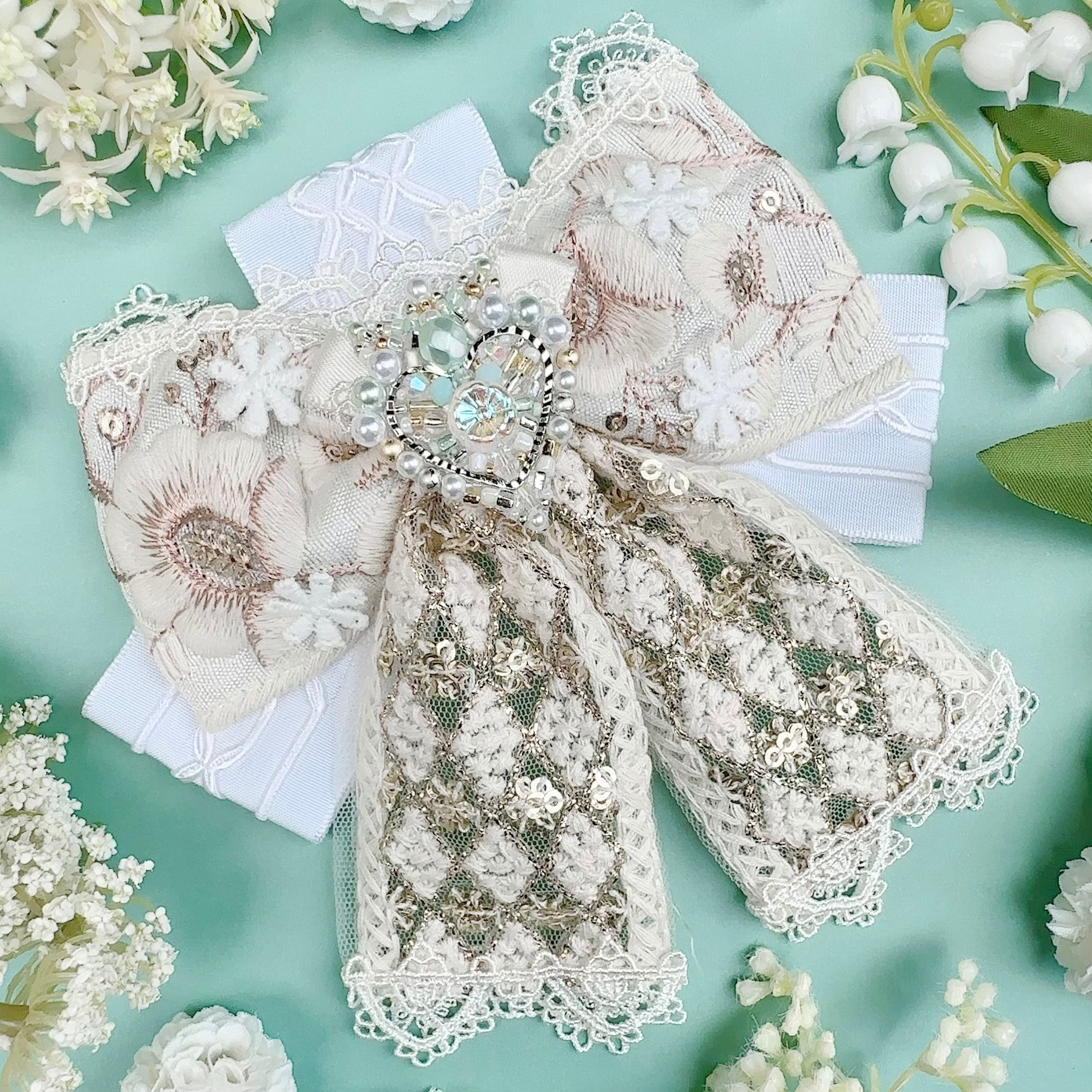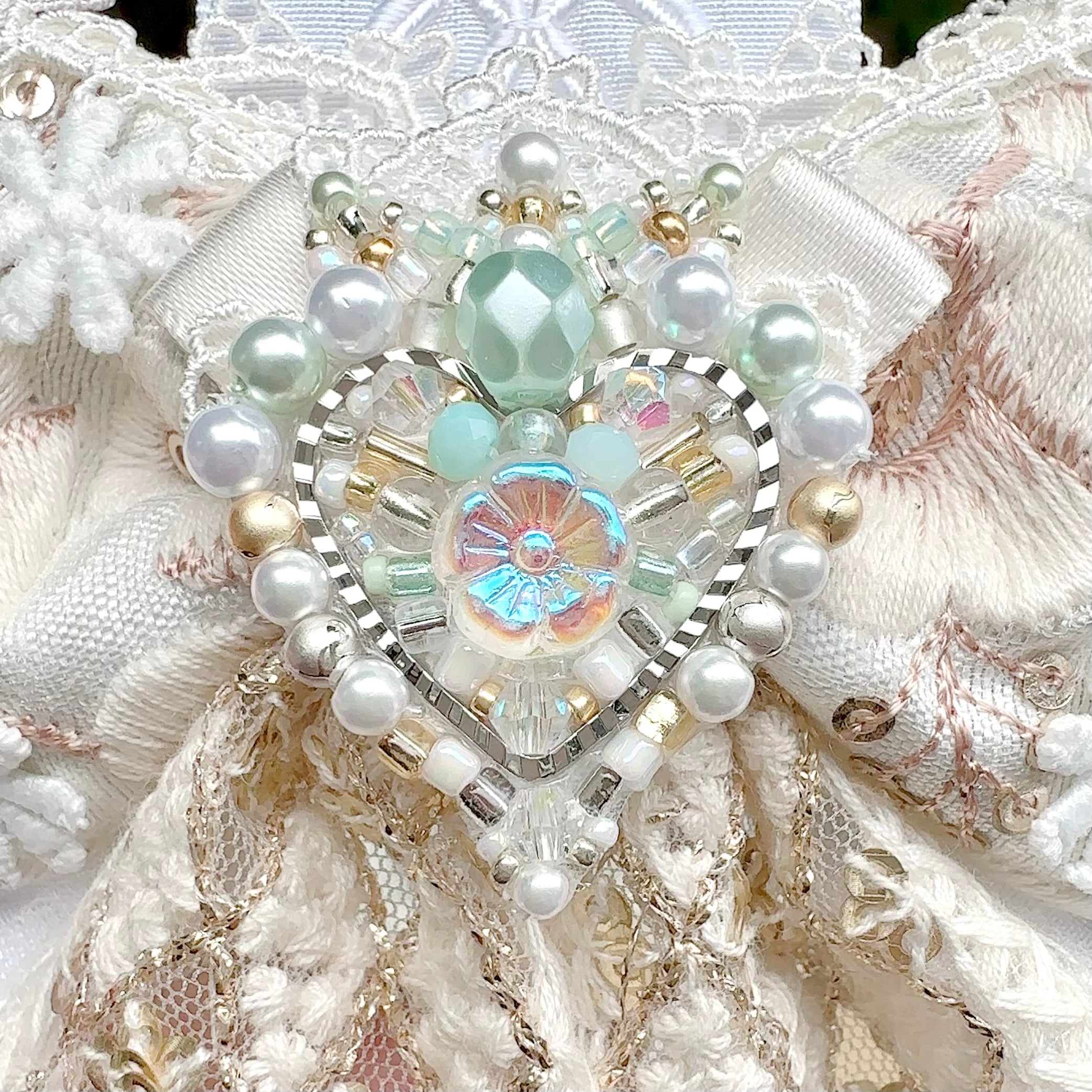 ビーズ刺繍と刺繍リボンの