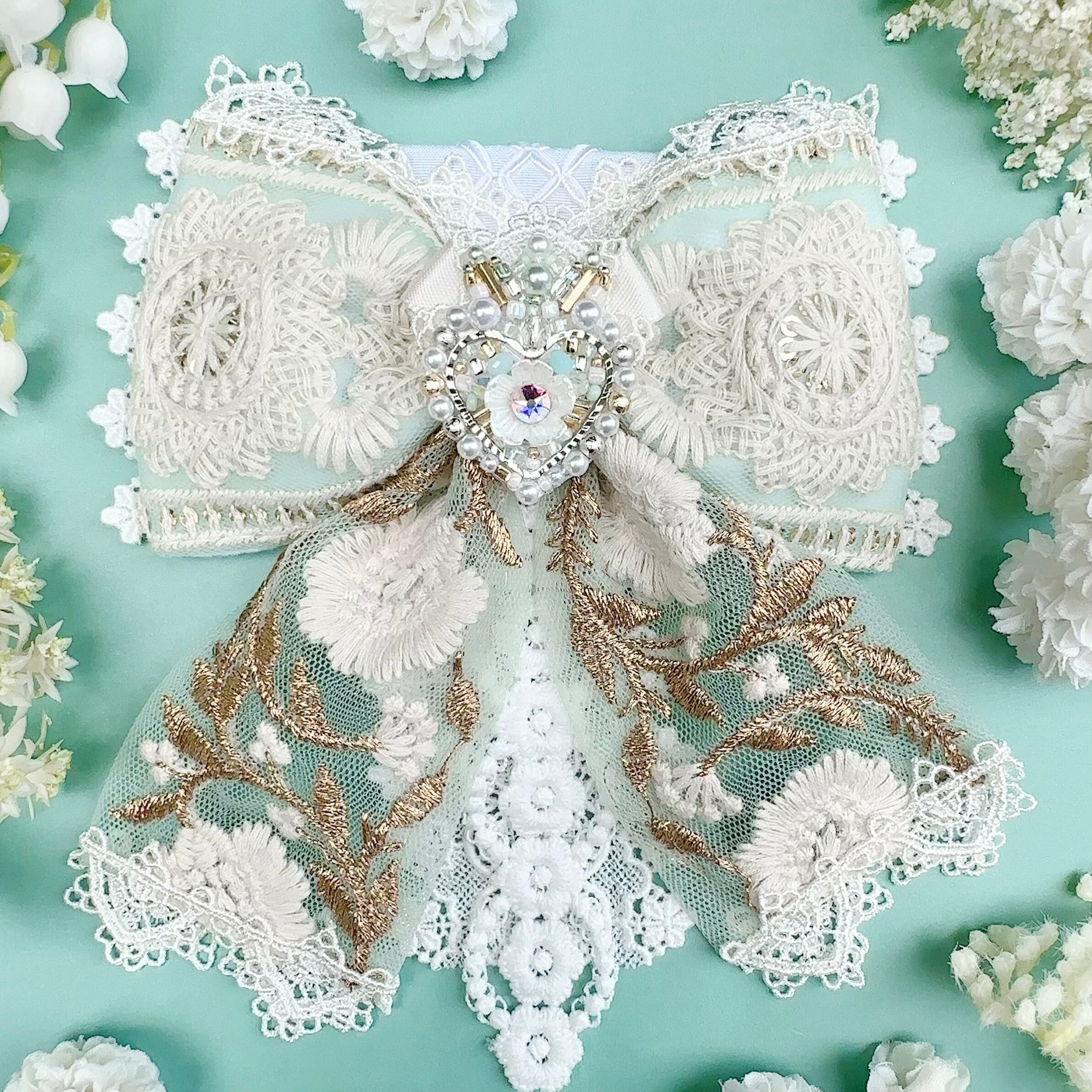 ※バレッタの金具が見えてしまわないように、正面から見て大幅に影響がないようにレースを使用する場合があります。
