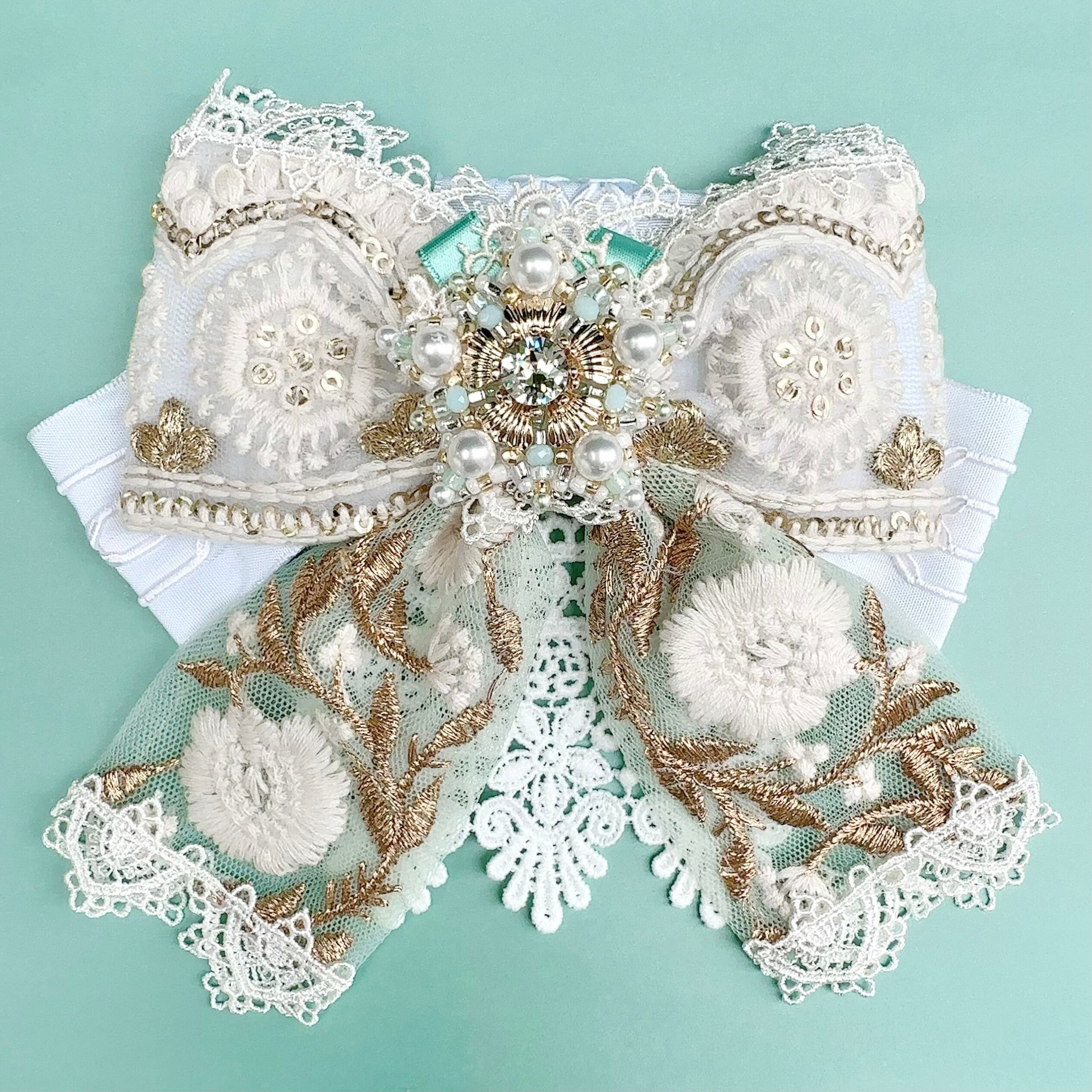 ※バレッタの金具が見えてしまわないように、正面から見て大幅に影響がないようにレースを使用する場合があります。
